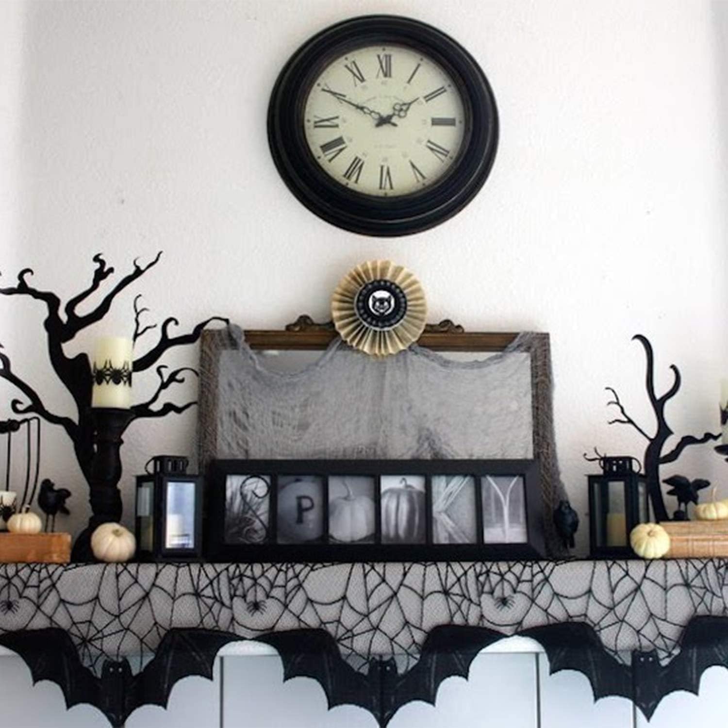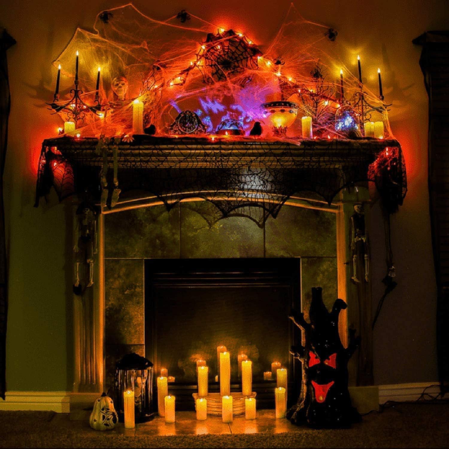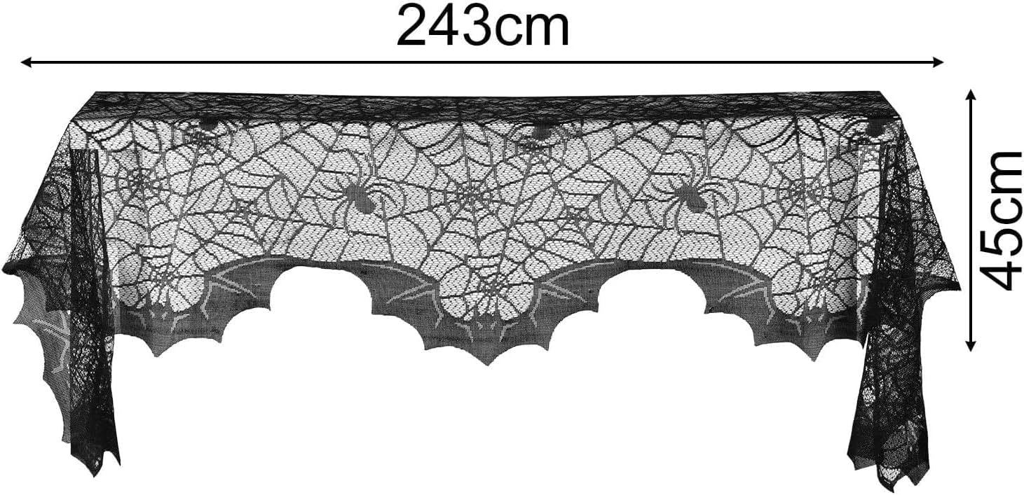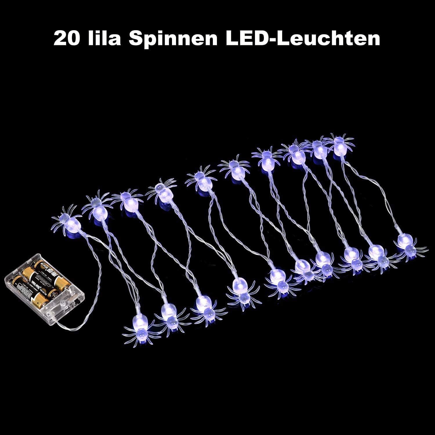 Pacchetto prezioso: ragnatela di pizzo nero + 20 luci LED ragno viola. Perfetta decorazione di Halloween, per caminetto, tenda per porta. Ragnatela di pizzo nero 45 x 243 cm, materiale 100% poliestere. 20 luci LED spider viola con 2 batterie AA (non incluse). AVVERTIMENTO! Non adatto a bambini di età inferiore a 3 anni. Tenere lontano dal fuoco!