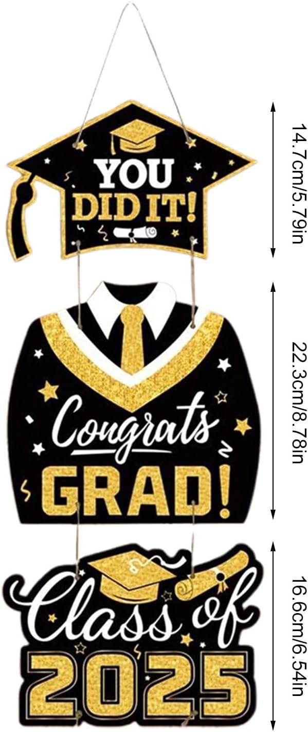 Decorazione ricordo di laurea: illumina la tua festa di laurea con questo miglior ricordo, combinando sentimentalismo ed eleganza per creare un accento indimenticabile per qualsiasi incontro celebrativo Durevole: la superficie liscia e il telaio solido garantiscono un uso duraturo, rendendolo la scelta ideale per celebrare i risultati conservando in modo sicuro preziosi ricordi di laurea nel tempo senza usura Design moderno e minimalista: ottieni un ambiente elegante con un'estetica moderna e minimalista abbinata a citazioni motivazionali che forniscono sia ispirazione che un sofisticato tocco decorativo per le feste di laurea Comodo assemblaggio: il pre-assemblato Le corde garantiscono un'installazione facile ed efficiente per porte, pareti o espositori, eliminando la necessità di strumenti e semplificando le attività di decorazione alle feste di laurea.