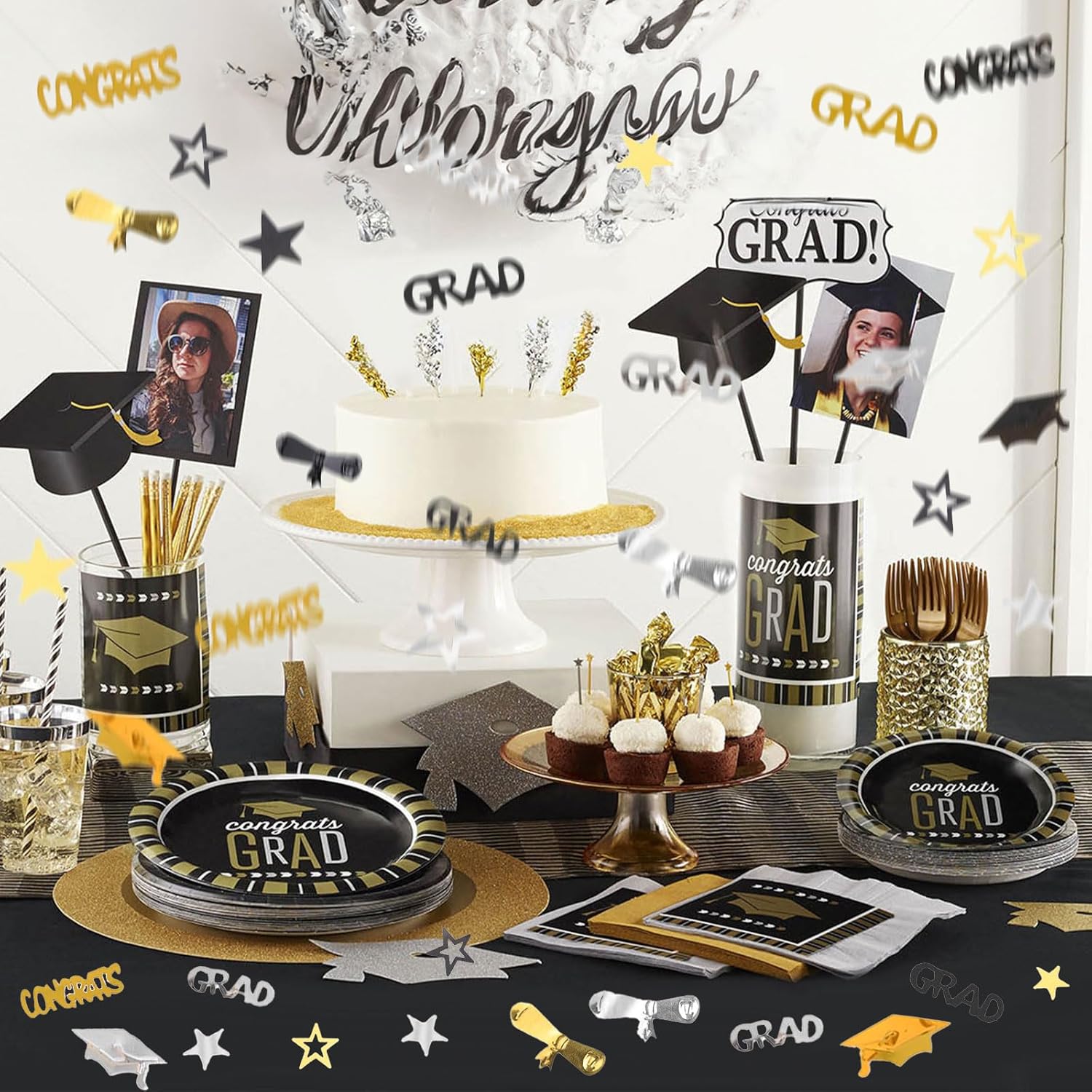 [DESIGN UNICO] - La nostra decorazione di laurea presenta un incantevole mix di coriandoli neri, oro e argento, appositamente progettati per le cerimonie di laurea e addio al celibato per creare un ambiente festivo. [MOTIVI DIVERSI] - I coriandoli pesano circa 30 grammi, con circa 500 pezzi di coriandoli offriamo un mix di motivi di laurea come cappelli di laurea e stelle che miglioreranno qualsiasi addio al celibato e cerimonia di laurea. [UTILIZZO VERSATILE] - Ideali per qualsiasi tipo di festa di laurea, sia essa una laurea, addio al celibato o altra occasione celebrativa, i nostri coriandoli possono essere utilizzati nell'aria, sui tavoli o negli inviti per arricchire l'atmosfera. [MATERIALI DI ALTA QUALITÀ] - La decorazione della laurea è realizzata in carta robusta, ecologica e durevole per garantire una celebrazione indimenticabile. [FACILE DA DECORARE] - Con un'ampia gamma di colori in nero, oro e argento, la decorazione di laurea può essere facilmente integrata in qualsiasi decorazione di festa, per una laurea con stile.
