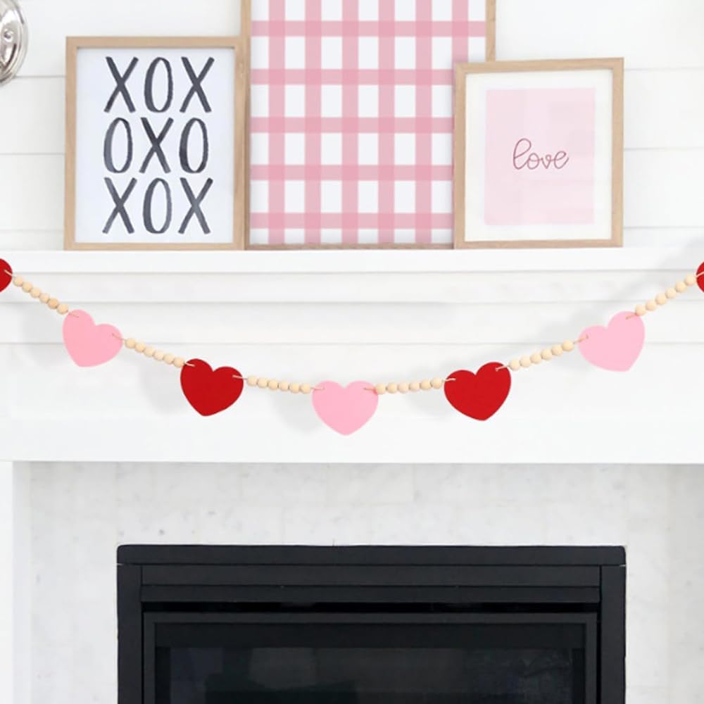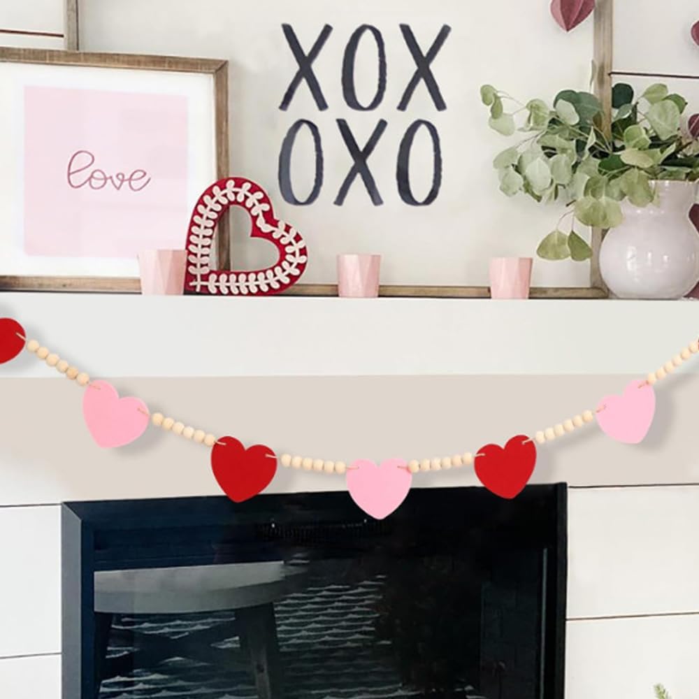 Ambiente romantico: crea un'atmosfera romantica con l'interazione dei colori rosso e rosa, rendendo il tuo spazio perfetto per le celebrazioni di San Valentino. 【Decorazione versatile】 Adatto per decorazioni domestiche, ornamenti per caminetti, decorazioni murali, feste, matrimoni e tutti gli eventi a tema di San Valentino. 【Artigianato squisito】 Realizzato con 48 perline di legno e 7 cuori di feltro, mostra pregevole fattura e attenzione ai dettagli. 【Facile da appendere】 La ghirlanda è legata insieme con una corda robusta, che ti rende comodo da appendere senza preoccuparti che si rompa. QUALITÀ PREMIUM E DUREVOLE: Realizzato con materiali di alta qualità, è progettato per resistere all'usura e garantire un uso prolungato.
