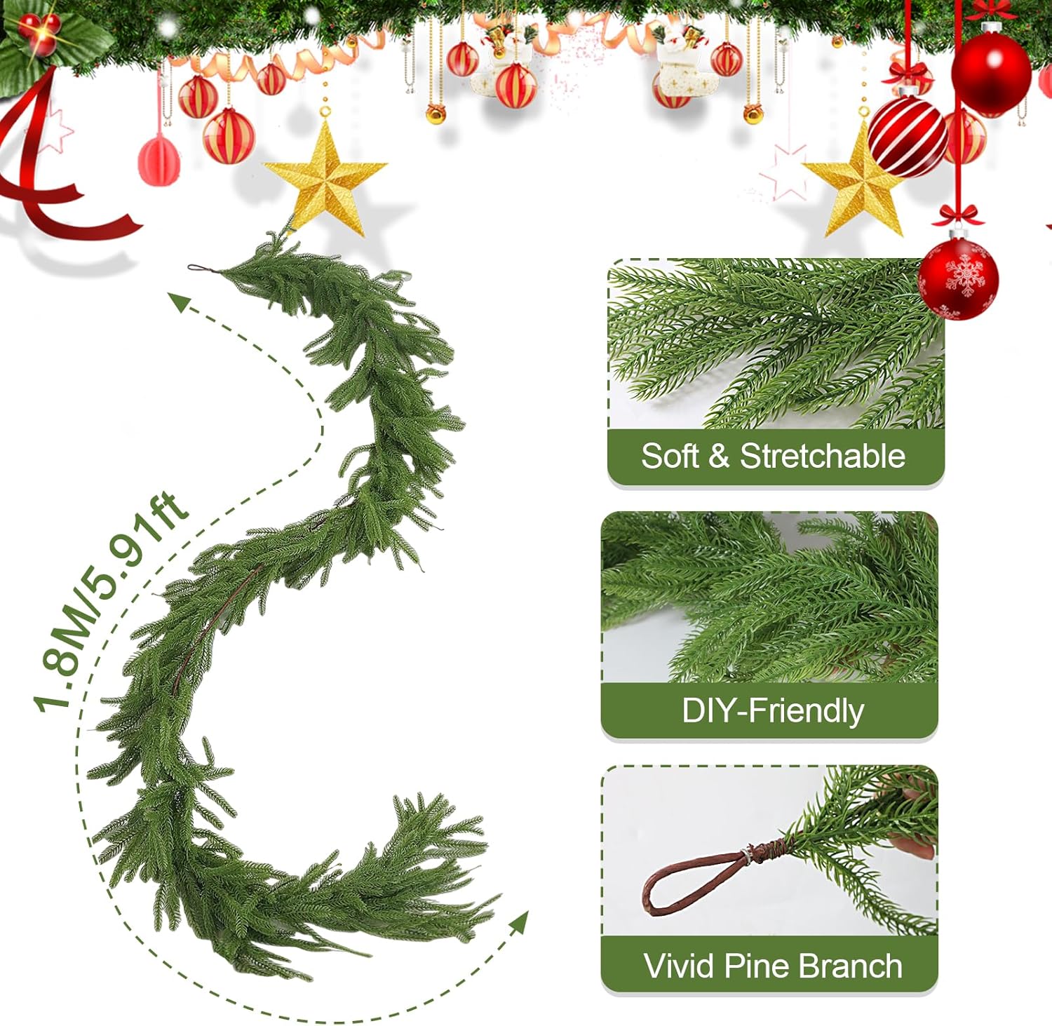 【Ghirlanda di pino del Norfolk realizzata in abete apparentemente vero】 La ghirlanda di pino del Norfolk ha una sensazione reale e un colore naturale, abilmente realizzata con materiale PE adatto. Goditi la bellezza del colore verde dall'aspetto naturale che imita una vera ghirlanda di pino. 【Decorazioni Natalizie】La confezione di steli di pino della Norfolk include 1 pezzo di ghirlanda natalizia di pino della Norfolk. Il colore verde naturale si abbina alle tradizionali decorazioni natalizie e crea un'aura calda e invitante nella tua casa. Questa è una decorazione natalizia essenziale che trasformerà davvero la tua casa in un pittoresco luogo natalizio. 【Dimensione Ideale】 La dimensione della ghirlanda di pino artificiale è di circa 270 cm/200 cm/180 cm, che è abbastanza lunga. La robusta struttura in filo metallico ti consente di piegarla nella forma desiderata per decorare diverse aree e ottenere l'effetto perfetto. e attaccarvi altri piccoli ornamenti. 【Impermeabile e durevole】 La ghirlanda natalizia offre il notevole vantaggio di essere impermeabile. Che si tratti di un accogliente soggiorno o di un patio esterno, questi rami resistenti rimangono impermeabili alla pioggia o al sole. 【Aspetto realistico dell'ago di pino】 La ghirlanda natalizia artificiale in pino della Norfolk è progettata in stile pino della Norfolk e sembra realistica per aggiungere un'atmosfera festosa alla tua casa. Puoi usarlo per decorare la tua tavola, angoli, caminetti e altri luoghi, diventando un elemento essenziale per il fai da te.