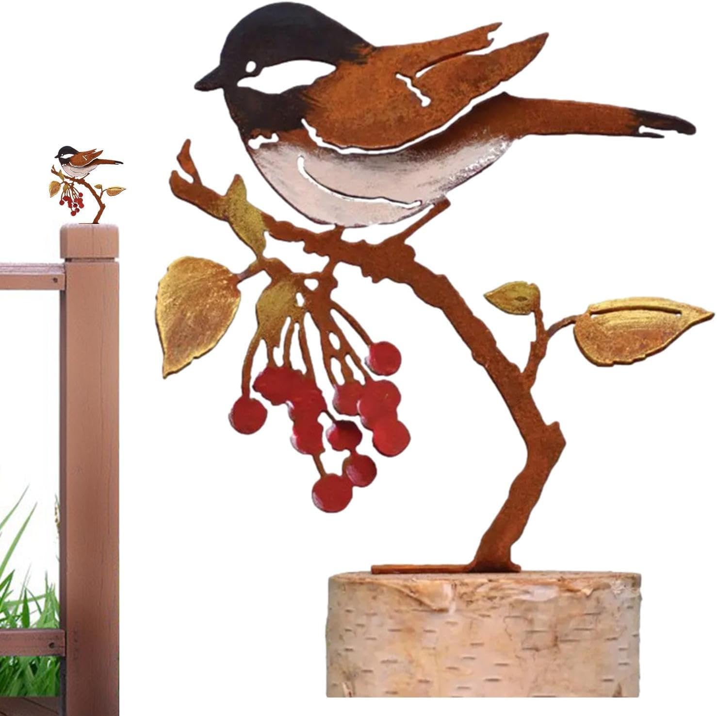 【Rendi il giardino vibrante】 I paletti da giardino decorativi in metallo in stile retrò possono aggiungere bellezza e fascino al cortile e rivitalizzare il tuo patio da giardino. 【Materiale di buona qualità】 Realizzata in lamiera zincata, la decorazione del pulcino in metallo per esterni è robusta e durevole, quindi può essere utilizzata a lungo. 【Installazione rapida】 Il paletto da giardino per uccelli in metallo è facile da installare e rimuovere. È dotato di fori per viti preforati, quindi puoi avvitarlo direttamente nel legno. Può anche essere facilmente rimosso quando non viene utilizzato. Molteplici applicazioni: Rusty Birds Yard Art è ampiamente utilizzata. È adatto per decorare pali di legno per cassette postali, rami, pergolati, recinzioni, vasi di fiori, tralicci, cancelli da giardino, davanzali e altri luoghi. 【Regalo delicato】 Le tette di metallo sono regali delicati per la famiglia o gli amici che amano gli uccelli o amano decorare i cortili, o come un oggetto delicato per decorare il tuo giardino o cortile.