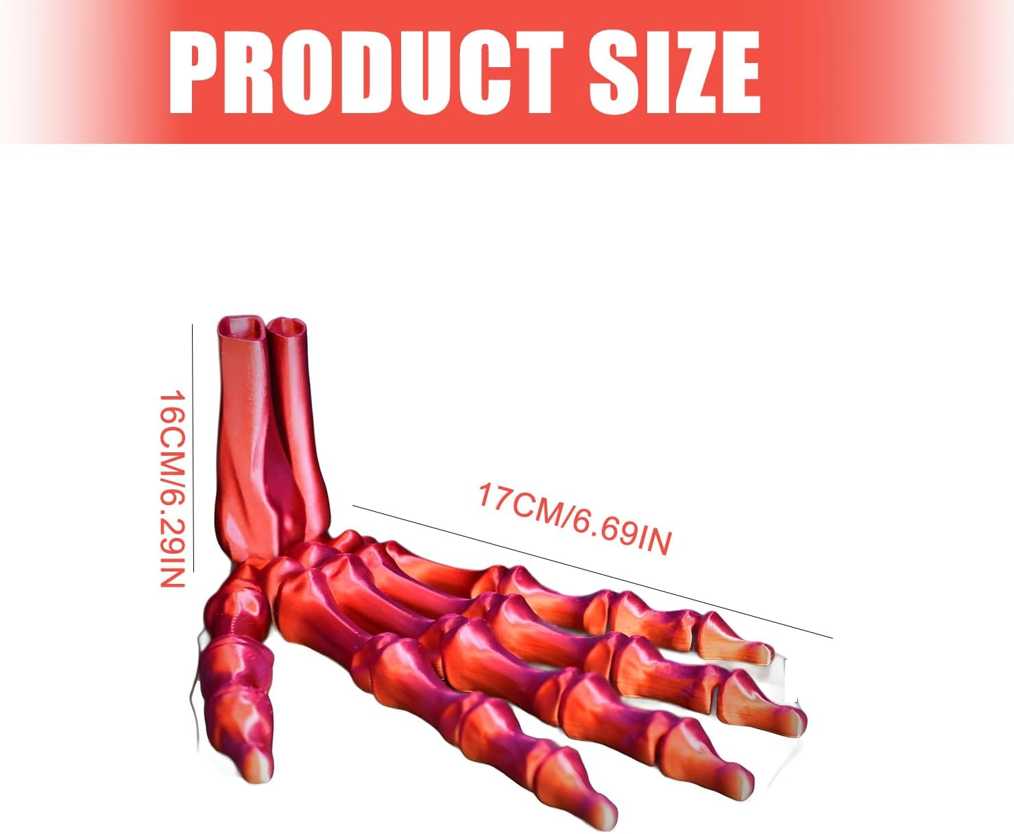 La sua struttura ossea anatomicamente accurata e le articolazioni flessibili dito/polso consentono la personalizzazione, combinando l'estetica gotica con funzionalità giocosa per esperienze espositive coinvolgenti Trasforma salotti, tavoli da ufficio o eventi di festa in spazi coinvolgenti: posiziona la mano mobile dello scheletro su mensole, librerie o tavoli da pranzo per un'atmosfera immediatamente spettrale Realizzato con tecnologia di stampa di precisione utilizzando materiali di acido polilattico. Questa mano scheletro posizionabile è dotata di articolazioni mobili per pose dinamiche, per gli appassionati di Halloween che cercano decorazioni realistiche e interattive. Al di là dell'uso stagionale, questo ornamento funge anche da inizio di conversazione tutto l'anno per gli appassionati di decorazioni scure che combinano il fascino macabro con l'arte stampata moderna negli studi domestici o nelle collezioni a tema. Ideale per collezionisti di horror e famiglie che cercano le tradizioni di Halloween con decorazioni uniche e pratiche che stimolano la fantasia di adulti e bambini