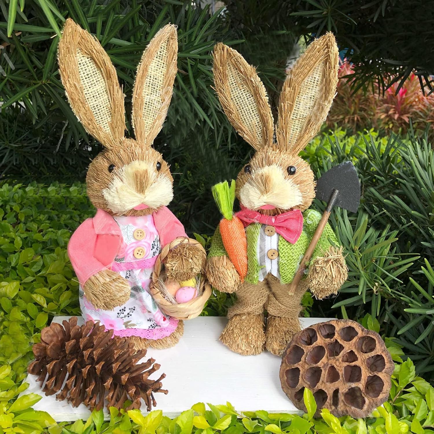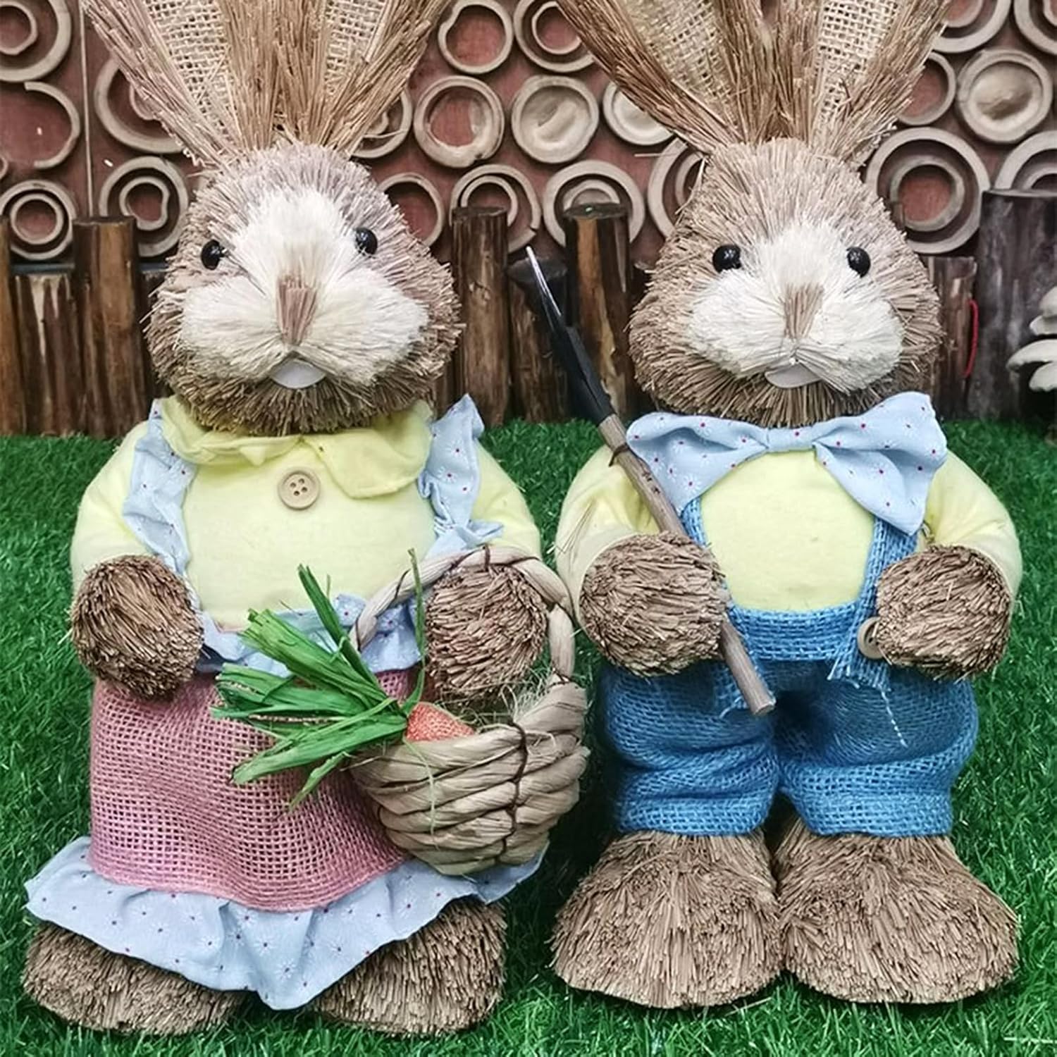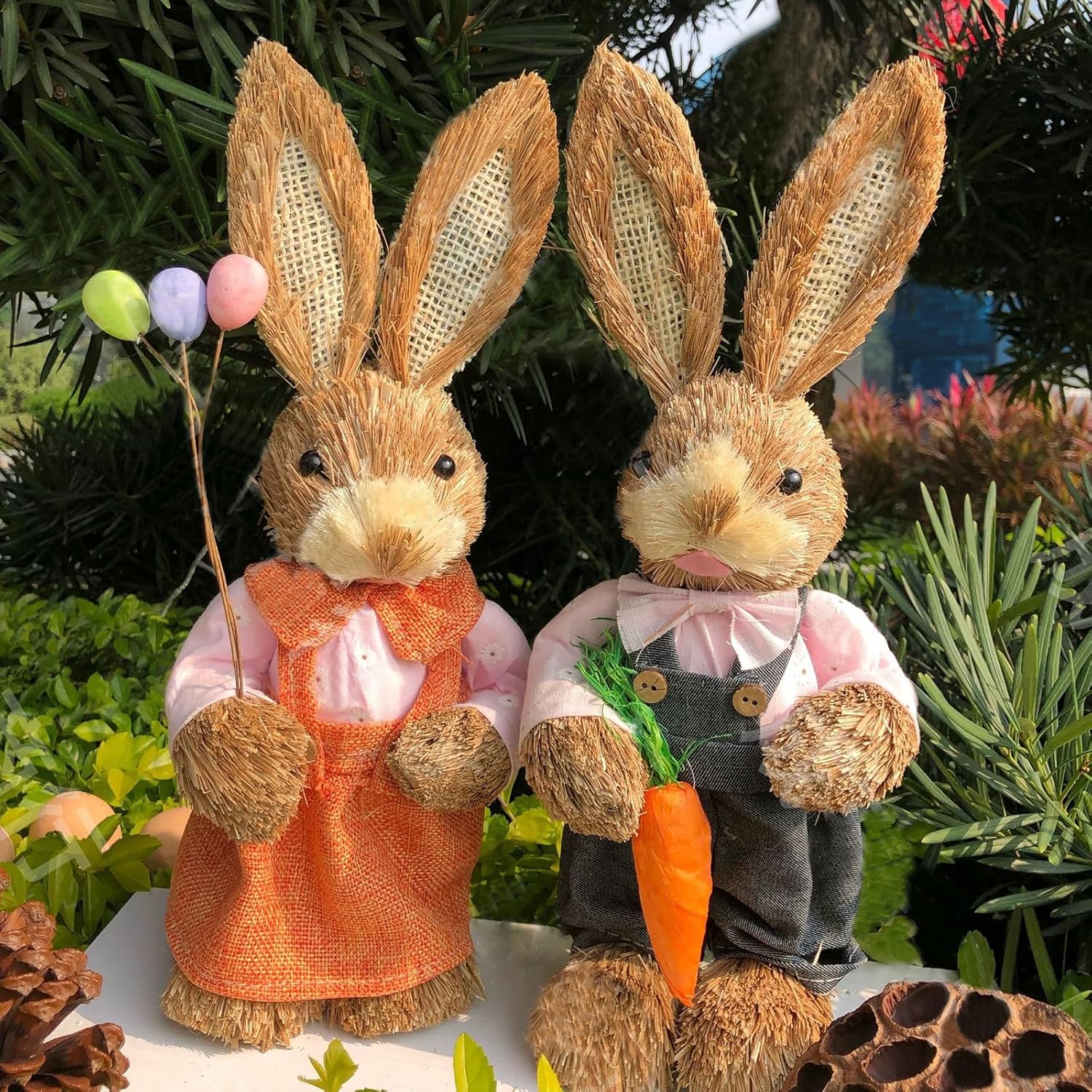 Materiale di qualificazione: realizzato in paglia intrecciata e materiale in tessuto, forma unica con resistenza all'usura, durevole e perfetto. Decorazione per le vacanze di Buona Pasqua: una fantastica decorazione per le vacanze di Pasqua fornisce l'elemento perfetto per la decorazione del giorno di Pasqua. La bellissima statuina con la tecnica dell'intreccio della paglia fatta a mano non è adatta solo per la decorazione della stanza, ma anche come varie decorazioni per il giardino, il cortile e l'albero. Ampie applicazioni per la decorazione: l'allegro design del coniglietto pasquale per la decorazione, un coniglio in piedi in costume da giardiniere è perfetto per dare il benvenuto alla primavera e portare gioia al nuovo anno. Stile, porta pace e un bellissimo elemento del festival di Pasqua a casa tua, perfetto per feste, giorni di Pasqua, giardino con patio e varie decorazioni, crea una sottile magia primaverile nella tua festa di Pasqua, facile da creare, atmosfera interessante. Decorazioni in paglia fatte a mano: gli ornamenti in paglia intrecciata sono ottimi per decorare il tuo cortile, giardino, patio, casa succulenta o festa a tema. Conigli e ravanelli sono un elemento essenziale per Pasqua e la scelta migliore per la decorazione pasquale. Combinali con altri decori o oggetti di scena Crea quello perfetto Cosa ottieni: la figura intrecciata in paglia viene fornita con 1 paio e 15 stili opzionali tra cui scegliere, soddisfacendo le diverse esigenze di decorare la tua casa. Puoi metterli sul tavolo, accanto alla TV, sulla scrivania e sul comodino come decorazioni da giardino all'aperto.