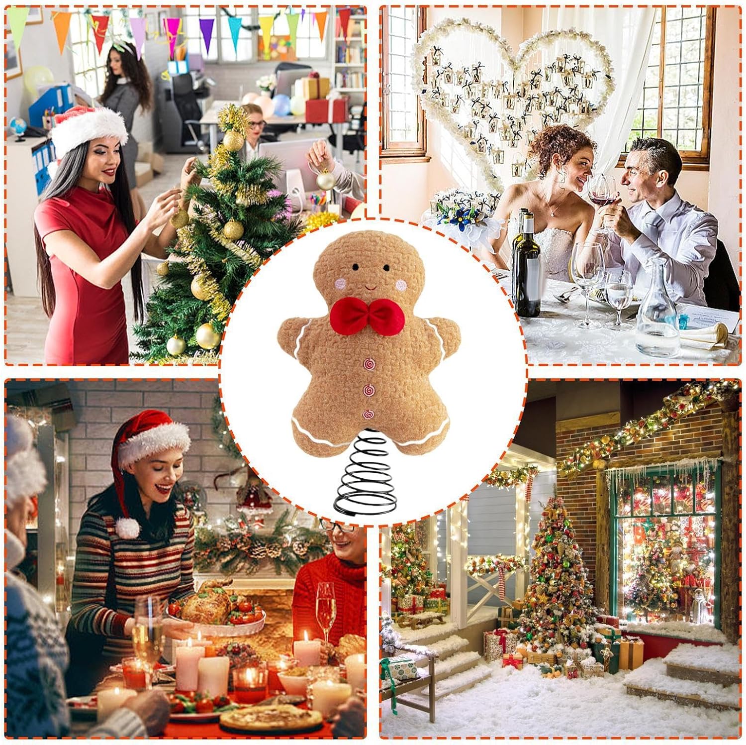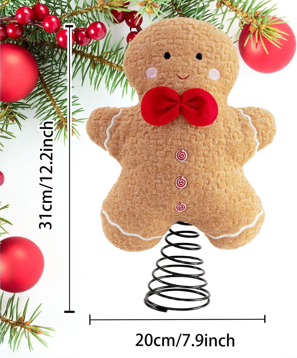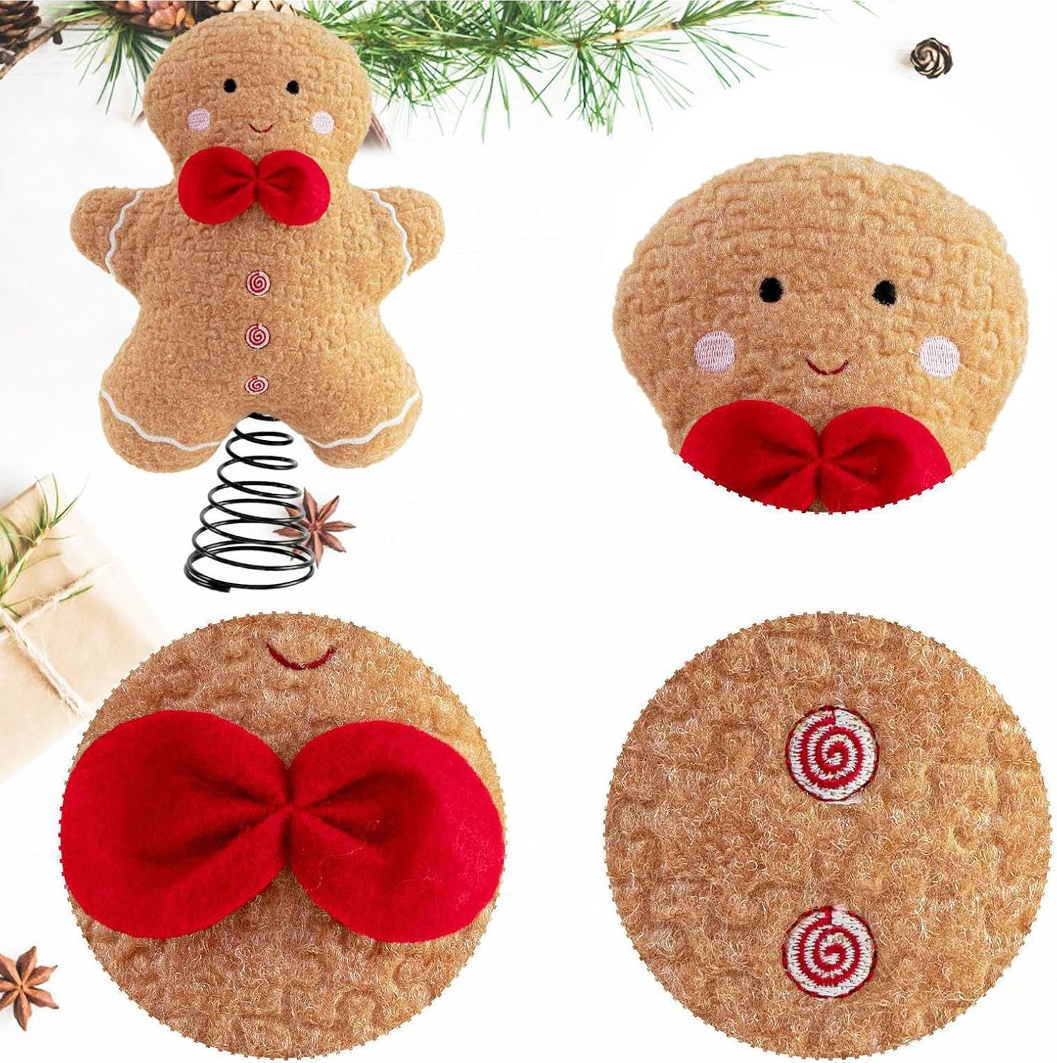 Graziosa decorazione per le vacanze: adornato con un design a forma di peluche, questo topper a forma di albero introduce un elemento spensierato nella vostra configurazione festiva e combina senza problemi dolcezza e tradizione per un attraente display di festa Accento festivo solenne: abbraccia lo spirito gioioso del Natale e aumenta l'arredamento delle tue vacanze con un topper per albero di pan di zenzero progettato per migliorare l'atmosfera festiva della tua casa durante la stagione Materiale eccellente: Costruito per durare, con materiale Regalo meraviglioso: festeggia le vacanze condividendo questo albero di pan di zenzero con la famiglia e gli amici e migliorando le celebrazioni con la sua affascinante presenza come regalo premuroso Uso versatile: si abbina perfettamente a tavoli da pranzo, librerie, caminetti e alberi di Natale, ampiamente utilizzati nelle feste interne festive per aggiungere un tocco invitante