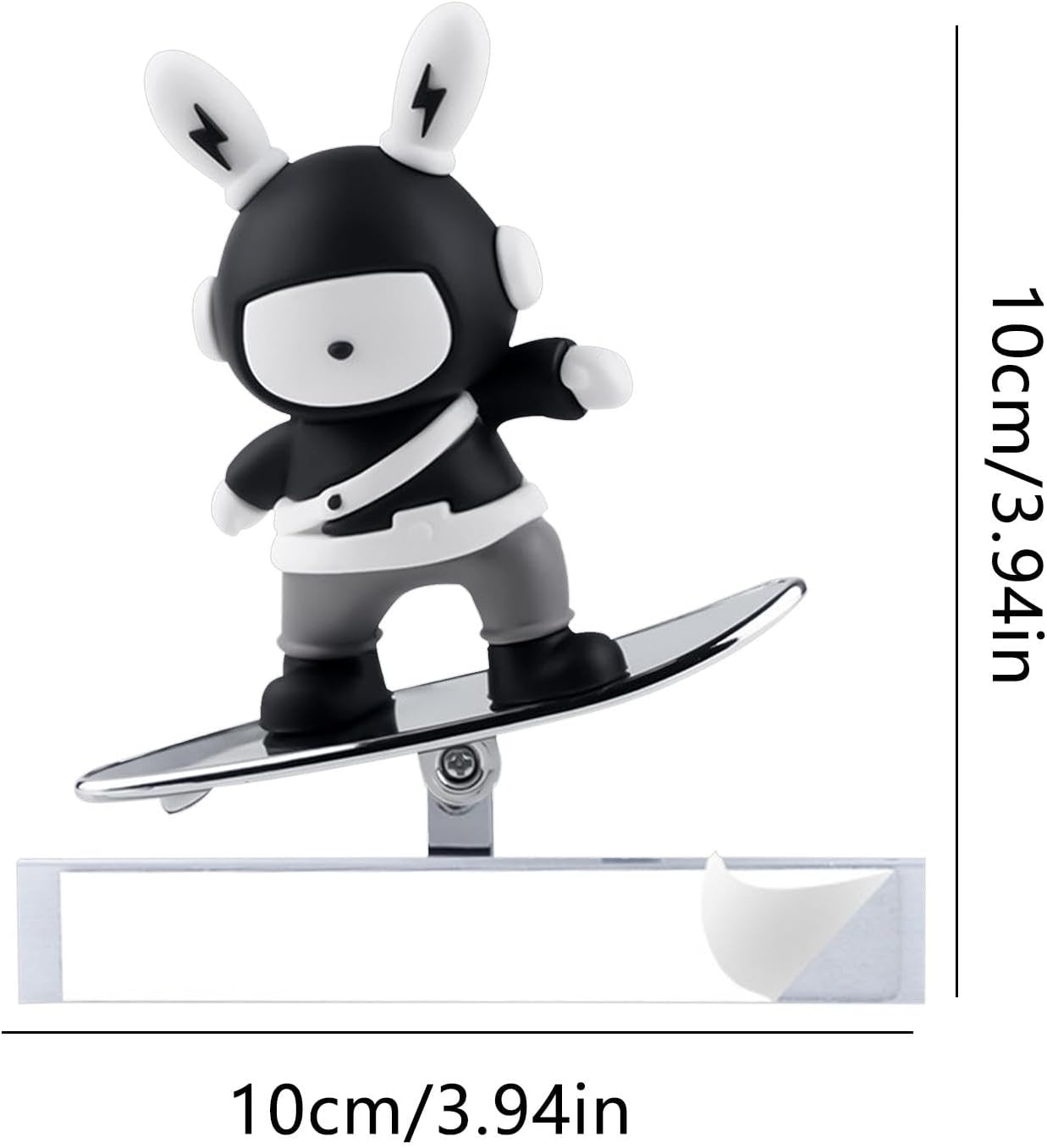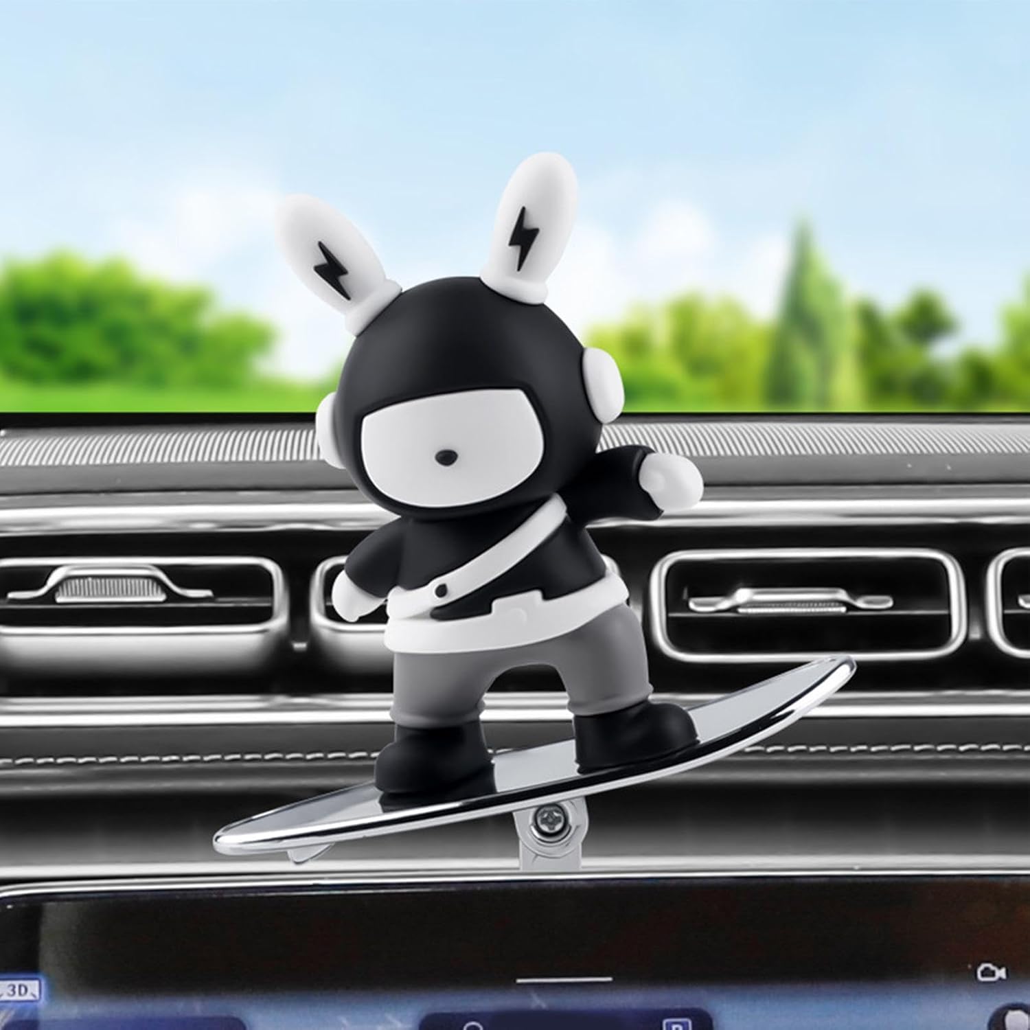 Design aggiornato: trasforma la tua auto con un tocco unico utilizzando questo ornamento a forma di coniglio. Il suo fascino creativo aggiunge una spinta di personalità e freschezza che attira l'attenzione alla tua corsa, iniettando un'ondata di energia a cui è difficile resistere! Guida di distrazione migliorata: fai scivolare l'ornamento per auto da skateboard sul cruscotto con facilità e silenzio. Il movimento scorrevole lenitivo fornisce un legame causale per alleviare l'affaticamento visivo e ridurre lo stress di guida. Giostre gioiose: eleva l'atmosfera della tua auto mentre navighi, trasformando ogni viaggio in una deliziosa scappatella, assicurandoti che il tuo tragitto sia sempre accompagnato da un tocco di divertimento e gioia. Trasforma la tua guida: migliora la tua esperienza di guida con i nostri stravaganti ornamenti per auto da skateboard. Dai alla tua auto un tocco unico di moda abbinando il suo aspetto a un paesaggio meraviglioso, facendoti compagnia nei viaggi da soli. Lunga durata: realizzato in silicone e lega di alluminio preferito, questo ornamento per auto da skateboard è resistente alle alte temperature e non garantisce scolorimento, deformazione o odore per un lungo periodo, offrendo stile e durata.