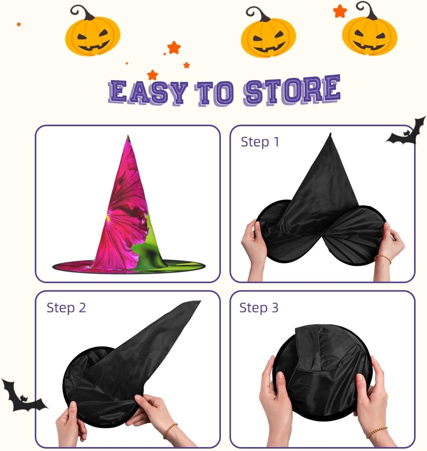 Realizzati in tessuto Oxford superiore, i nostri cappelli con stampa a fiori di ibisco garantiscono durata e longevità. Il design unico consente di ridurre al minimo la parte superiore del cappello e i bordi di essere attorcigliati e piegati, rendendo i cappelli salvaspazio e facilmente portatili. Ogni cappello con stampa a fiori di ibisco è di dimensioni generose per adattarsi alla maggior parte delle persone ed è leggero per un uso confortevole. Si prega di leggere la tabella delle taglie prima di effettuare l'ordine. Il design versatile dei nostri cappelli da strega di Halloween con stampa a fiori di ibisco li rende perfetti per varie occasioni. Sono lavabili in lavatrice e ad asciugatura rapida per una facile manutenzione.