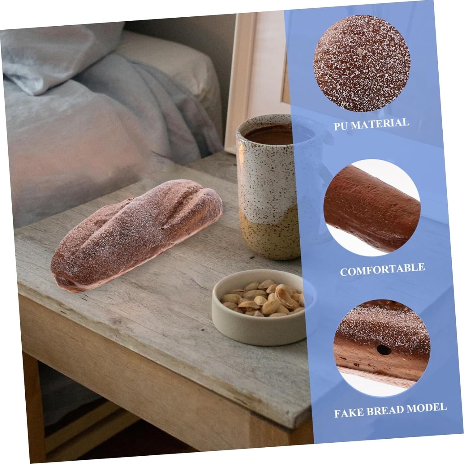 Ottimo da esporre in negozi di alimentari, negozi, panetterie, modelli cognitivi per bambini all'asilo, oggetti fotografici, ecc. Il pane artistico è versatile e può essere utilizzato come decorazione domestica, modello di negozio e oggetto fotografico. Il pane finto sembra così reale che penseresti che fosse reale. Questo modello di pane artificiale può essere utilizzato anche come supporto fotografico pubblicitario ed è molto pratico. Dessert imitazione: colori vivaci, leggeri e belli, di lunga durata senza deformazioni, ideali per la decorazione di casa, cucina, ufficio, centro commerciale, panetteria, ristorante, hotel, bar, festa di matrimonio, ecc.