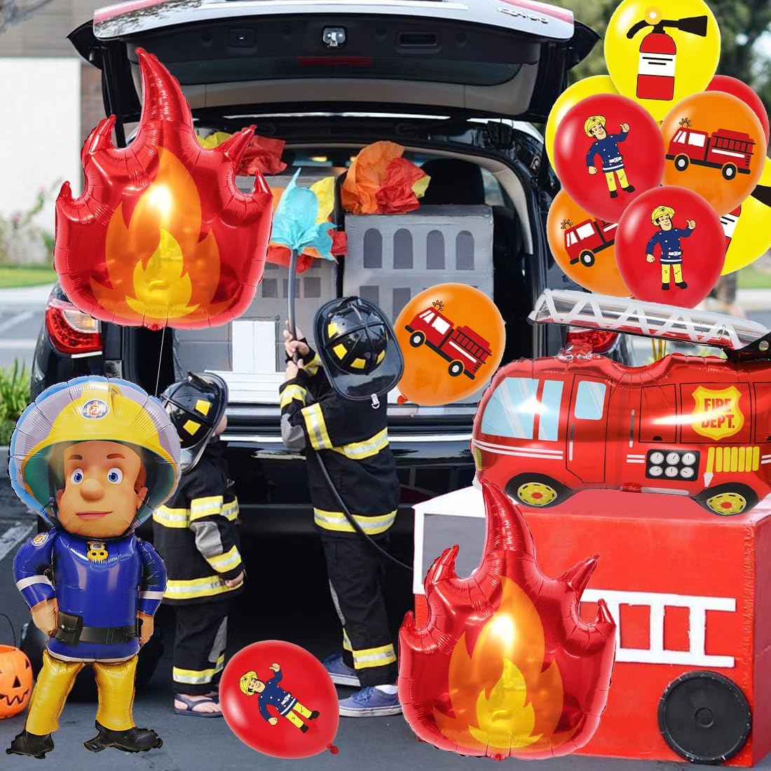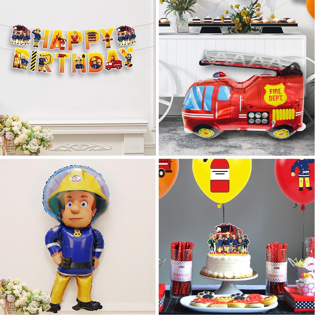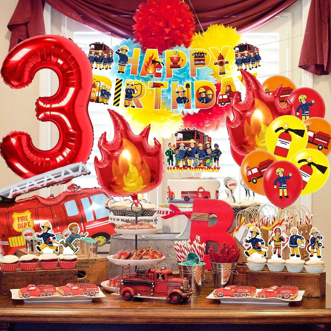Decorazione di compleanno pompiere per bambino di 3 anni, Decorazione per 3 compleanni pompiere, Topper per torta pompiere, Palloncini pompiere, Banner di buon compleanno per decorazione festa di compleanno per bambino di 3 anni
