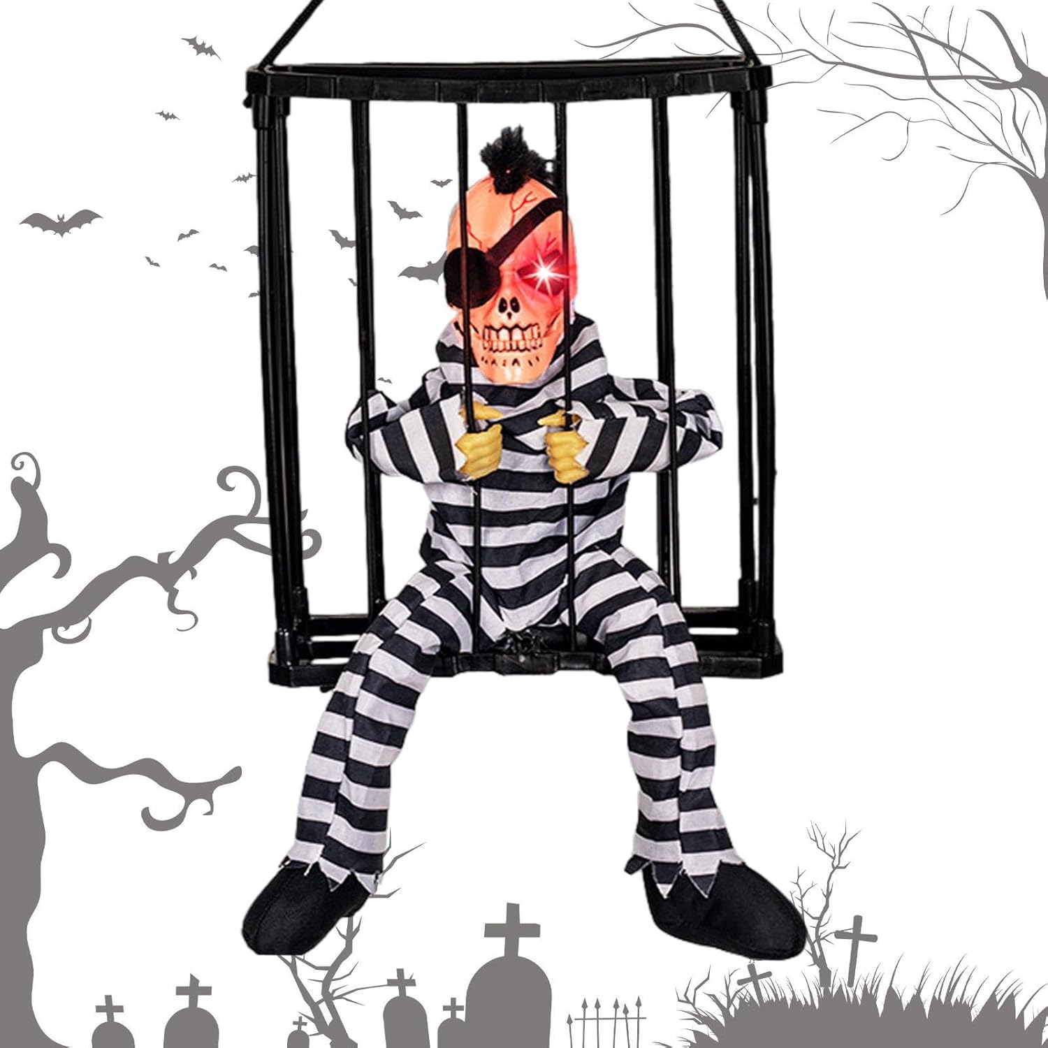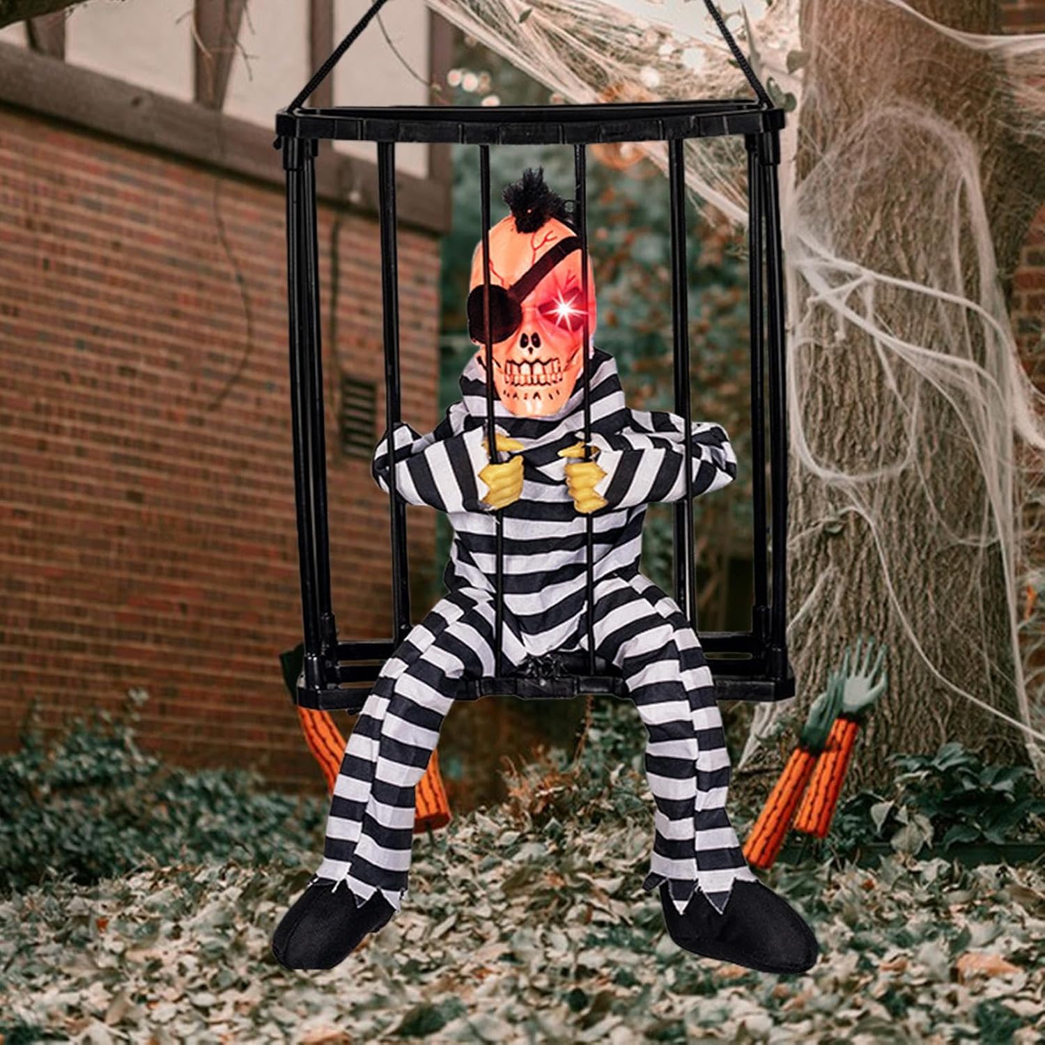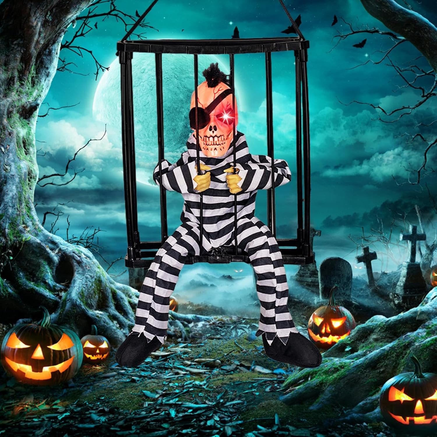 Caratteristica spettrale: con la nostra gabbia carceraria di Halloween attirerai l'attenzione di tutti! Il mostro intrappolato all'interno griderà: "Portami fuori!" Mentre cerchi di liberarti, creerai un'atmosfera coinvolgente che i tuoi ospiti non dimenticheranno mai. Ampiamente usato: aggiungi la nostra gabbia carceraria di Halloween alla decorazione della tua casa stregata per creare un effetto spettrale. Spaventa gli ospiti, i dolcetti o i vicini con questa gabbia dall'aspetto realistico, perfetta per ospitare creature spettrali. Con sensore di movimento: la gabbia realistica trema e tintinna mentre i suoi occhi rossi e gli effetti urlanti ti fanno venire i brividi lungo la schiena. La sua tecnologia dei sensori rileva il movimento fino a 23,5 pollici di distanza. Materiale eccellente: la gabbia della prigione di Halloween è realizzata in ABS e materiali in tessuto di alta qualità ed è costruita per resistere all'usura. Crea un'esposizione spettrale delle tue decorazioni di Halloween. REGALO PERFETTO: migliora le tue decorazioni di Halloween con questa gabbia da prigione, un regalo essenziale per la famiglia e gli amici. Perfetta per scherzi spaventosi, per creare un'atmosfera inquietante o semplicemente per spaventare gli ospiti, questa gabbia aggiungerà un tocco di orrore in più alle tue feste di Halloween.
