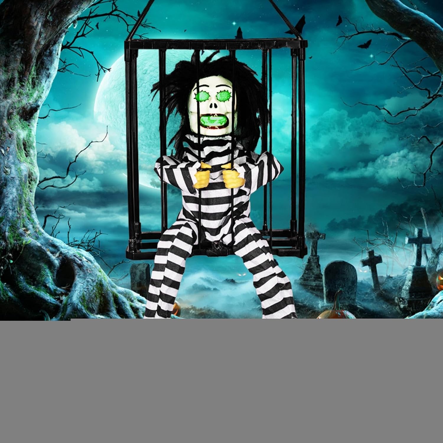 Intrattenimento strano: incanta i tuoi ospiti con la nostra gabbia da prigione di Halloween! Guarda lo spaventoso prigioniero all'interno urlare "Fammi uscire!" e ti fa venire i brividi lungo la schiena, creando il tono perfetto per un'emozionante celebrazione di Halloween. Ampia applicabilità: questa gabbia per prigionieri di Halloween è l'ultima aggiunta spettrale alle decorazioni della tua casa stregata. La gabbia dall'aspetto realistico può contenere qualsiasi creatura spaventosa ed è perfetta per spaventare gli ospiti, i dolcetti o gli scherzetti e i vicini. Occhi luminosi: gli occhi rossi scintillanti e gli effetti urlanti creano un'atmosfera spettrale. Attiva il sensore semplicemente girandolo, facendo sì che il prigioniero afferri in modo inquietante le sbarre. Rileva fino a 23,5 pollici di distanza. Materiale premium: la nostra gabbia carceraria di Halloween è realizzata in ABS + tessuto, garantendo una durata incrollabile e resistenza all'usura. Il montaggio è un gioco da ragazzi, perfetto per spaventare la tua festa di Halloween. Regalo decorativo: dai un tocco spettrale al tuo arredamento di Halloween con questa terrificante gabbia da prigione, un regalo perfetto per la famiglia e gli amici. Usalo per scioccare i tuoi ospiti, spaventare i tuoi vicini o creare un'atmosfera spettrale.