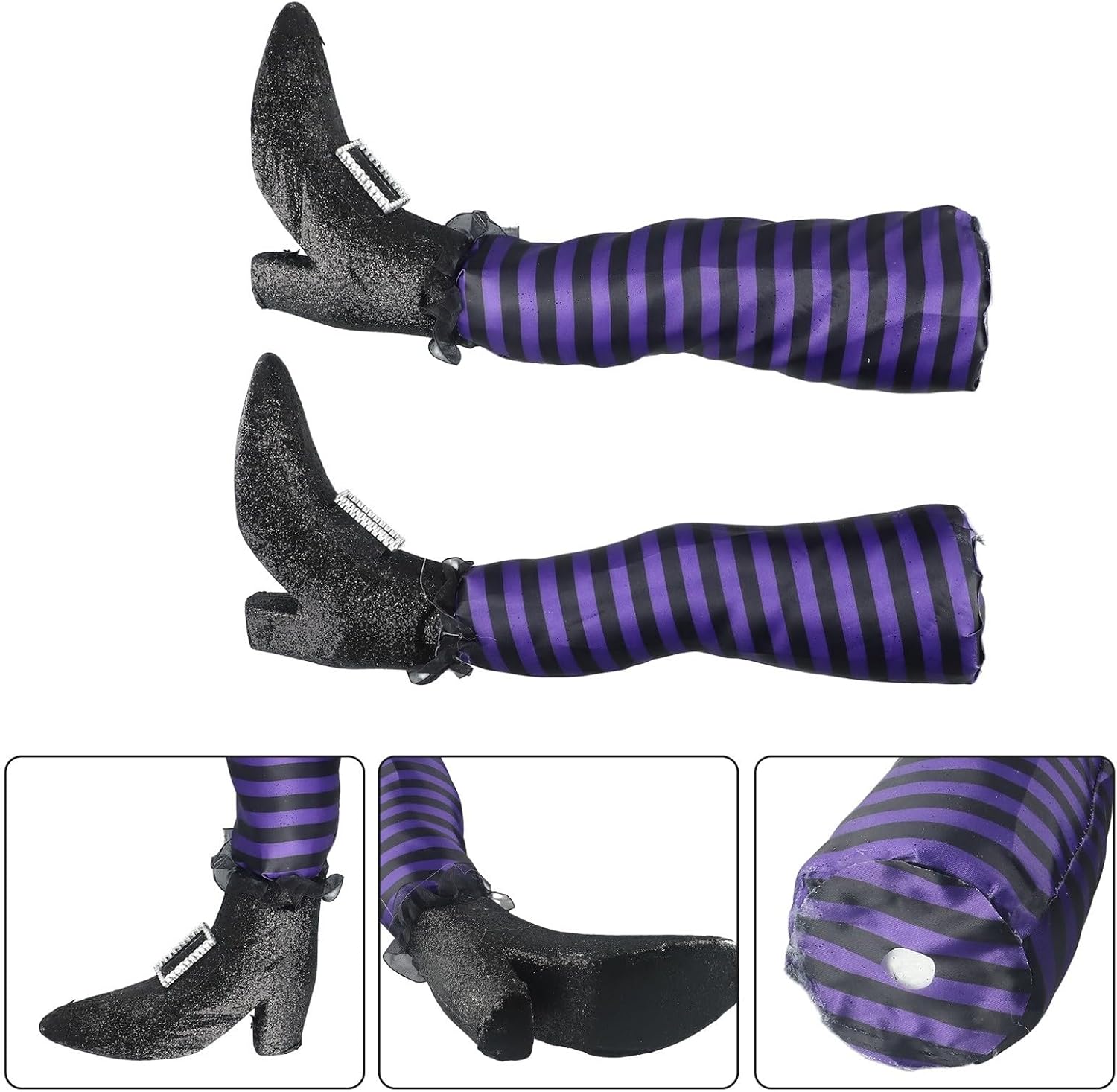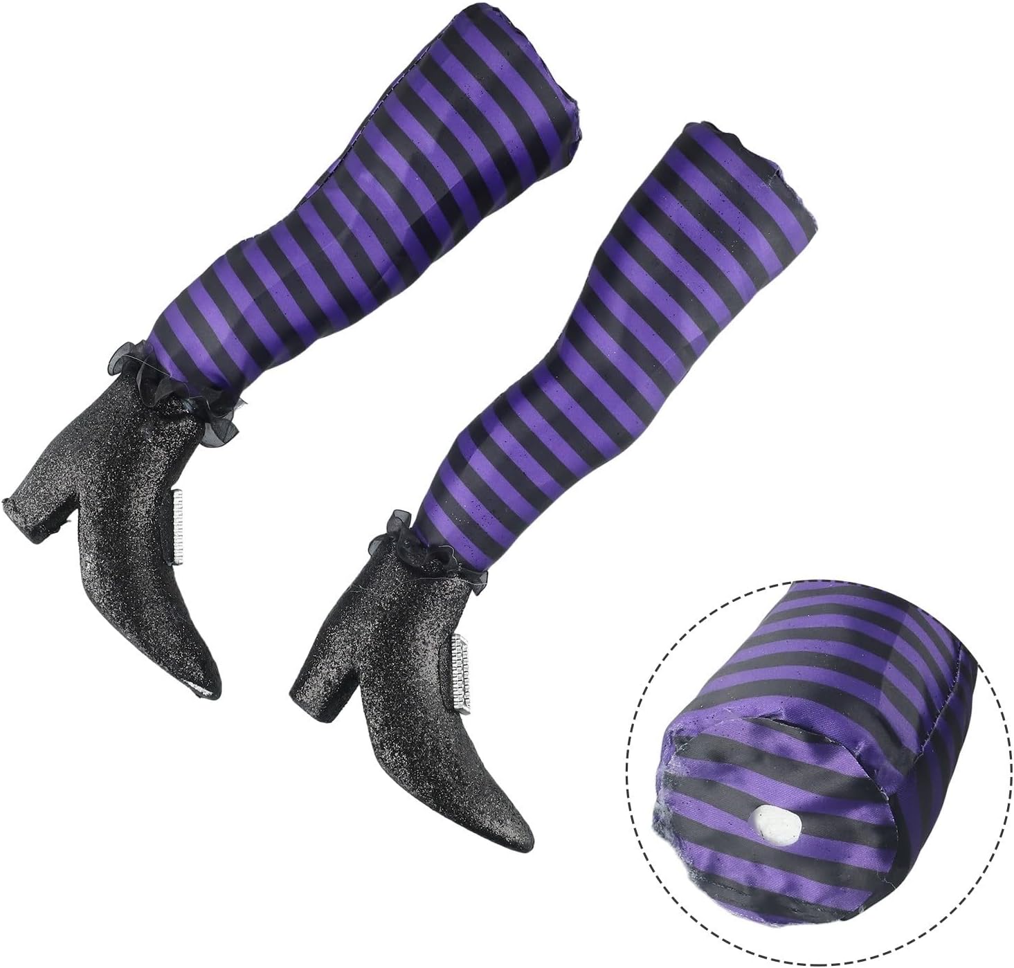 Realizzate in tessuto, queste gambe da strega di Halloween sono morbide al tatto e realizzate in materiale, facili da riporre e riutilizzare. Perfetto per coloro che apprezzano la praticità e la durata. Queste gambe da strega sono un'ottima aggiunta alle feste di Halloween, poiché fungono sia da divertenti decorazioni che da pratici fermaporta. Aggiungi un tocco di fantasia e unicità all'atmosfera della tua festa. Usi versatili: appendi queste gambe da strega su alberi, pareti o porte d'ingresso insieme ad altre decorazioni di Halloween per un'atmosfera spettrale e festosa. Facile da posizionare e creare una scena indimenticabile. Realizzate in billet di schiuma e asta di plastica, queste gambe da strega sono progettate per essere leggere ma robuste. La lunghezza totale è di 47 cm, ogni gamba misura 32 cm. Disponibile in una varietà di colori: viola, rosso, arancione, verde, nero e bianco. Ogni confezione contiene 2 gambe da strega, offrendoti molteplici opzioni di decorazione. Usali insieme o separatamente per creare un display di Halloween personalizzato che delizierà i tuoi ospiti.