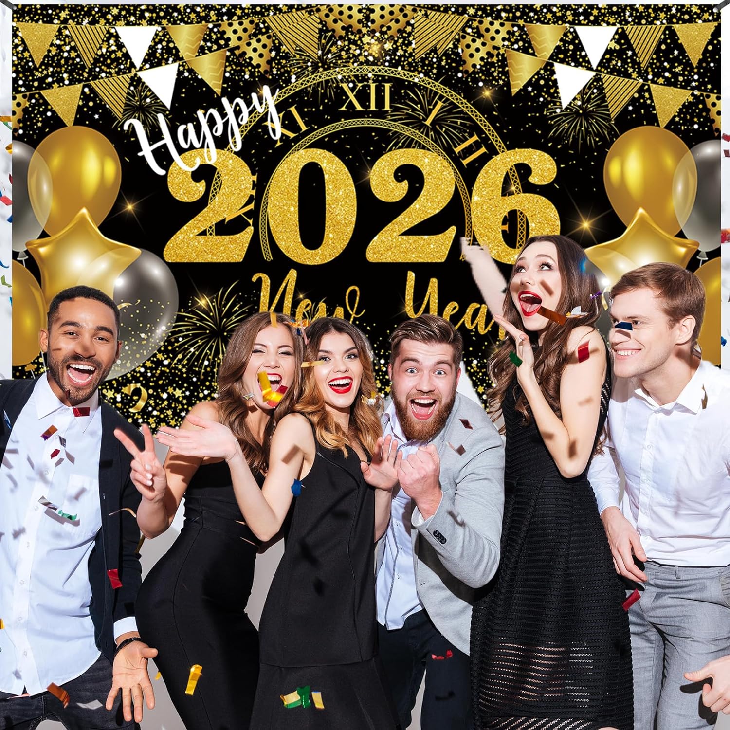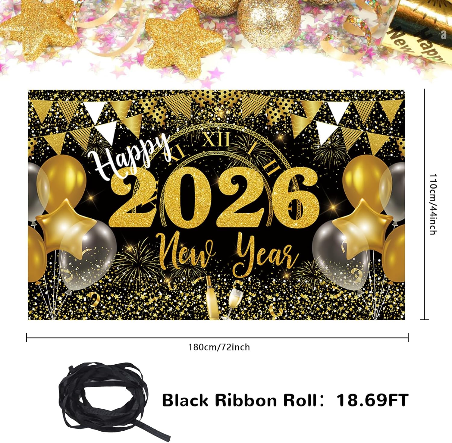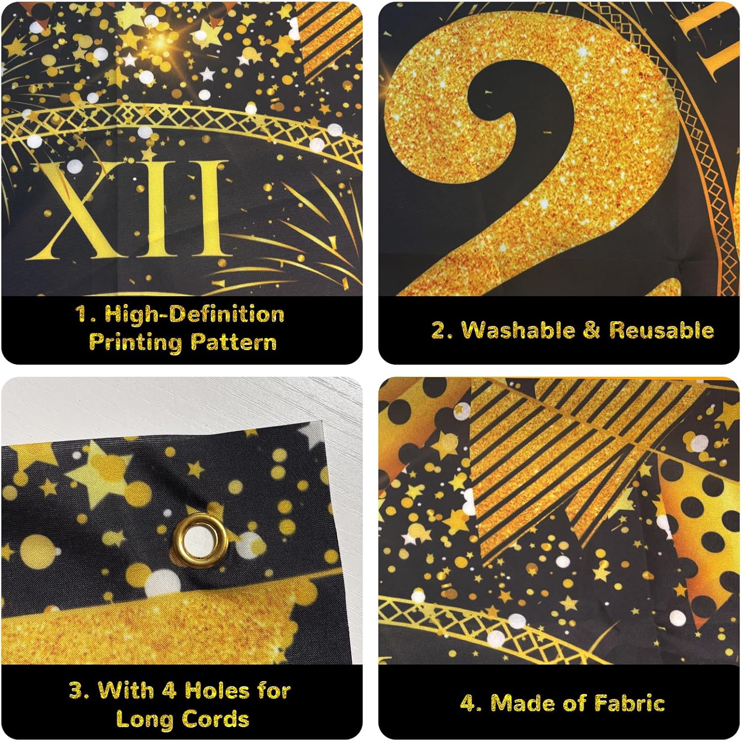🕛🎇【Diamo il benvenuto all'anno 2026】Fuochi d'artificio dorati e stelle filanti esplodono in uno splendore abbagliante, annunciando l'imminente arrivo del nuovo anno. L'orologio centrale e l'anno 2026, catturati in un primo piano visivamente sbalorditivo, aggiungono tensione alla scena e catturano questo momento indimenticabile. L'oro radioso rappresenta un nuovo anno che inizia con ricchezza, trionfo e luce, rendendo la celebrazione del Capodanno un'esperienza unica. 🥳【Un colore elegante e sofisticato】Abbiamo scelto una combinazione di colori lussuosa e senza tempo in nero e oro per migliorare l'atmosfera del tuo evento. Lo sfondo nero profondo e ricco funge da tela perfetta e ricorda il cielo di mezzanotte. Scintillanti fuochi d'artificio metallici dorati brillano di straordinaria vitalità ed emanano un'atmosfera di sofisticata eleganza. 💎【Qualità Premium】Realizzato in tessuto di poliestere leggero di alta qualità con stampa digitale ad alta risoluzione, questo fondale mostra dettagli impressionanti di uno scintillante motivo della festa di Capodanno. La sua superficie antiriflesso assorbe efficacemente la luce, eliminando i riflessi forti e gli antiestetici punti luce. Ciò garantisce che ogni foto sia nitida, professionale e perfettamente esposta e che l'attenzione sia interamente concentrata su di te e sui tuoi ospiti. 🎉【Extra Large per Decorazioni per Feste Impressionanti】Con una dimensione di 72 pollici x 44 pollici (circa 6 piedi x 3,6 piedi), questo sfondo è adatto per una varietà di scopi decorativi. Le sue dimensioni lo rendono ideale per allestire speciali aree fotografiche, come accattivante decorazione murale o come tovaglia per i tavoli da dessert festosi. Anche con gruppi numerosi, le foto possono essere scattate senza sforzo senza compromettere l'impatto visivo dello sfondo. 🎊【Versatile e senza tempo】Perfetto per i festeggiamenti di Capodanno 2025, compleanni, anniversari o cerimonie di premiazione. Usalo come sfondo per le foto festive, come decorazione per la porta di Capodanno, come tovaglia o come insegna sul balcone. Esponilo a casa, in ufficio o sulla porta d'ingresso come gesto di benvenuto per gli ospiti. Più che una semplice decorazione, attira l'attenzione, incoraggia l'interazione e cattura momenti indimenticabili da condividere con i propri cari e colleghi.