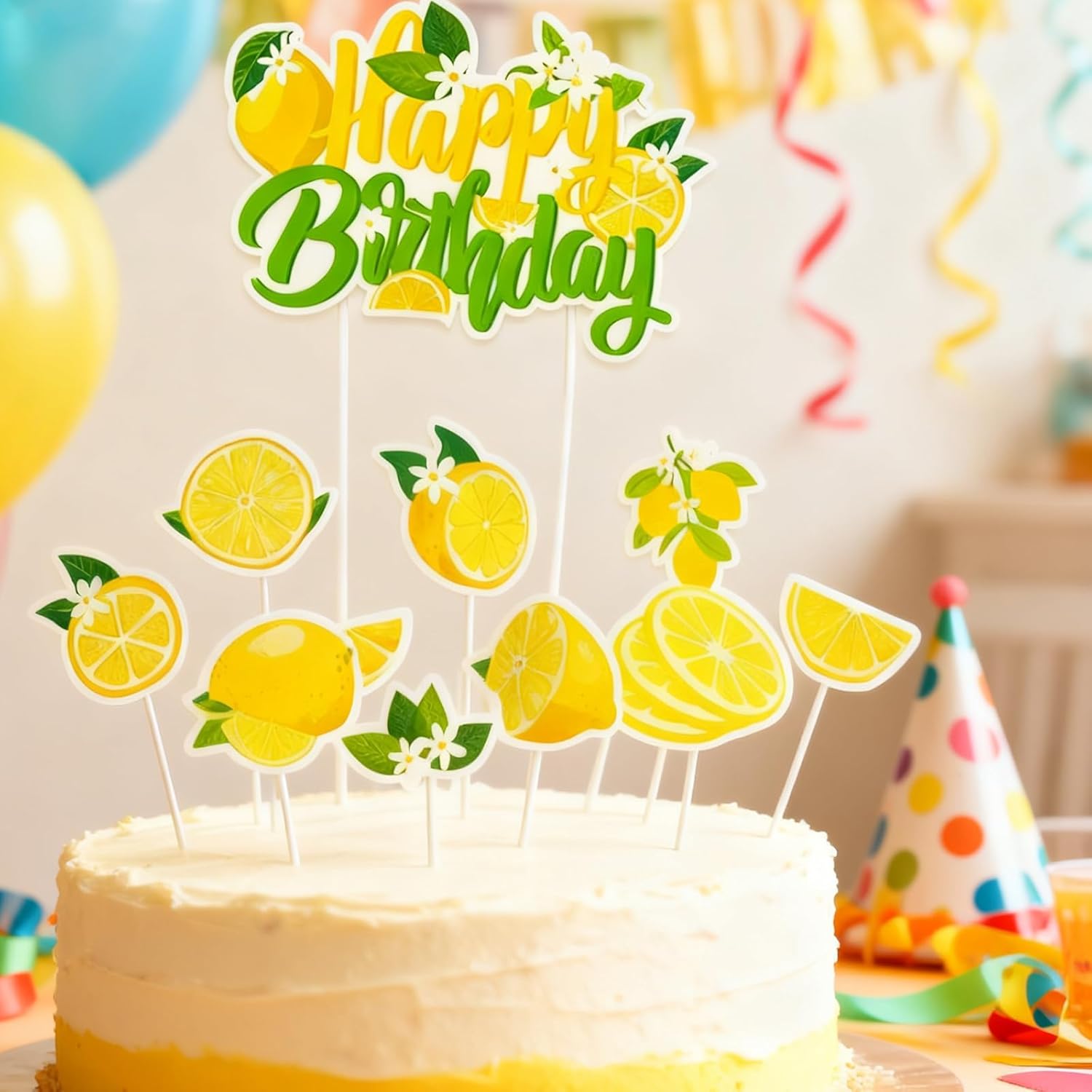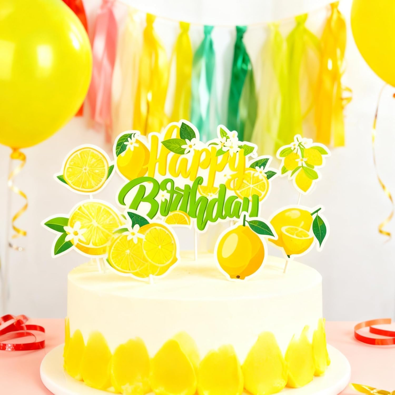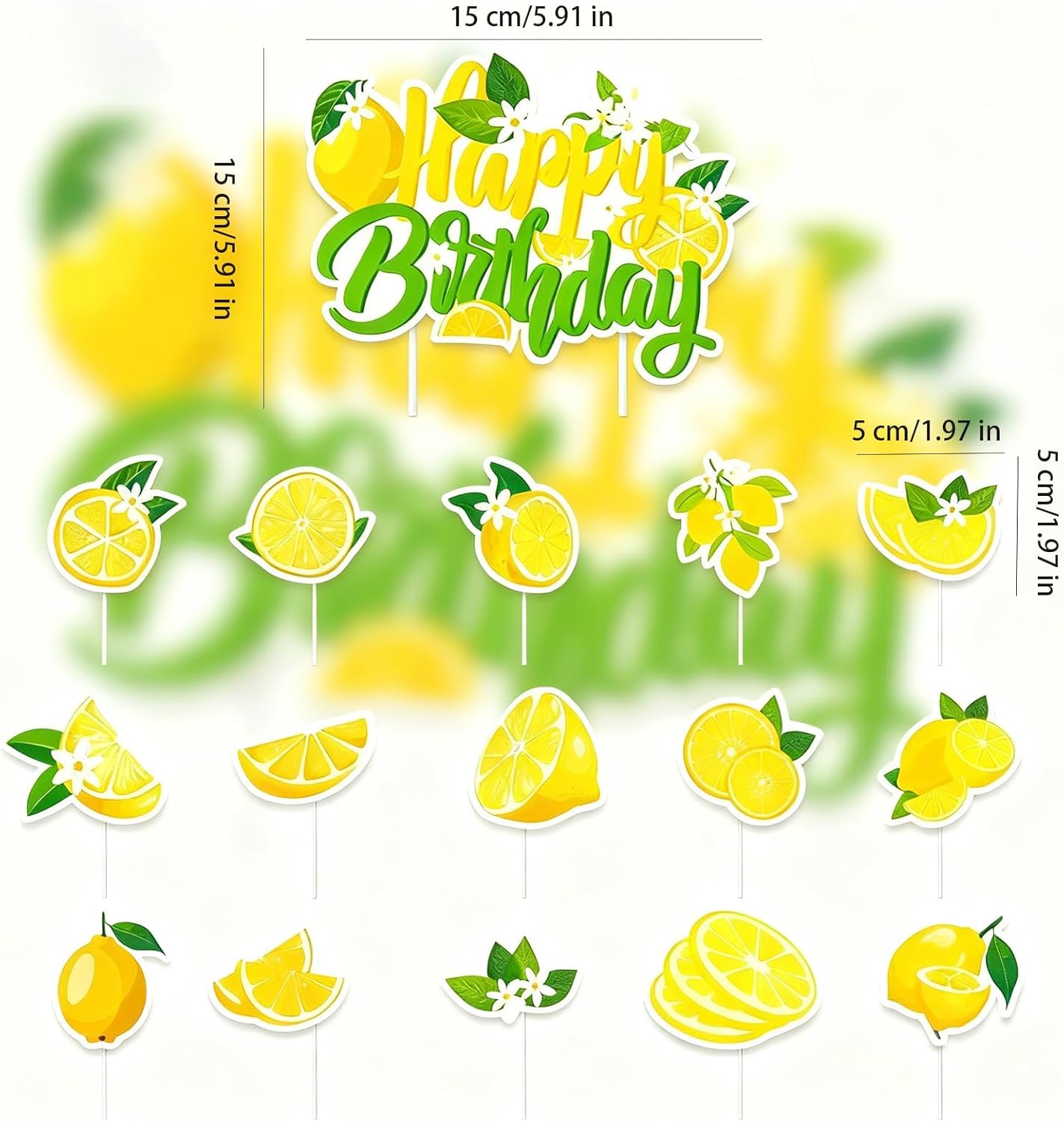 【Set di decorazioni con limone, facile da preparare】Include 1 decorazione "Happy Birthday" e 15 decorazioni di limone in diverse forme, perfette per decorare torte e per una fresca sensazione estiva. Materiale per alimenti, sicuro e affidabile: realizzato con materiali di qualità alimentare, inodore ed ecologico, queste decorazioni sembrano fantastiche sulle torte senza comprometterne il gusto. Versatili per diverse occasioni: gli stampi al limone sono ideali per decorare torte di compleanno, cupcake, dessert e molto altro ancora. Perfetto per matrimoni, feste, anniversari e altri eventi, per aggiungere un tocco allegro a qualsiasi occasione. Design elegante con accessori completi: con diversi stili decorativi, motivi squisiti e colori vivaci, offre una varietà di possibilità di progettazione per diverse esigenze. 【Fai da te, perfetta per i bambini】La superficie simile a un frutto è realistica, con diversi stili che possono essere combinati liberamente a seconda delle preferenze personali e delle occasioni, in modo da poter creare le proprie decorazioni uniche per torte.