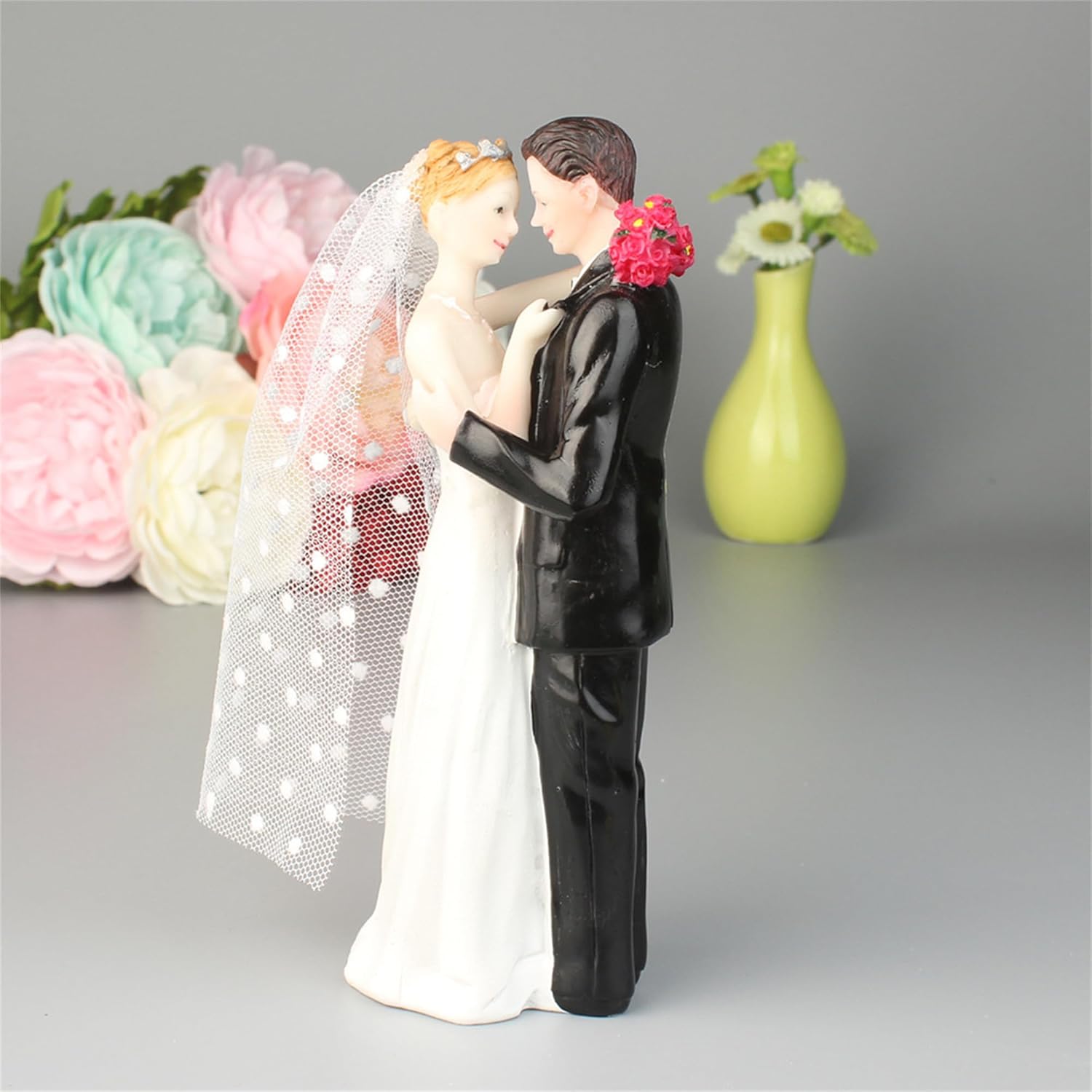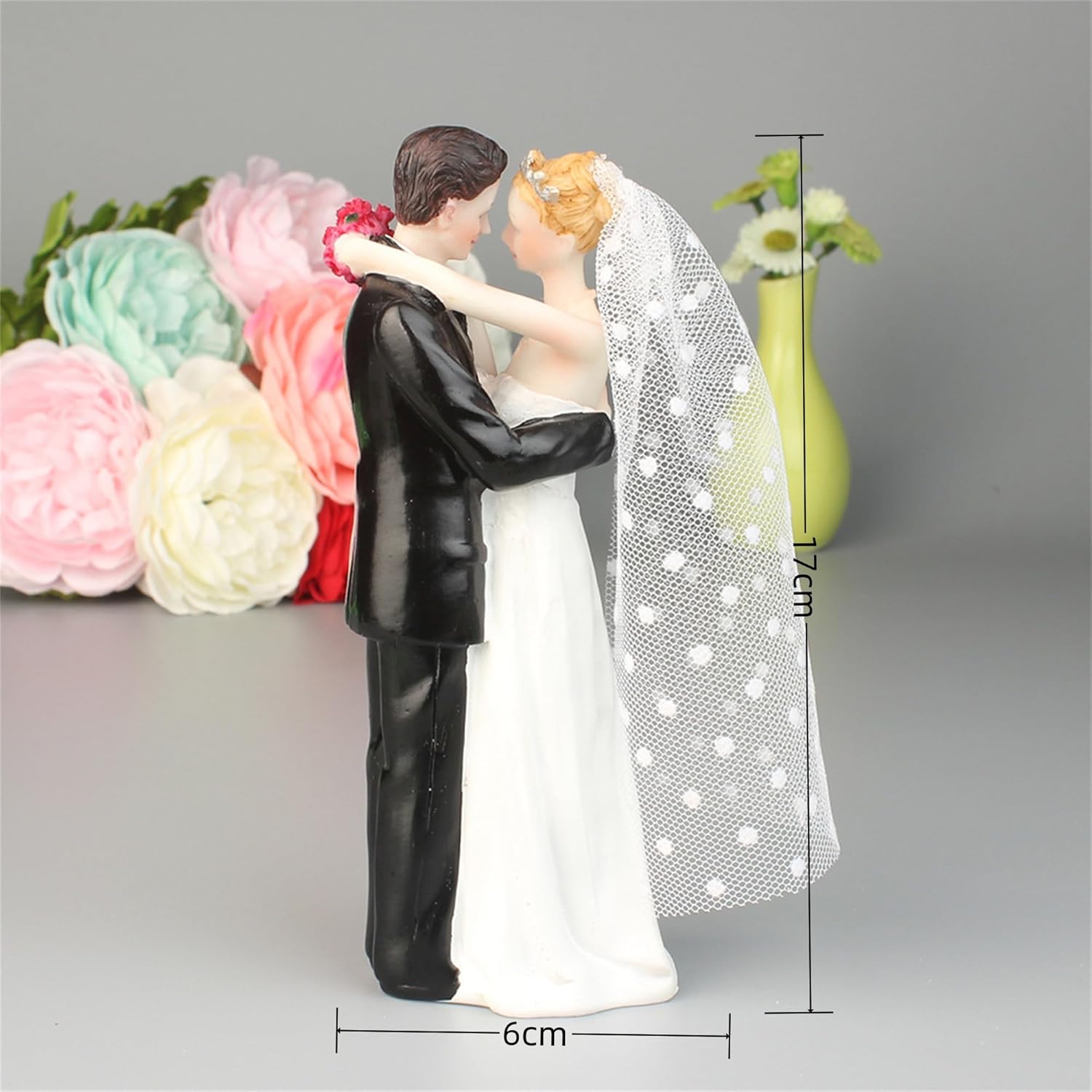 Colori classici: design senza tempo in bianco e nero che si abbina armoniosamente a qualsiasi stile di torta nuziale, dal tradizionale al contemporaneo Artigianato: statuetta splendidamente dettagliata che mostra una romantica posa da ballo con intricati dettagli di abbigliamento formale in classico bianco e nero Materiale di alta qualità: realizzato in resina di alta qualità che garantisce durata e squisita finitura che preserva il momento speciale Design versatile: centrotavola perfetto per matrimoni, feste di fidanzamento e torte di anniversario, completando qualsiasi design o tema di torta Valore ricordo: design senza tempo che cattura un momento gioioso di celebrazione, che funge da prezioso ricordo del giorno speciale