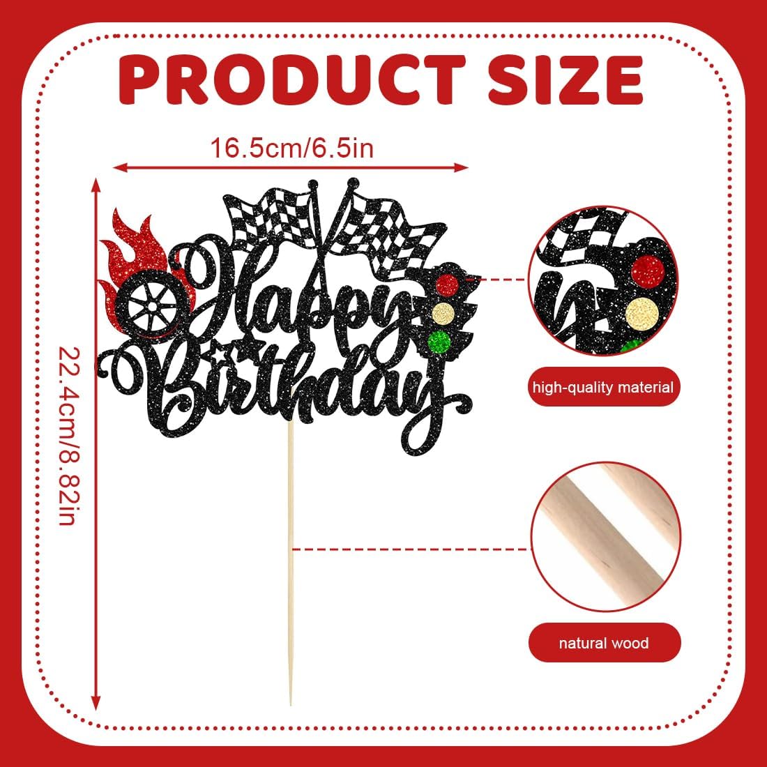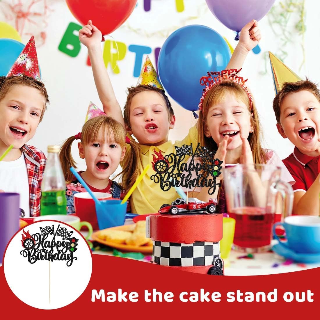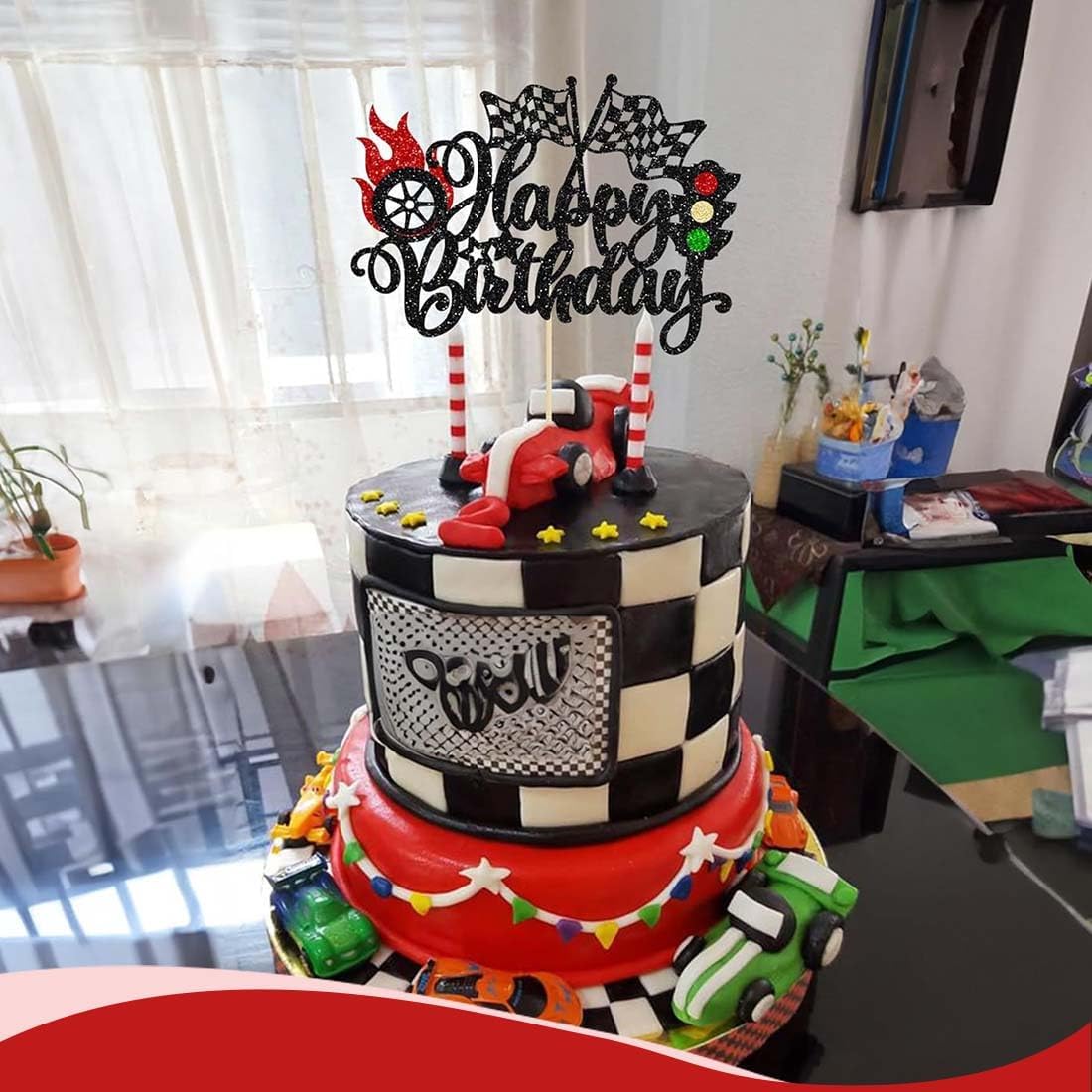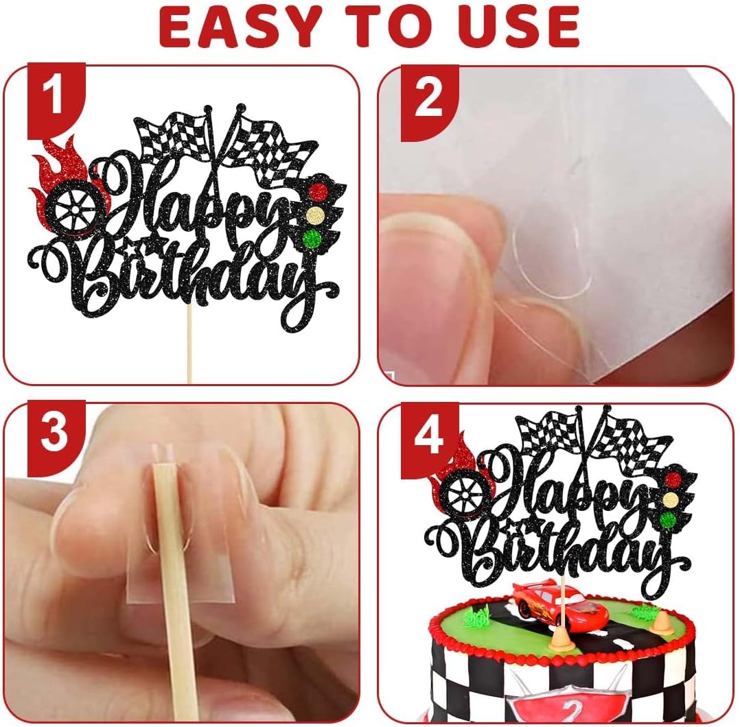 Crea un compleanno memorabile a tema corse. Questo cake topper porta azione e velocità in tavola! Perfetto per una festa di compleanno per bambini a tema corse, conquisterà sicuramente anche i più piccoli appassionati di auto. SET COMPLETO DI BANDIERE E DECORAZIONI: Questo cake topper include una bandiera da corsa, una decorazione con la scritta "Happy Birthday" e altri elementi da corsa, tutto in un unico pacchetto, per una decorazione per torta coerente e uniforme. FACILE DA USARE - Pronto all'uso. Non richiede colla o lavori manuali! Basta inserire gli elementi nella torta o nei cupcake e la tua pista da corsa è pronta. UNISEX. Perfetto per compleanni per bambini, baby shower, feste per bambini o altre feste a tema. Il design dinamico delle auto da corsa delizierà sicuramente sia i bambini che le bambine. MATERIALE SICURO E DI ALTA QUALITÀ: Realizzato in cartone resistente e plastica per alimenti, è robusto, sicuro per i bambini ed ecologico. Maneggiare con cura e riutilizzare facilmente.