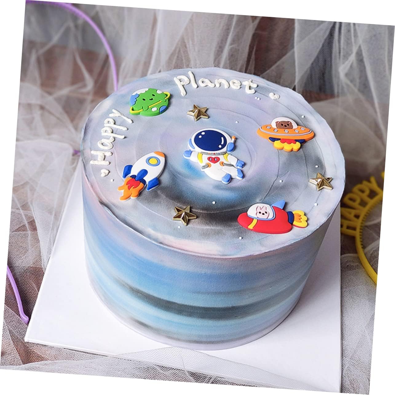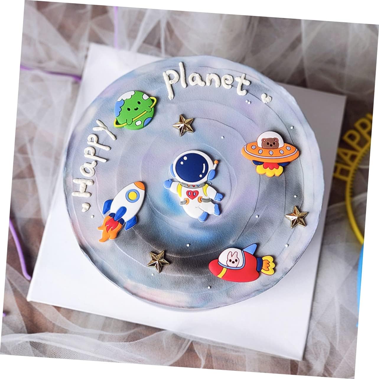 Decorazione creativa della torta: realizzata in materiale di alta qualità, pratica e resistente. Puoi usarlo per decorare la tua torta in diverse occasioni. Decorazione per torte: decorazione per torte, posizionala per aumentare l'appetito e condividere tanta gioia con i tuoi ospiti. Space Cake Decoration: Adorable space patterns add a touch of vibrant style to your room not only on your birthday but also on every day in your life. Decorazione per torte spaziali: è fantastica per i tuoi amici, compagni di classe e famiglie e condividi con loro momenti indimenticabili. Decorazioni durevoli per torte: aggiungi uno stile più vivace al tuo spazio abitativo. Use it as photo props and take a few pictures.