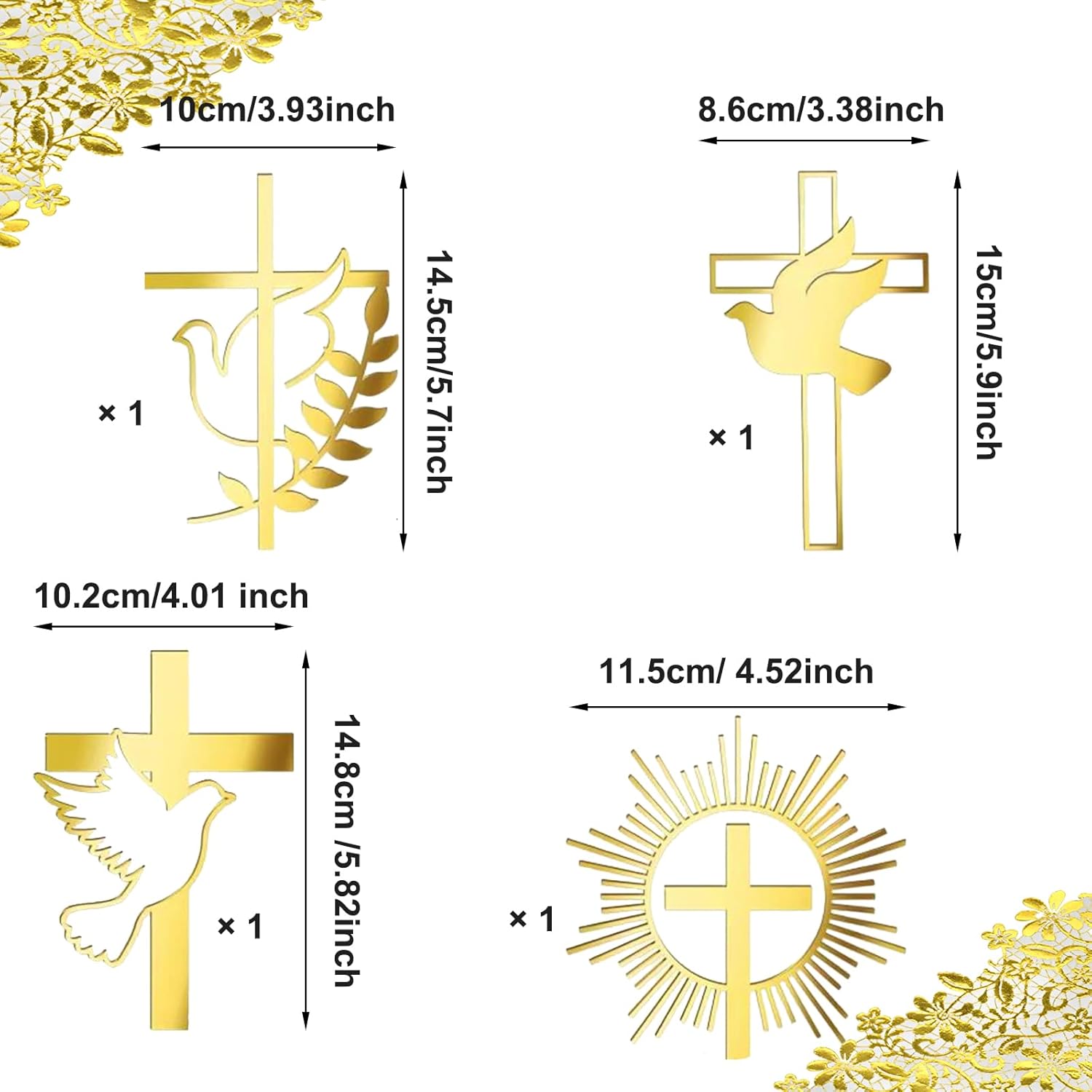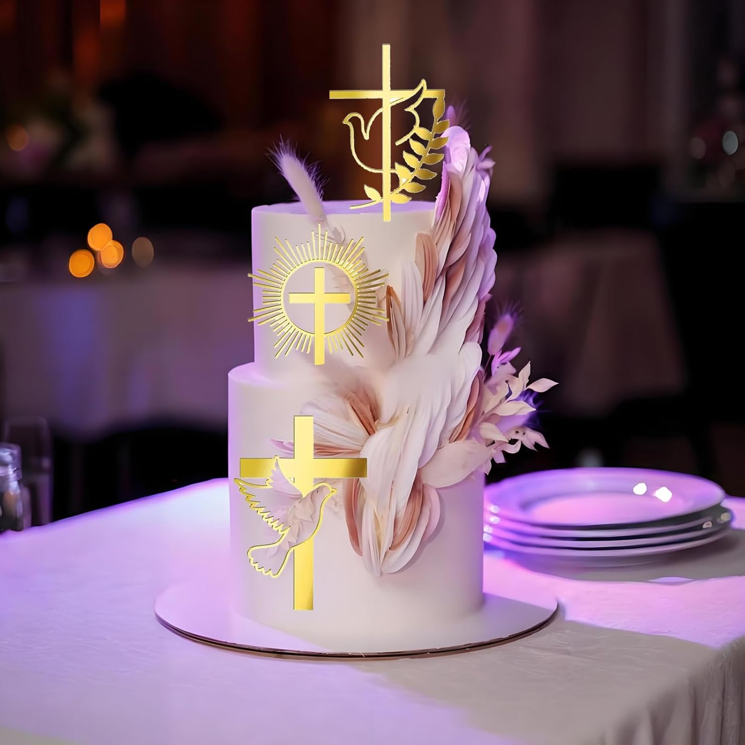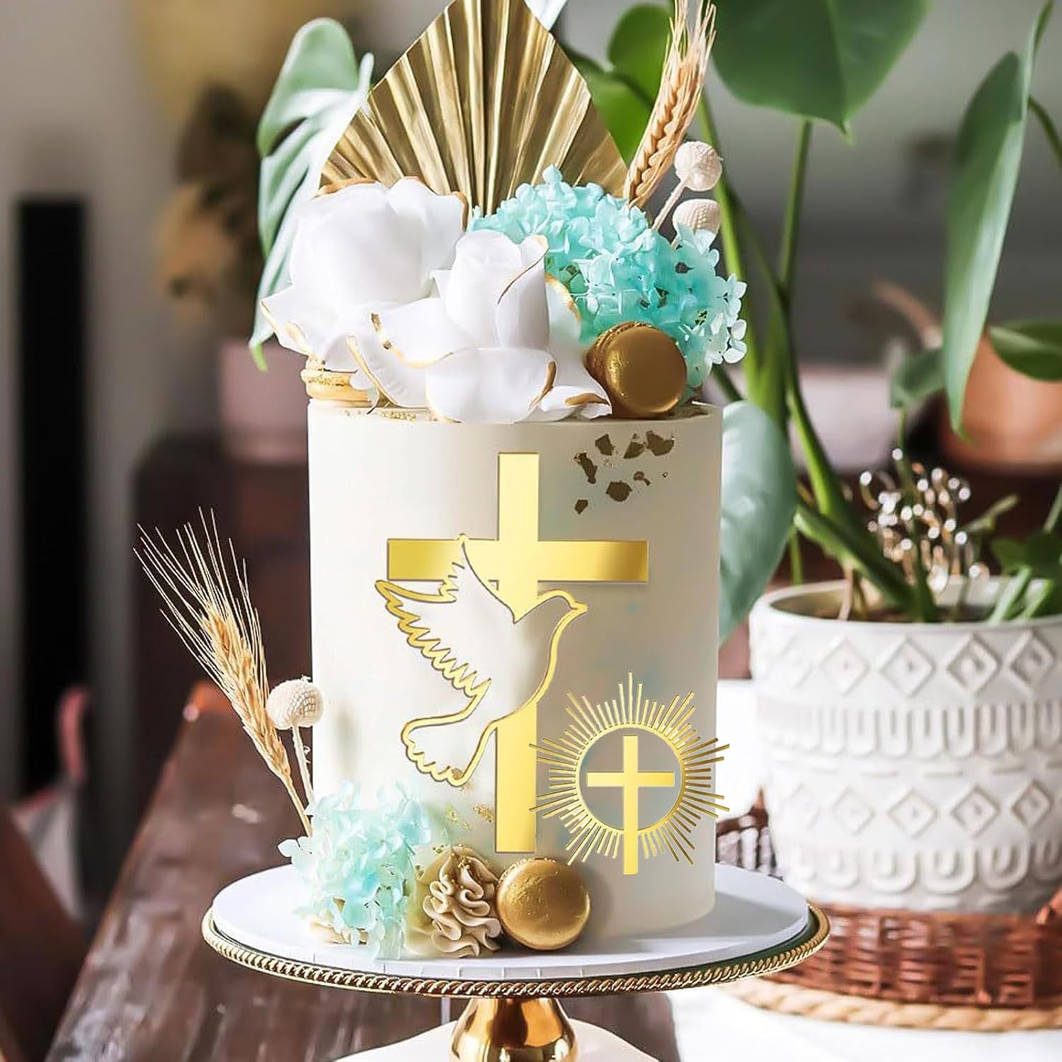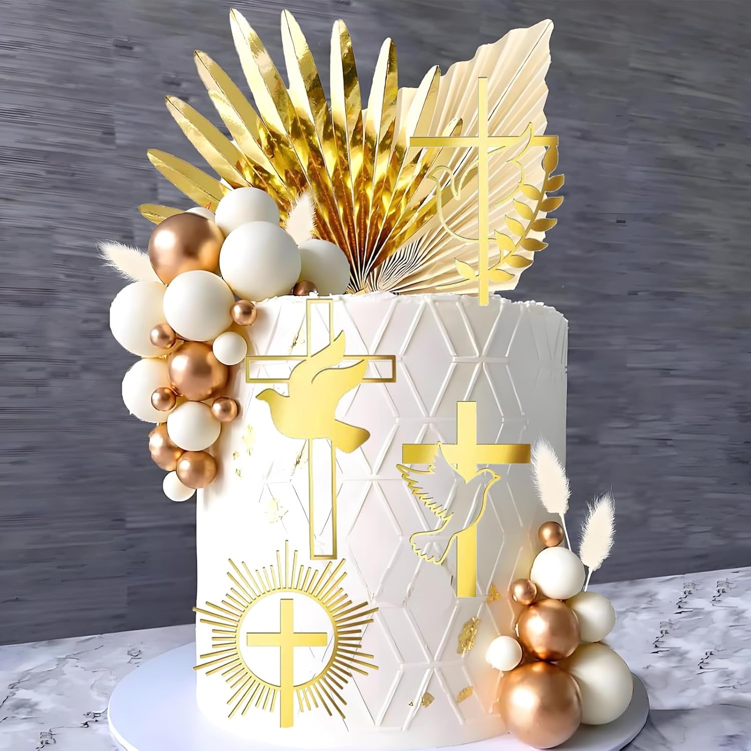 Decorazione per torta eucaristica: riceverete 4 grandi decorazioni per torte Eucaristia, per il bagno, il battesimo, a tema croce, lettere, colombe, torte, pagine, decorazione per torte e pagine, è la decorazione perfetta per ogni occasione! Copertura per torta Eucaristia dorata: la prima torta Eucaristia è decorata con un design acrilico dorato. Ci sono croci d'oro, piccioni, lo Spirito Santo e così via. Ideale per comunità, battesimo, prima decorazione per torta comune. Materiale: decorazione per torta a croce in acrilico a specchio, robusto e durevole. Come decorazione per torte, non solo aggiunge bellezza alla torta, ma anche il riflesso della croce nella luce rende la torta ordinaria più attraente. Ampiamente usato: la decorazione per torta eucaristica è la diffusione della gioia in qualsiasi stanza delle feste, e la croce con colombe intelligenti è ideale per occasioni speciali come compleanni, matrimoni, eucaristie, battesimi e altre celebrazioni per evidenziare la tua decorazione. Decorazione per torta battesimo: questa decorazione per torta è perfetta per la prima Eucaristia o la Santa Eucaristia. L'Eucaristia è una bella pietra miliare sulla strada per l'adulto, il bellissimo tappetino per torta è il regalo perfetto per il vostro bambino.