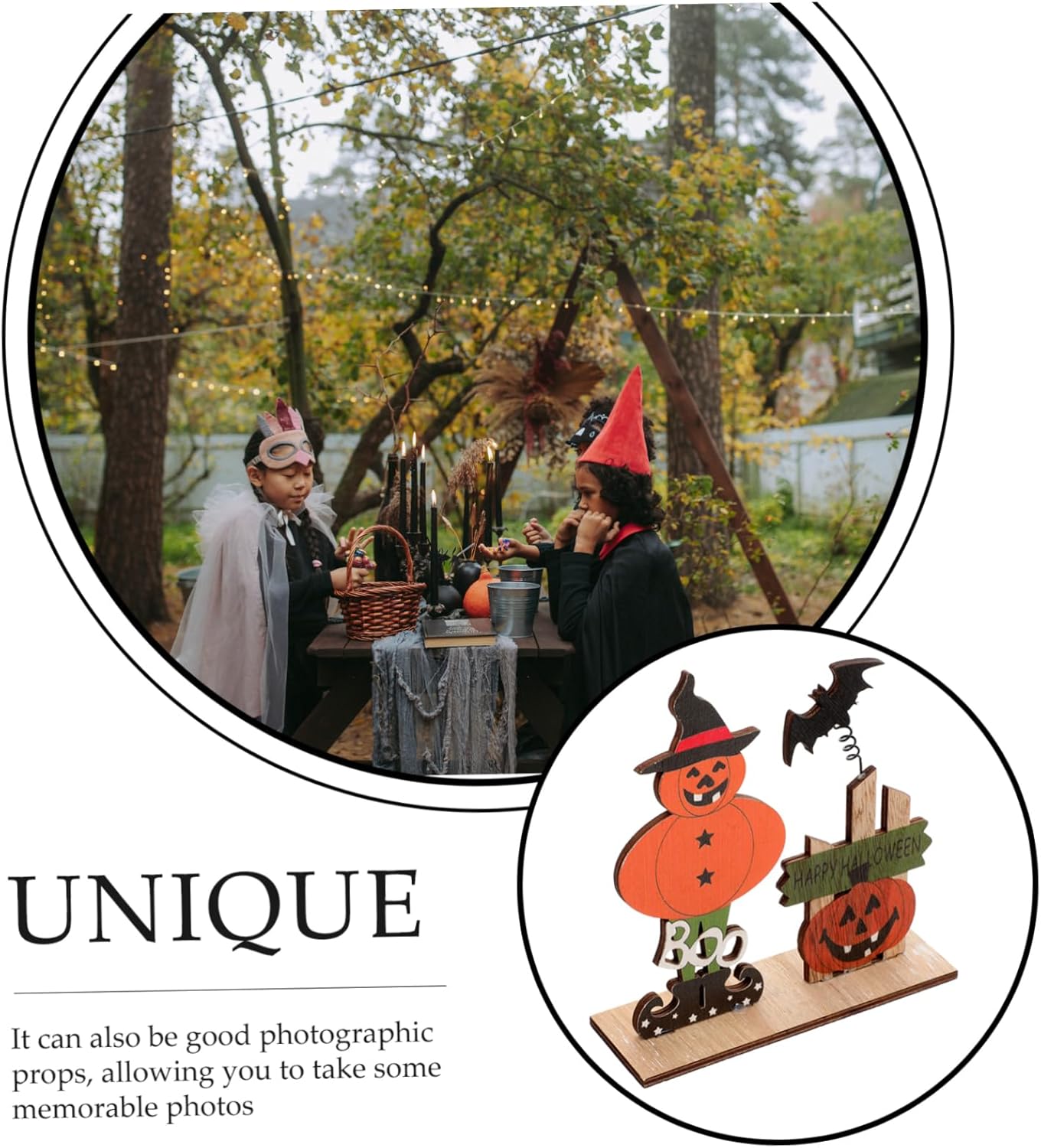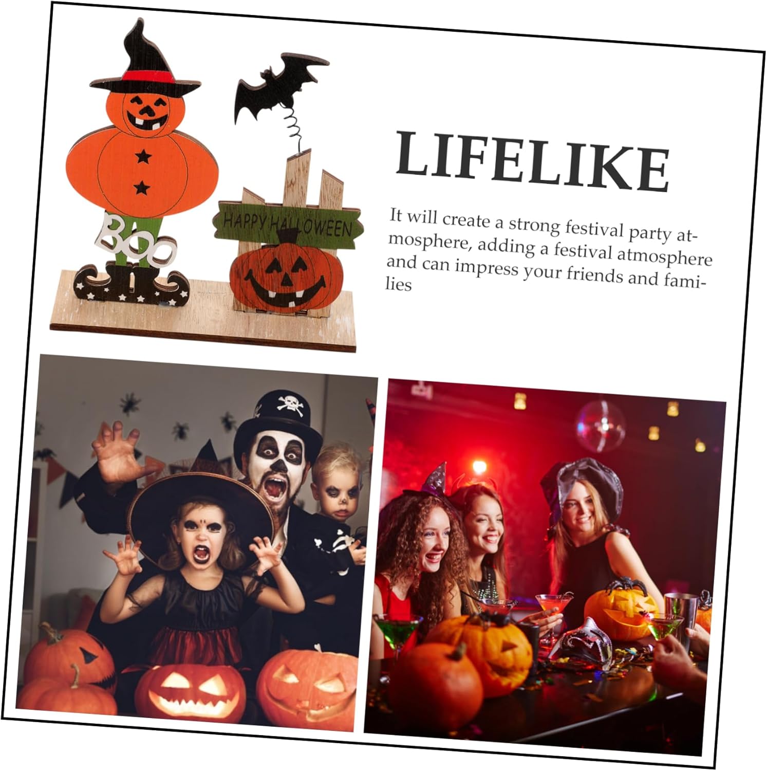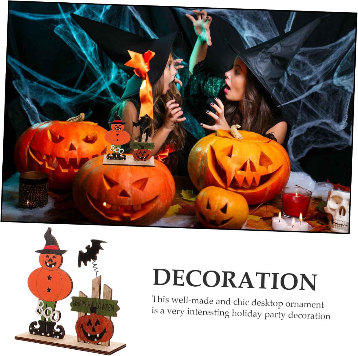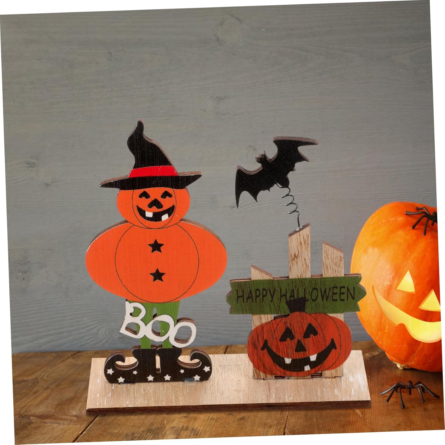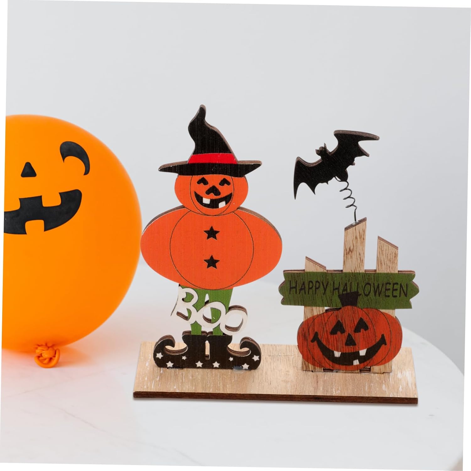 Centrotavola di Halloween: realizzato in materiale di legno, questo cartello da tavolo di Halloween è leggero e può essere facilmente spostato, pratico da usare. Centrotavola: la decorazione a tema Halloween è piena di elementi festivi per aggiungere un'atmosfera più calda e festosa alla tua festa. Cartello da tavolo in legno: può essere riutilizzato e può essere conservato fino al prossimo anno per un ulteriore utilizzo, il che può aiutarti. Cartello da tavolo di Halloween: design della struttura a fondo piatto, puoi posizionarlo stabilmente sul tuo desktop. Sta bene anche con altri decori. Centrotavola di Halloween: creerà una forte atmosfera da festa, aggiungerà un'atmosfera da festival e stupirà i tuoi amici e le tue famiglie.