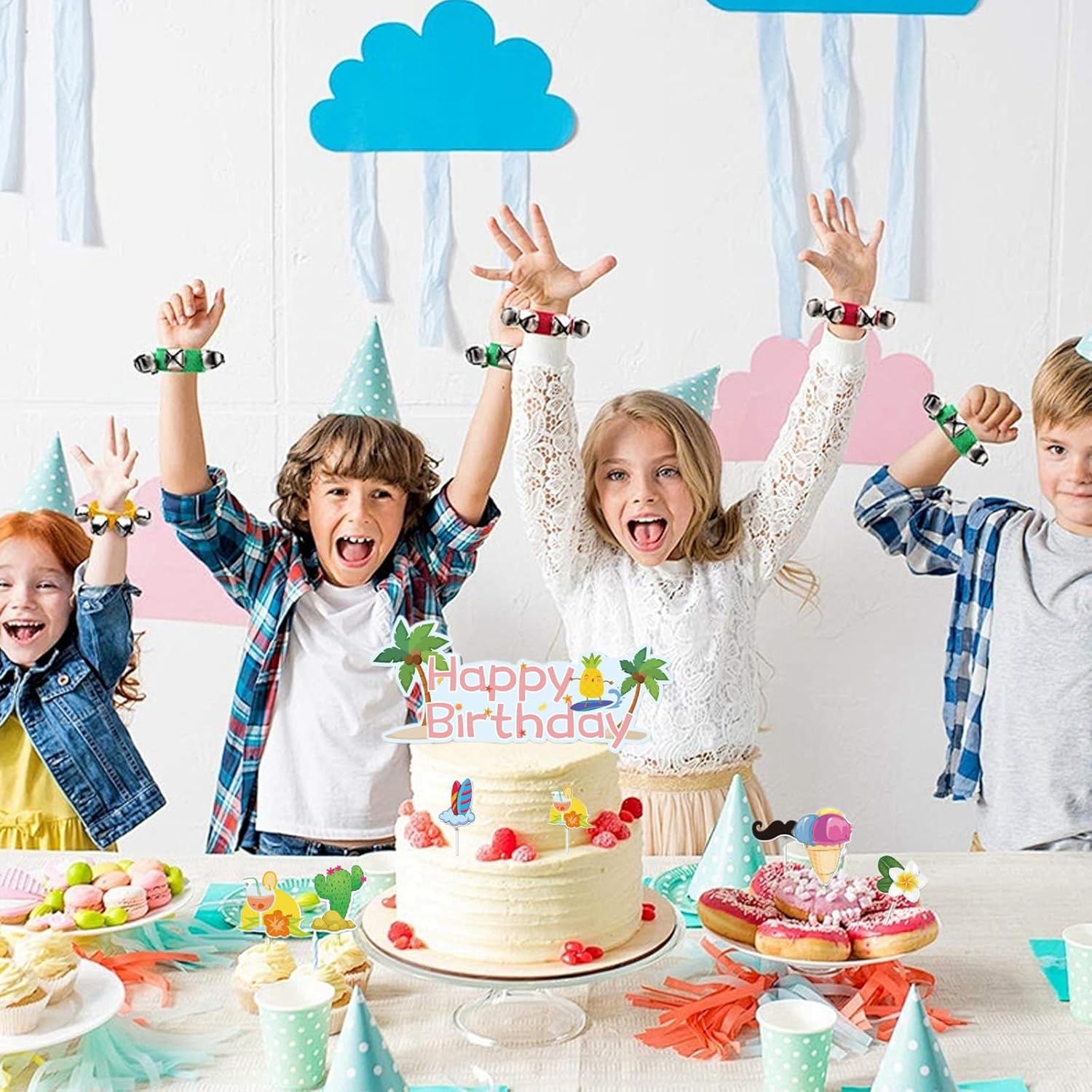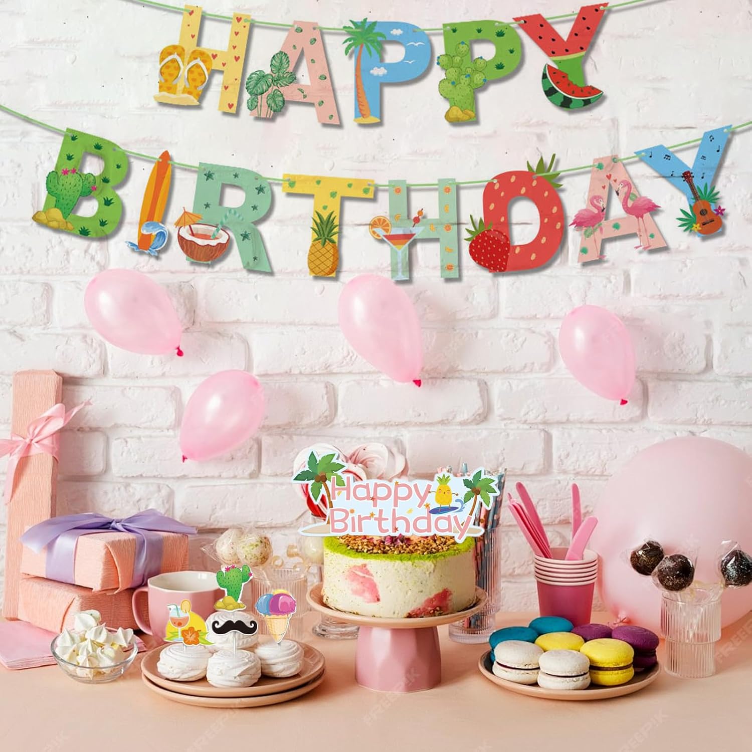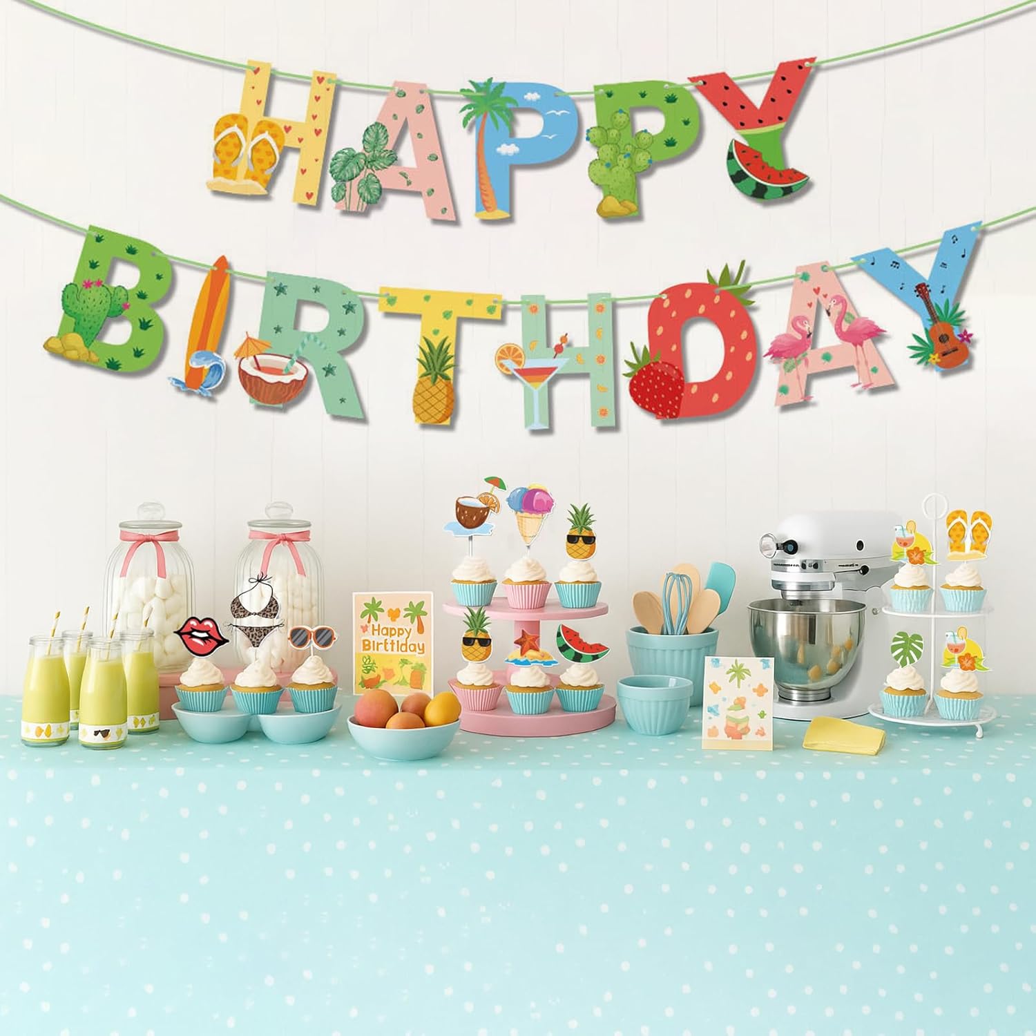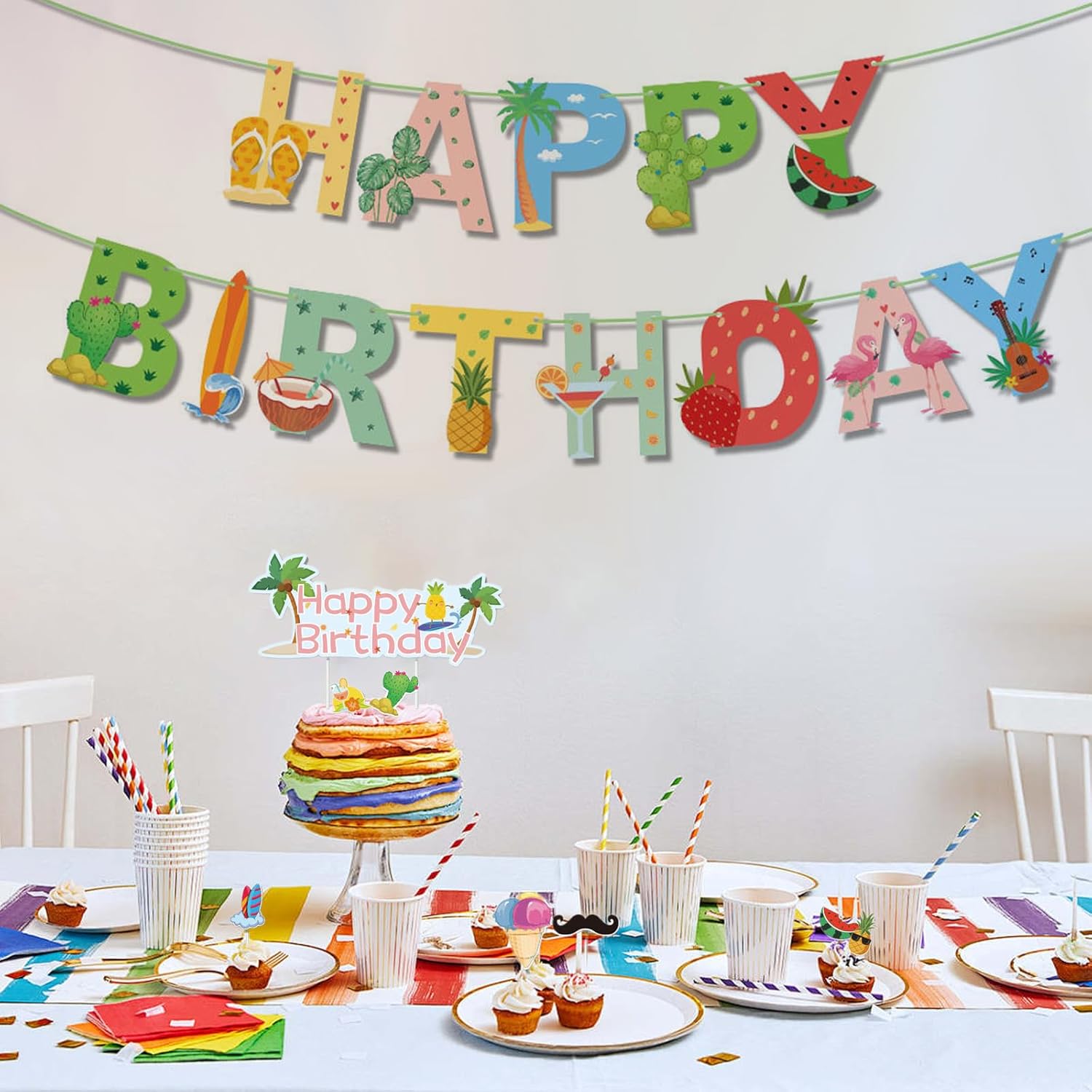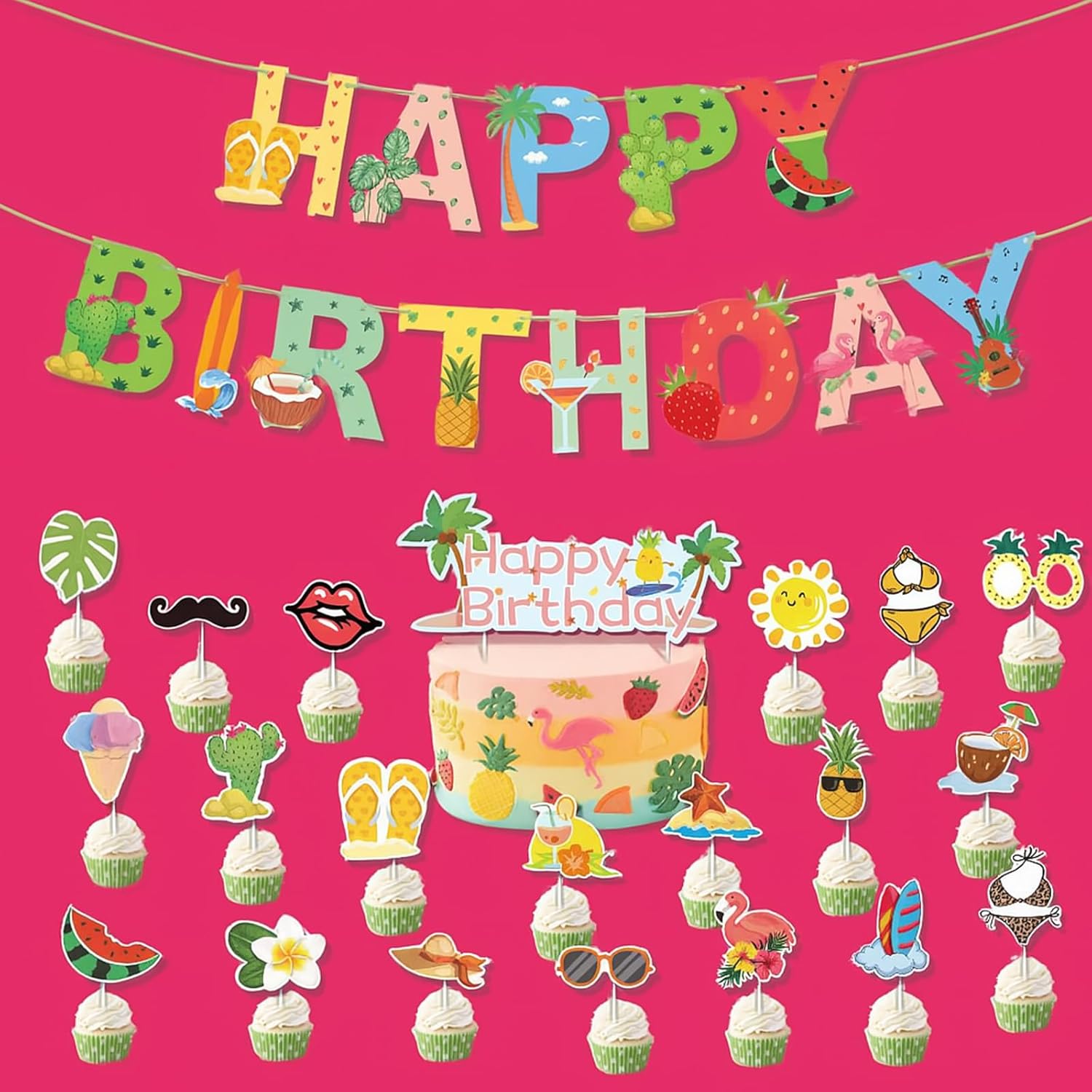 Kit completo di decorazioni per il compleanno: questo set include 1 ghirlanda di frutta Happy Birthday e 20 toppers per torta (inclusi ananas e anguria). Ideale per decorare torte e cupcakes di compleanno. 20 disegni di decorazioni varie: 20 disegni unici di decorazioni per torte di compleanno per personalizzare i tuoi dessert. Perfetto per feste di compleanno ed eventi festivi. Facile da usare: i toppers decorativi per torte si inseriscono facilmente nelle torte. La ghirlanda crea immediatamente un'atmosfera da festa di buon compleanno. Decorazione riutilizzabile: tutti gli elementi di questa decorazione per torta di compleanno sono realizzati in materiale resistente per diversi usi. Decorazione professionale: trasforma le tue torte con questa elegante decorazione di compleanno. Perfetto per decorazioni di buon compleanno e celebrazioni speciali.