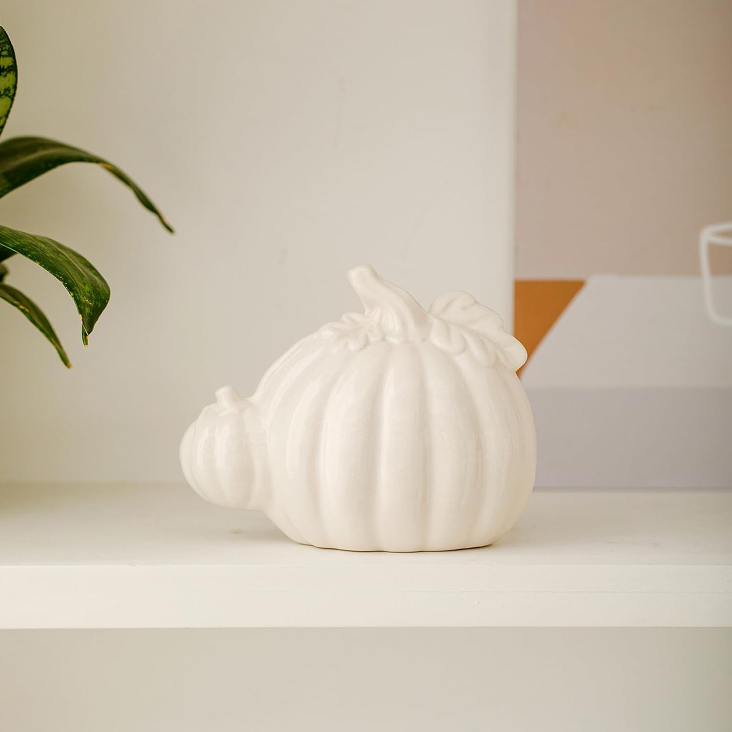 Arte tradizionale: le zucche in ceramica sono modellate a mano per garantire superfici delicate e curve senza soluzione di continuità, catturando il fascino dell'abilità artigianale e del valore creativo radicato nelle tradizioni artigianali immerse in tradizioni artigianali secolari. Decorazioni stravaganti: trasforma qualsiasi spazio in un rifugio accogliente incorporando questa decorazione di zucca nel tuo allestimento del Ringraziamento, nelle composizioni a tema raccolto o nelle esposizioni delle feste di Halloween, migliorando allo stesso tempo lo spirito festivo in casa. Elegante design in ceramica: migliora il tuo spazio con decorazioni in ceramica smaltata, offrendo toni caldi neutri che si fondono perfettamente con diversi stili di interni per un tocco elegante Soluzione decorativa pratica: progettata con ceramica a fuoco alto, offre una qualità resistente ai graffi e durevole, rendendola un'aggiunta robusta ed elegante a qualsiasi arredamento Accenti creativi: crea composizioni decorative creative utilizzando accenti di zucca, che fungono da bellissimi regali e migliorano l'estetica della casa con il loro design scultoreo