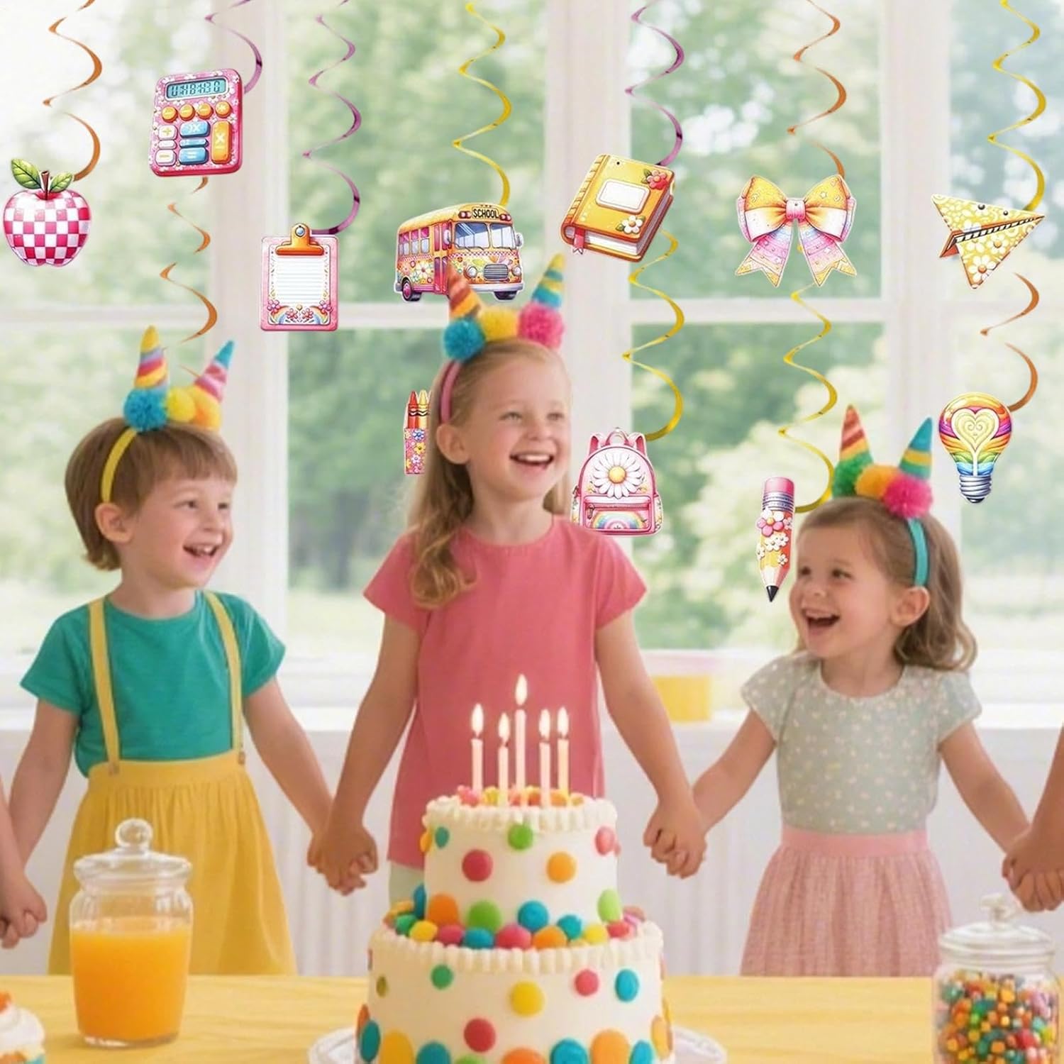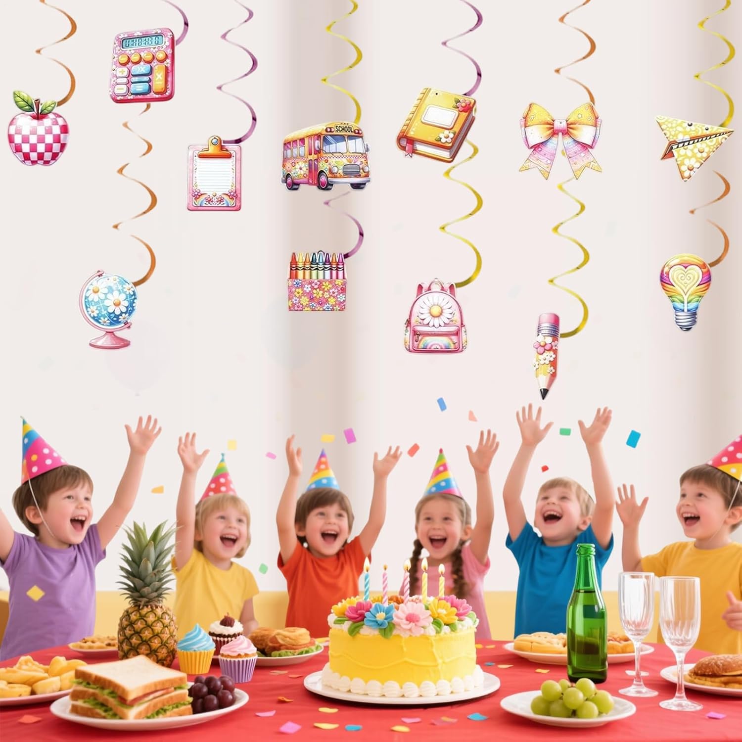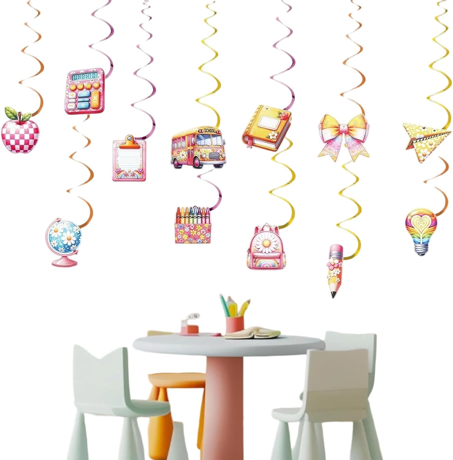 Divertente tema per il rientro a scuola: decorazioni colorate a spirale creano un'atmosfera festosa per aule, feste ed eventi scolastici per studenti, insegnanti e bambini. SET DA 12 PEZZI: Include 12 ghirlande per una decorazione versatile, adatta per pareti, soffitti, porte o bacheche per migliorare le celebrazioni del rientro a scuola. Oggetti di scena appesi per interni: gancio o nastro leggero e facile da usare, che aggiunge un tocco allegro a qualsiasi spazio interno senza alcun danno. DUREVOLE E RIUTILIZZABILE: realizzato con materiali di alta qualità che contengono forma e colore, perfetti per molteplici eventi o per un ambiente scolastico. Utilizzo versatile per le feste: ideale per riunioni di studenti, feste in classe, eventi di riconoscimento degli insegnanti o celebrazioni scolastiche che renderanno festosa qualsiasi stanza.