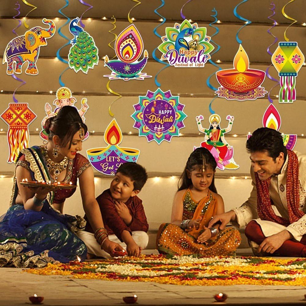 Trasforma qualsiasi ambiente, interno o esterno, in un vivace evento a tema Diwali con queste decorazioni a spirale sospese. Ideali per decorare casa, organizzare feste indiane di Diwali e Deepavali, promozioni culturali e celebrazioni! Facili montare e appendere, basta fissare i vortici sospesi soffitto o vuoi, toglierli quando non li usi e riporli facilmente. Queste decorazioni a spirale per feste sono adatte sia per attività chiuso che all'aperto e possono essere appese soffitto, alla finestra, , alla porta, all', rami degli alberi, soffitti, alle porte, ., rendendo tua festa accattivante e diversa. Le nostre decorazioni a spirale sospese Deepavali sono realizzate in carta resistente con motivi vivaci, resistenti colore, riutilizzabili e affidabili, un must per tutte le celebrazioni del Festival delle in India. I vortici sospesi Deepavali sono progettati con elementi misteriosi, squisiti e bellissimi, adatti per riunioni o feste a tema Diwali.