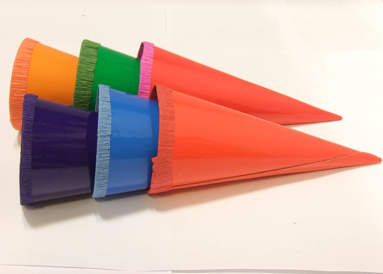 Piccoli sacchetti di zucchero in cartone lucido e carta crespa Contenuto: 6 pezzi, colori assortiti Dimensioni: circa 12 cm Decorazione per il primo giorno di scuola Riempito con piccoli oggetti o caramelle come piccolo regalo