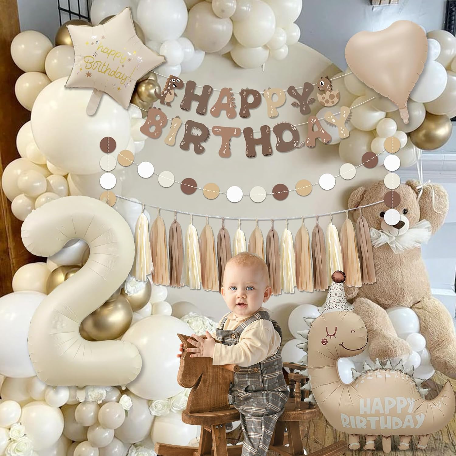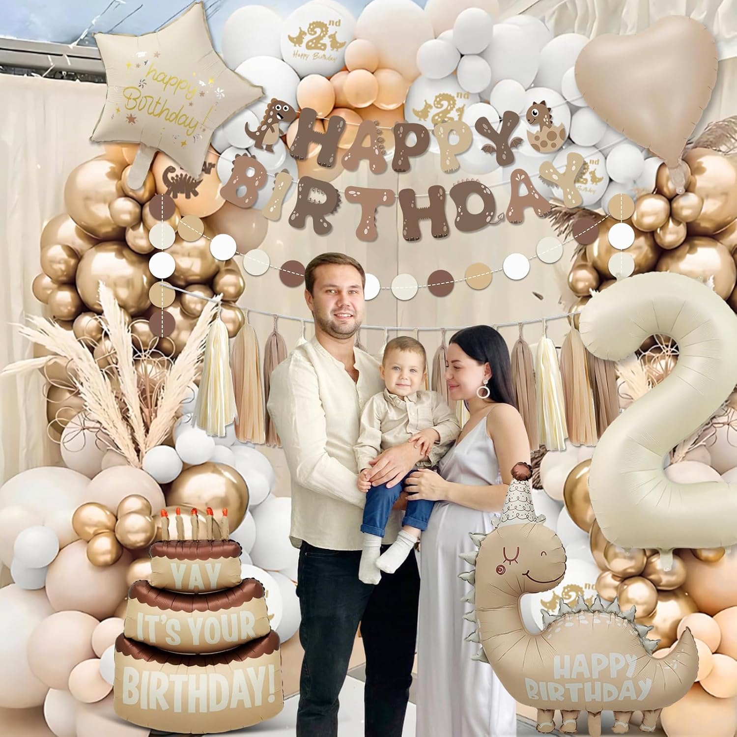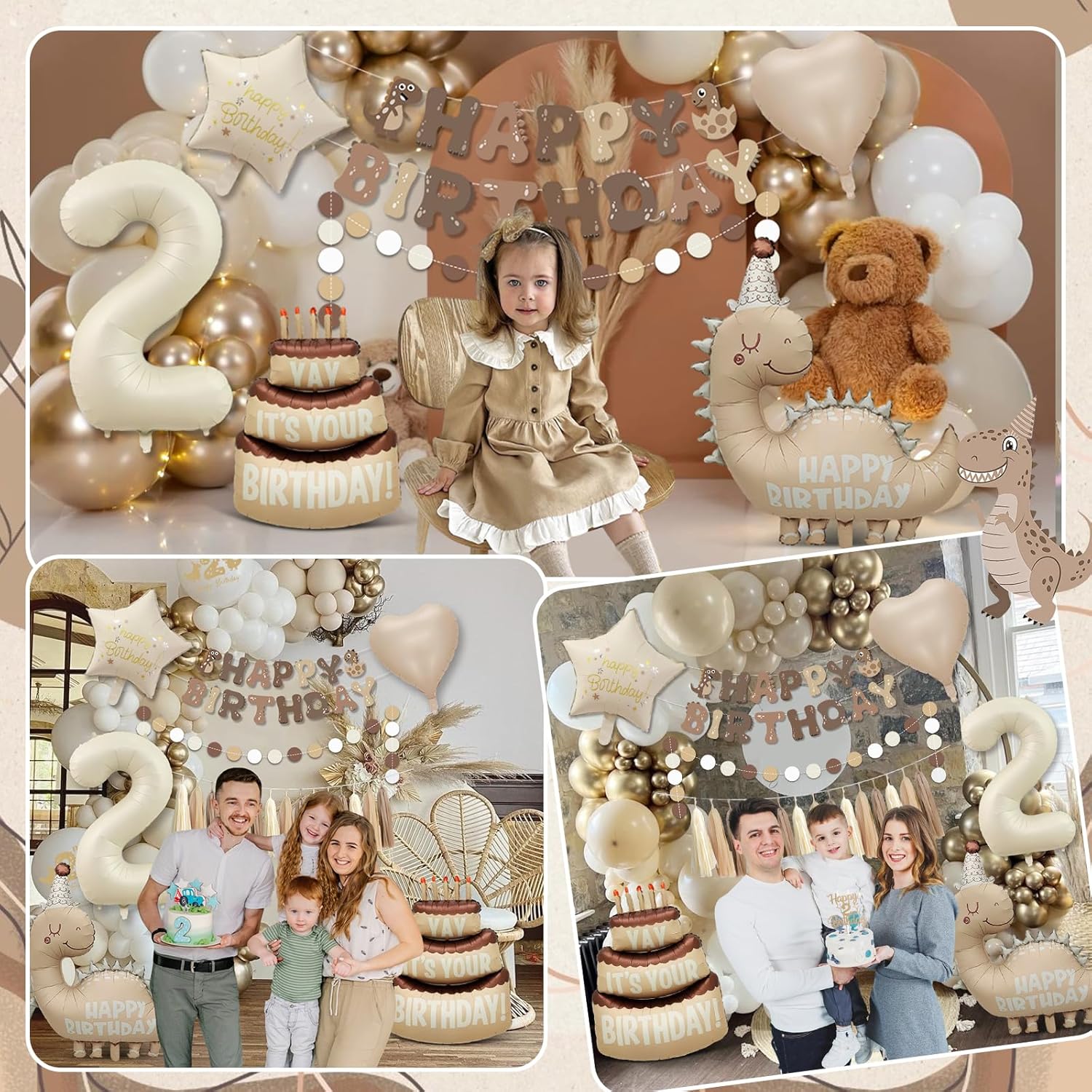 Palloncini Dinosauri Decorazioni Compleanno 2 Anni: 40 palloncini in lattice da 25 cm (5 albicocca, 5 bianchi, 10 bianco sabbia, 10 oro cromato, 5 stampa albicocca, 5 stampa bianca), 5 palloncini con paillettes oro metallizzato da 30 cm, 3 nappe di carta (beige, kaki, caffè), palloncino numero 2, palloncino dell'amore, palloncino torta , palloncino stella, palloncino dinosauro, striscione di buon compleanno, striscione cerchio, topper per torta, nastro, catena di palloncini, punti di colla. Decorazioni Compleanno 2 Anni Bimba Bimbo in Materiali Sicuri: le decorazioni per il secondo compleanno di bambini e bambine sono realizzate in lattice naturale e lamina sicuri, resistenti, non facili da esplodere e atossici. I palloncini in lattice hanno un leggero odore, ma non preoccuparti, sono innocui e puoi usarli in tutta sicurezza. Dinosauri Festa Decorazioni Ragazza Ragazzi 2 Anni: include uno striscione di buon compleanno a tema dinosauri, palloncini a forma di dinosauro (80*77 cm/31,5*30,3 pollici), palloncini con il numero 2 (32 pollici), palloncini torta (102,5*63 cm/40,4*24,8 pollici), palloncini a forma di cuore da 18 pollici e palloncini a forma di stella da 18 pollici, rendere la decorazione complessiva più infantile e unica, che regalerà al tuo bambino una festa di compleanno da sogno e indimenticabile. Albicocca Oro Addobbi Compleanno: questo palloncino è perfetto per la decorazione del secondo compleanno del tuo bambino. La combinazione di albicocca, sabbia, bianco e oro rende la festa più sognante e affascinante. I palloncini a forma di dinosauro e stella aggiungeranno un'atmosfera adorabile e vibrante alla tua festa, mentre i palloncini a forma di torta di compleanno renderanno l'atmosfera più intensa, lasciando a te e al tuo bambino ricordi più belli. Facile da Montare: le decorazioni per il secondo compleanno sono dotate di catene e nastri per palloncini e puoi facilmente creare ghirlande di palloncini. Tutti i palloncini in alluminio sono gonfiabili e si consiglia di gonfiarli un'ora prima dell'inizio della festa, senza superare l'85%.