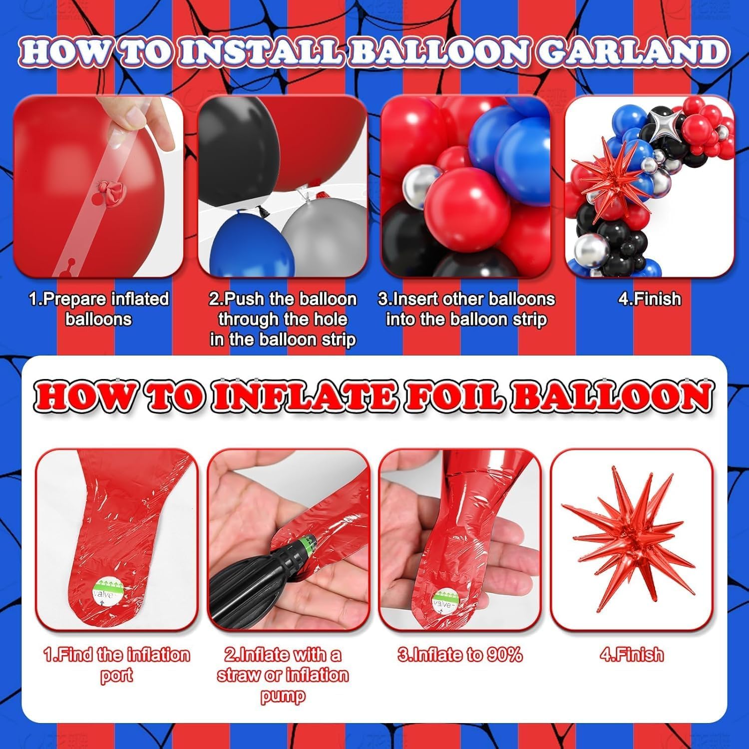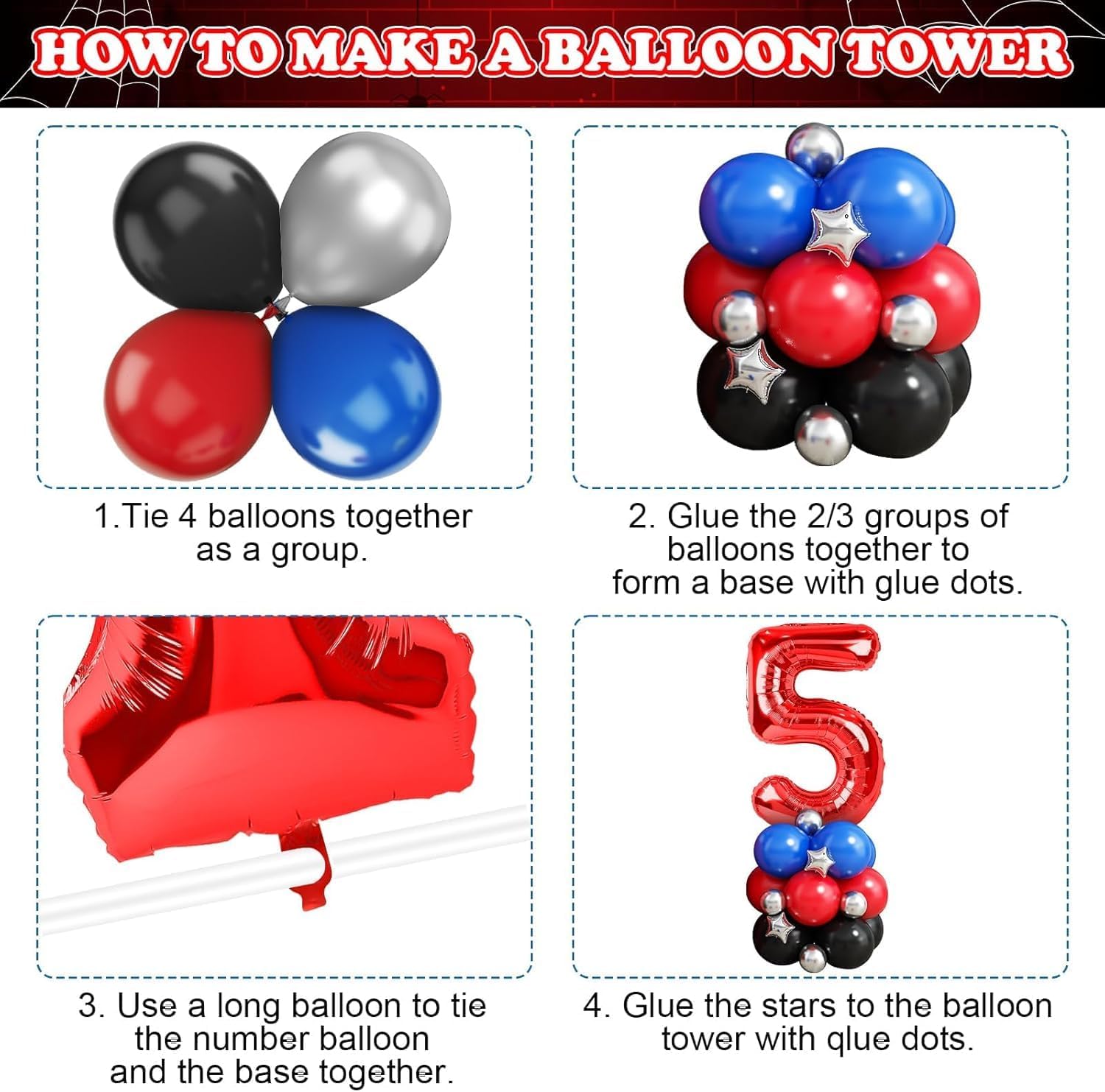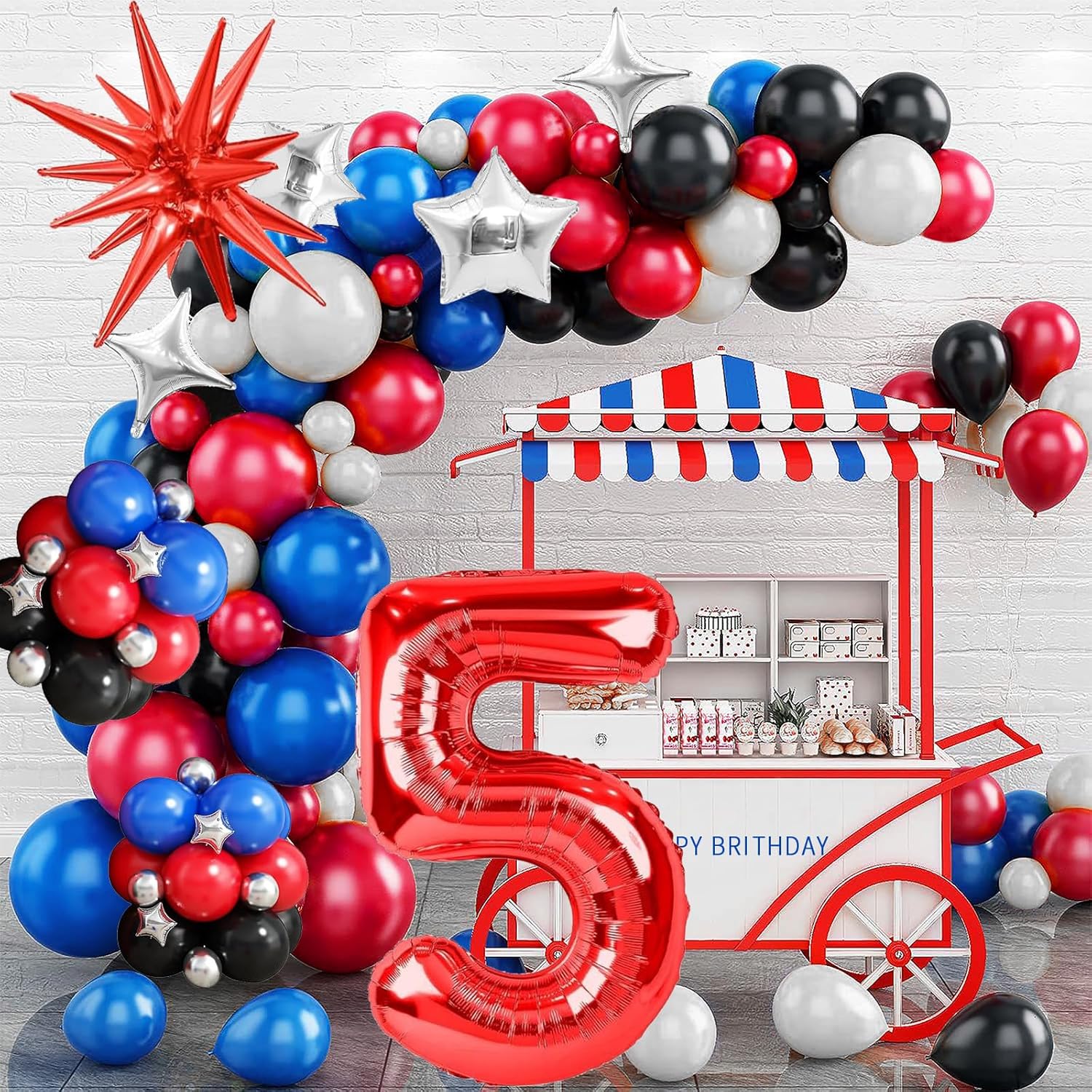 🕷 Palloncini 5 Anni Compleanno Rosso: include un palloncino con il numero 5, un Stella Esplosiva Palloncino in Foil, quattro palloncini a forma di stella, palloncini in lattice neri (18 pollici * 1, 10 pollici * 15 e 5 pollici * 8), palloncini in lattice blu (10 pollici * 15 e 5 pollici * 8), palloncini in lattice rossi (10 pollici * 15 e 5 pollici * 8), palloncini argento metallizzato (10 pollici * 10 e 5 pollici * 8), e un palloncino lungo bianco. 🕸 Alta Qualità: realizzati con materiali di alta qualità, i Kit Arco Palloncini Nero Rosso Blu sono resistenti, atossici e sicuri. Non scoppiano né si sgonfiano facilmente, mantengono la loro forma a lungo e sono adatti a bambini e animali domestici. Questi palloncini luminosi e resistenti aggiungeranno più divertimento ed entusiasmo alla tua festa. Riutilizzabili. 🕷 Design Unico: il Kit Arco Palloncini Nero Rosso Blu crea un look visivamente accattivante e vivace. Adatto sia per occasioni formali che informali, renderà sicuramente la tua festa unica. 🕸 Facile da Usare: i Kit Arco Palloncini Nero Rosso Blu possono essere gonfiati ad aria o elio. Si consiglia l'uso di una pompa ad aria. Il nastro incluso consente di disporre facilmente i palloncini in gruppi, archi o fondali senza passaggi complicati. Anche le composizioni preliminari possono essere create rapidamente, ispirando la tua creatività e permettendoti di divertirti con le decorazioni fai da te. 🕷 Ampia Applicazione: il Kit Arco Palloncini Nero Rosso Blu è perfetto per feste a tema, compleanni per bambini, baby shower, feste di laurea, matrimoni e feste di fidanzamento, festival e vari eventi al chiuso e all'aperto. Può anche essere facilmente appeso ad alberi, porte, pareti, pilastri, tavoli da pranzo, finestre e altro ancora.