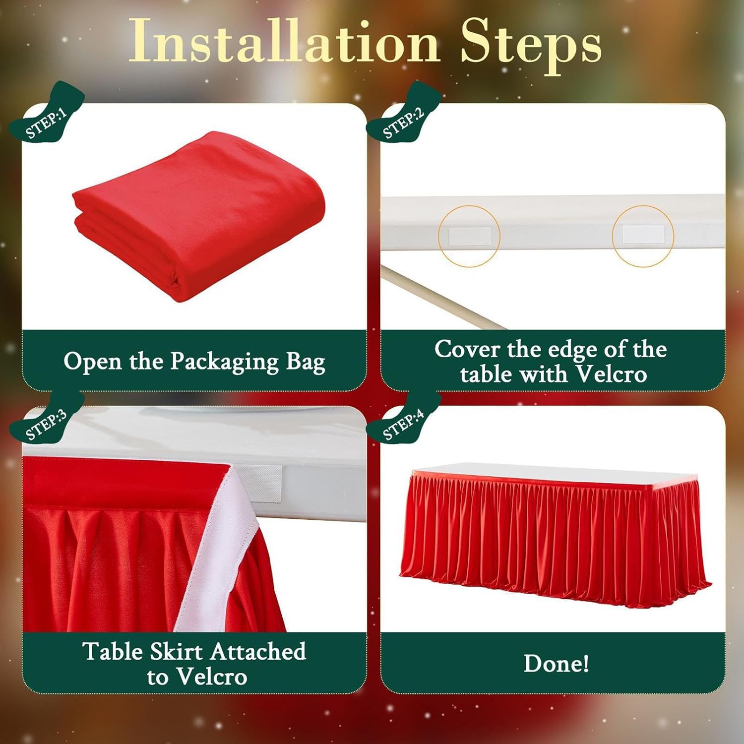 Assemblaggio rapido: questo nastro decorativo per tavolo combina una forte striscia adesiva con un pratico meccanismo a clip per un montaggio estremamente rapido, che consente di risparmiare tempo prezioso durante la preparazione di feste o fiere e garantisce immediatamente un aspetto professionale - senza sforzo Adattabilità flessibile: la gonna da tavolo supporta il collegamento di più elementi per tavoli lunghi grazie al suo design variabile, offre una maneggevolezza pratica e un aspetto elegante in occasione di gala o riunioni dove la presentazione perfetta è la priorità Robusto grembiule da tavolo: questo grembiule da tavolo è realizzato in poliestere di alta qualità con struttura raffinata per prestazioni eccezionali, mantiene le scrivanie pulite ed eleganti in qualsiasi impostazione, mentre il sistema di fissaggio con nastro adesivo e clip garantisce installazione e stabilità senza sforzo, ideali per uffici o uffici domestici. Tessuto di facile manutenzione: ideale per matrimoni, banchetti o feste: la gonna da tavolo dal sofisticato design a pieghe e la semplice cura dei materiali garantisce una facile maneggevolezza e un aspetto professionale per ogni occasione. Utilizzo versatile: questa decorazione da tavolo colpisce per il suo design universale per tavoli rettangolari e rotondi e per il rivestimento senza cuciture per un aspetto raffinato in occasione di matrimoni, feste ed eventi aziendali. Le versatili opzioni di stile migliorano l'estetica di qualsiasi evento e forniscono soluzioni flessibili di decorazione della tavola per le occasioni festive con stili personalizzabili per adattarsi alle impostazioni individuali