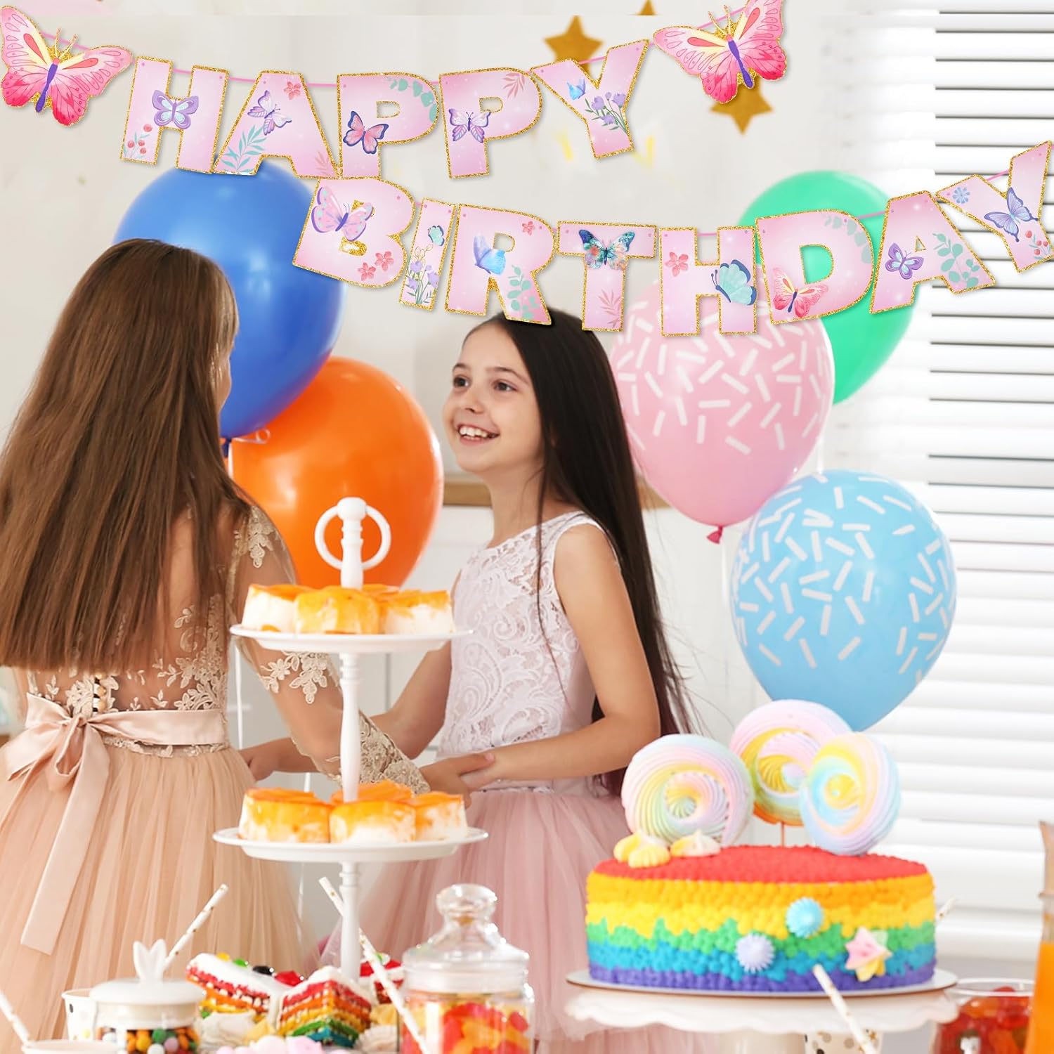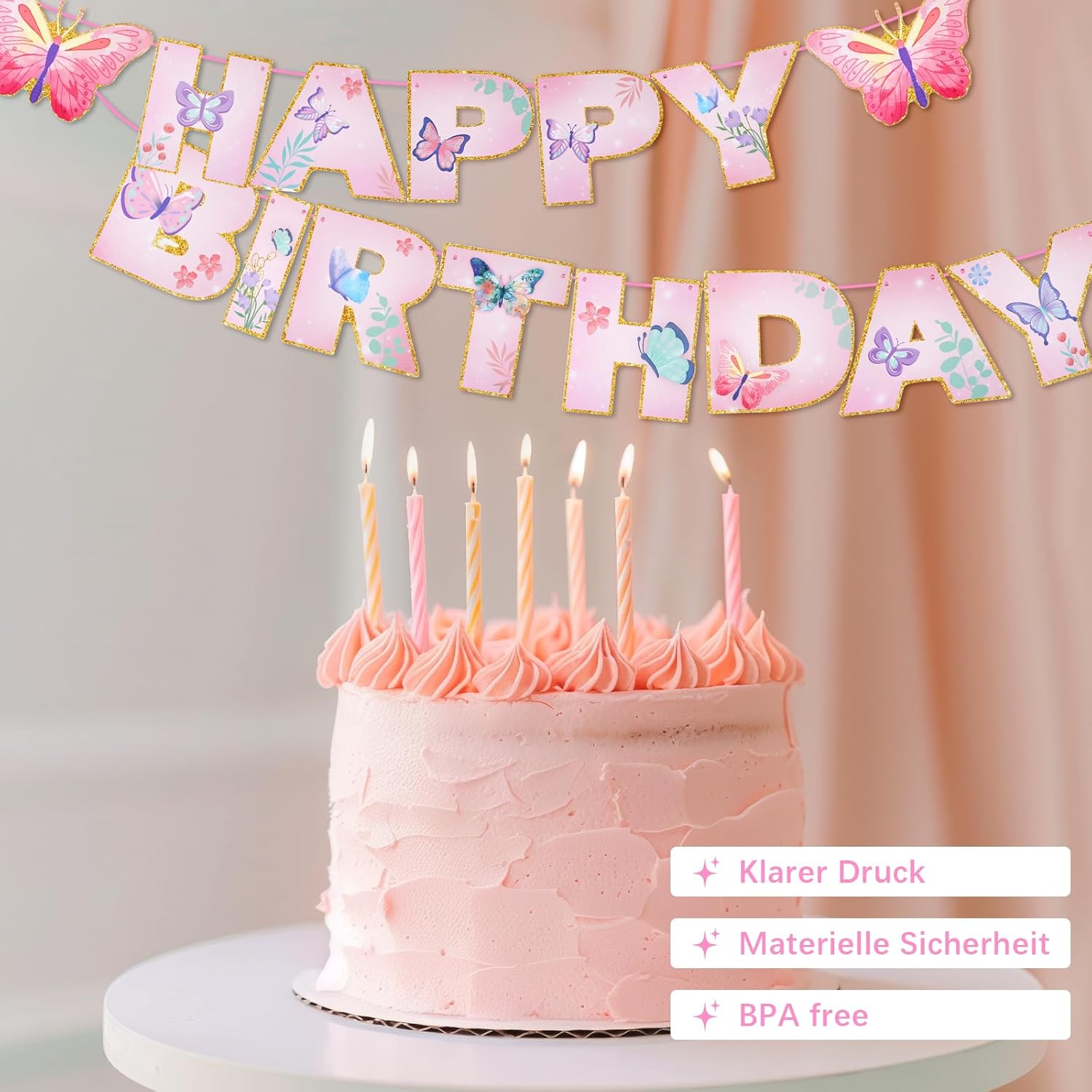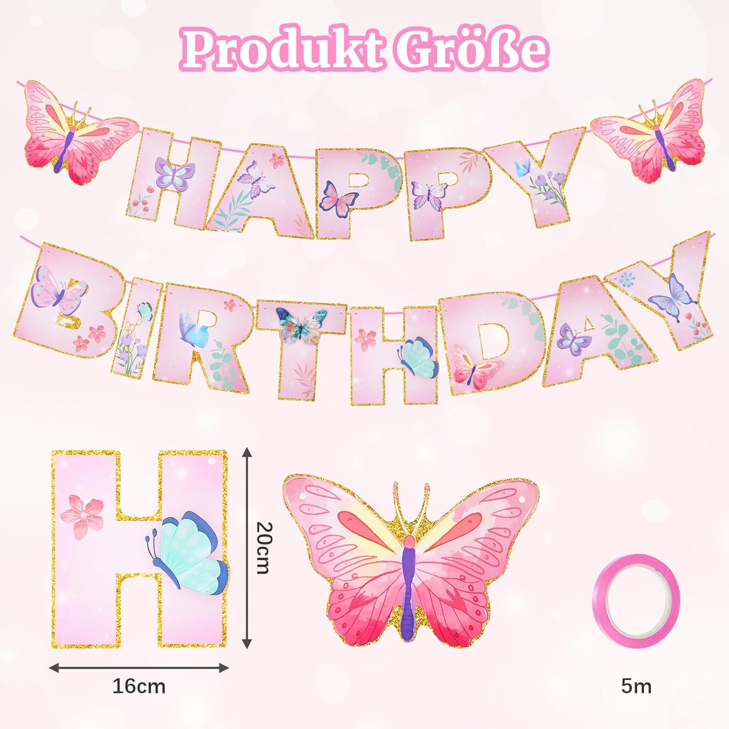 [Decorazioni di compleanno per bambine] Decora la tua festa con i nostri striscioni decorativi per compleanno per creare un'atmosfera unica che i tuoi ospiti non dimenticheranno mai [ALTA QUALITÀ] Le ghirlande decorative di compleanno a forma di farfalla sono realizzate in cartoncino bifacciale di alta qualità, accuratamente lavorato. Gli striscioni decorativi per compleanno sono dai colori vivaci e dalla forma particolare per garantire durata e impeccabilità in ogni dettaglio [Design unico] Le decorazioni di buon compleanno sono progettate in modo unico con motivi di grande effetto come farfalle e fiori. I motivi vivaci e i colori vivaci di queste decorazioni di compleanno possono creare un'atmosfera festosa per una festa a tema o un compleanno per bambini [MULTIUSO] Questa ghirlanda decorativa di compleanno a forma di farfalla è perfetta per decorare feste di compleanno, feste di famiglia, riunioni di famiglia, picnic, feste di Natale, catering ed eventi all'aperto. Questa è una decorazione di compleanno versatile e riutilizzabile [OTTIMA SCELTA] Le decorazioni di compleanno per donne sono perfette per decorare compleanni per bambini come Mondiali, eventi scolastici, attività all'aperto e altre occasioni. Le ghirlande di compleanno a forma di farfalla sono anche un regalo unico per amici e conoscenti