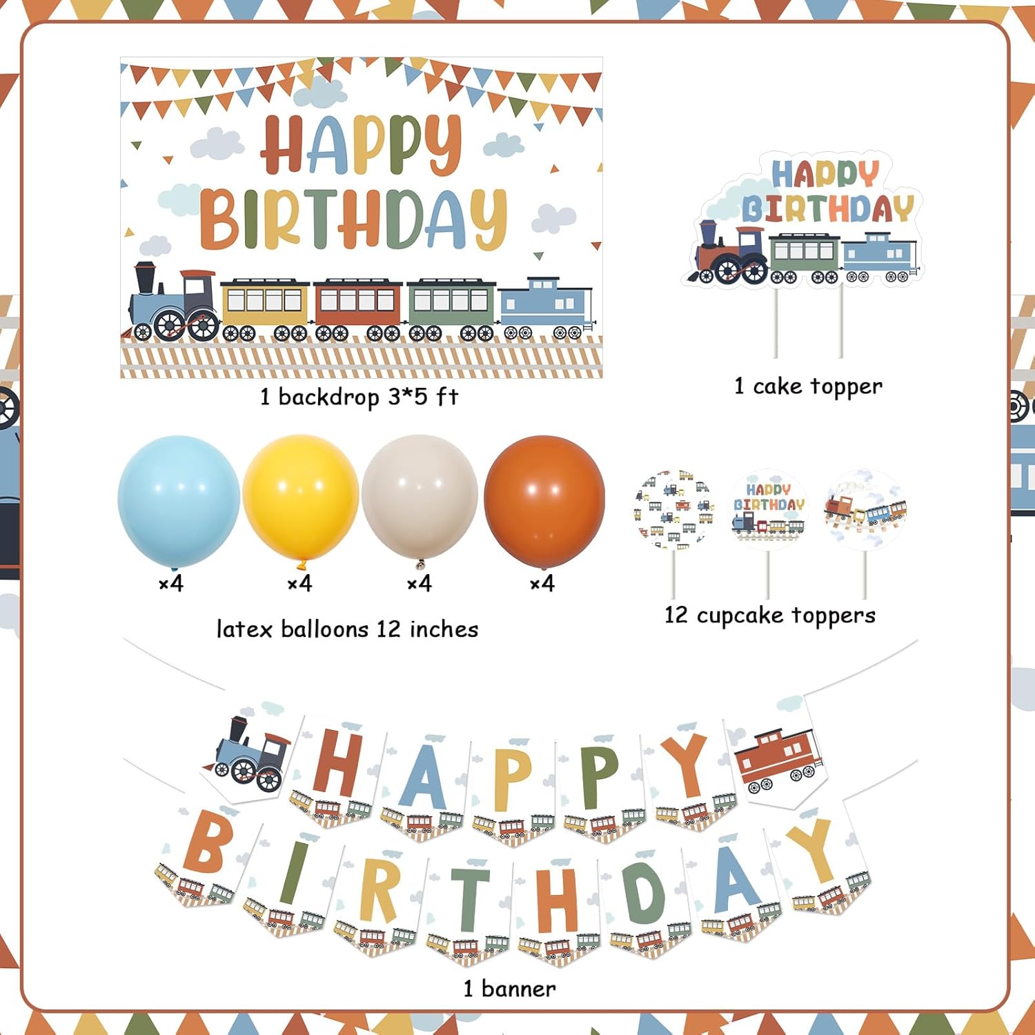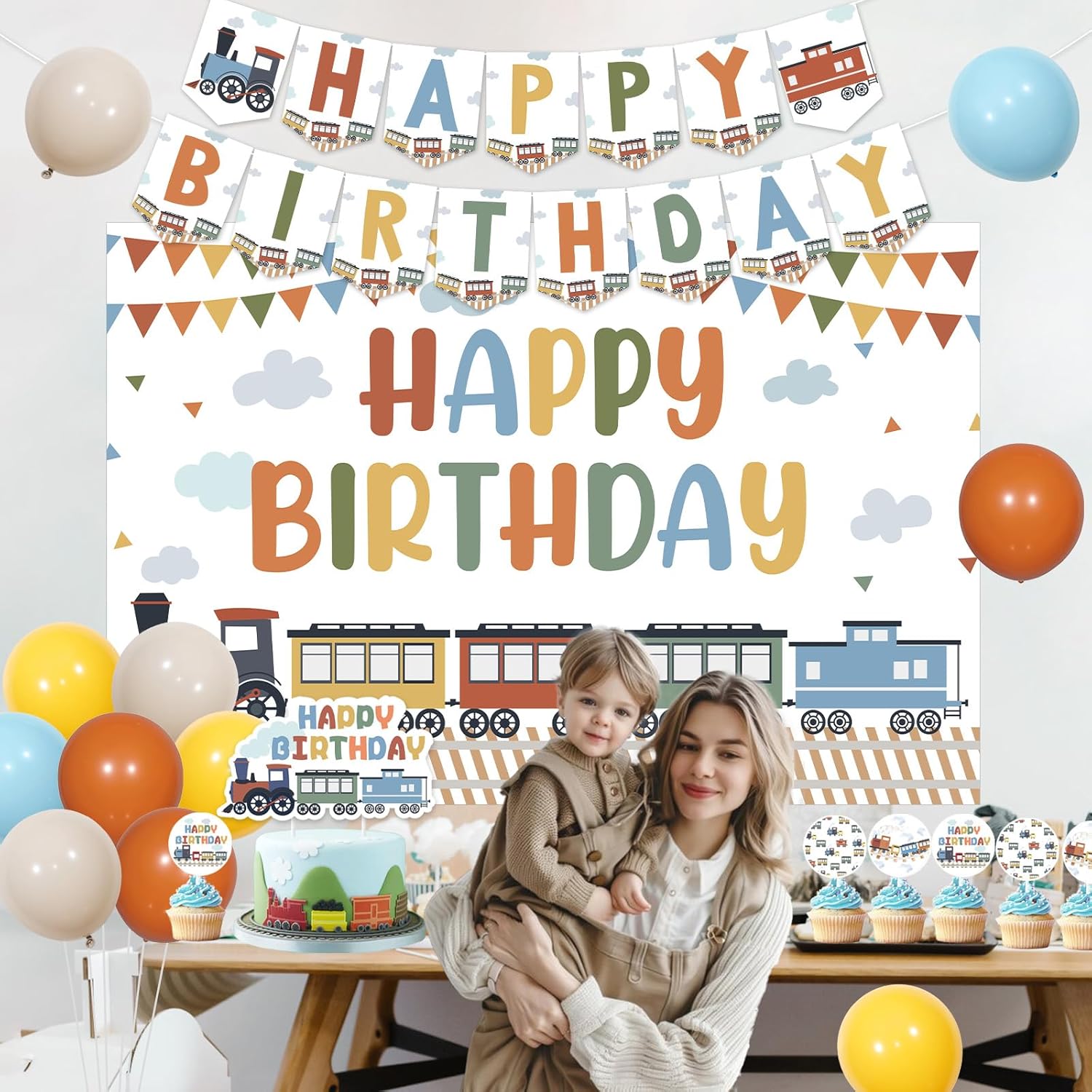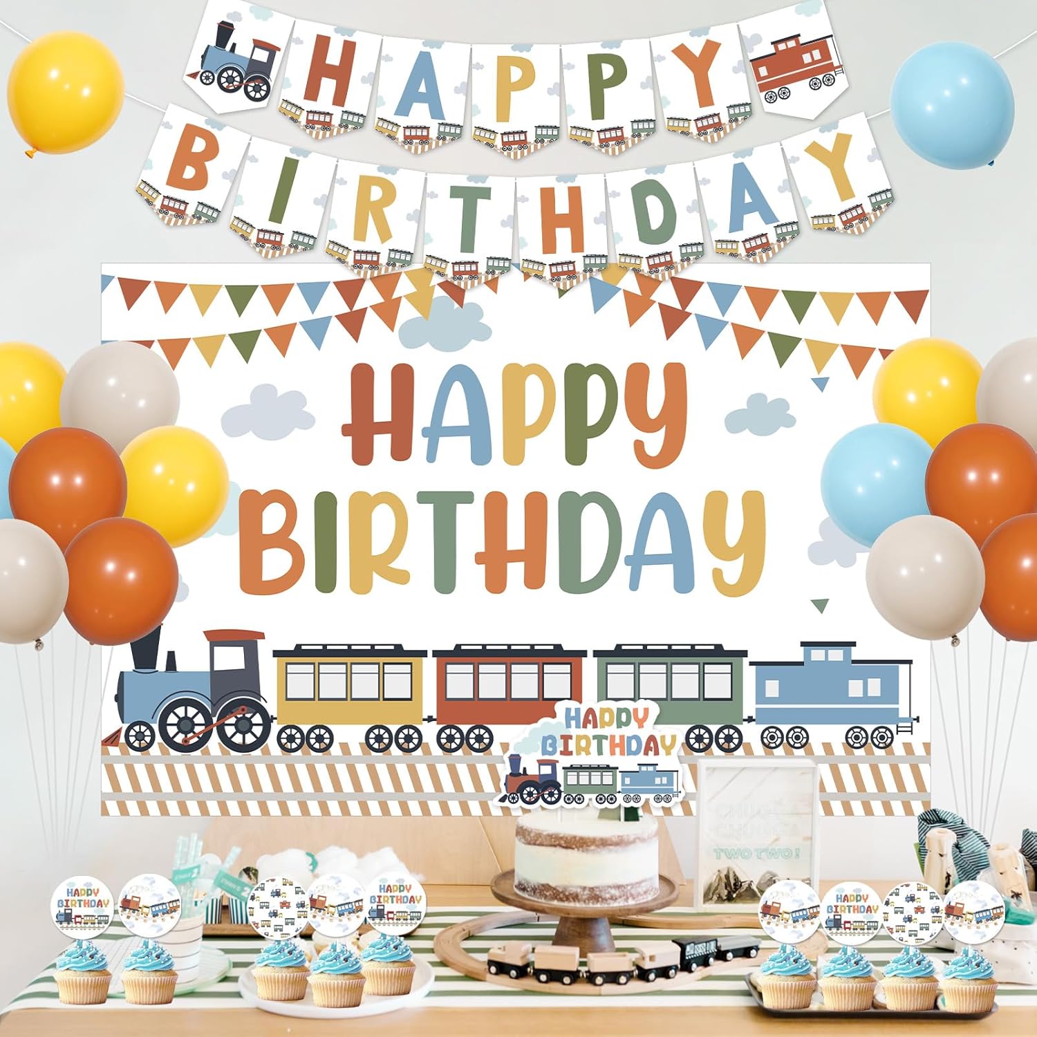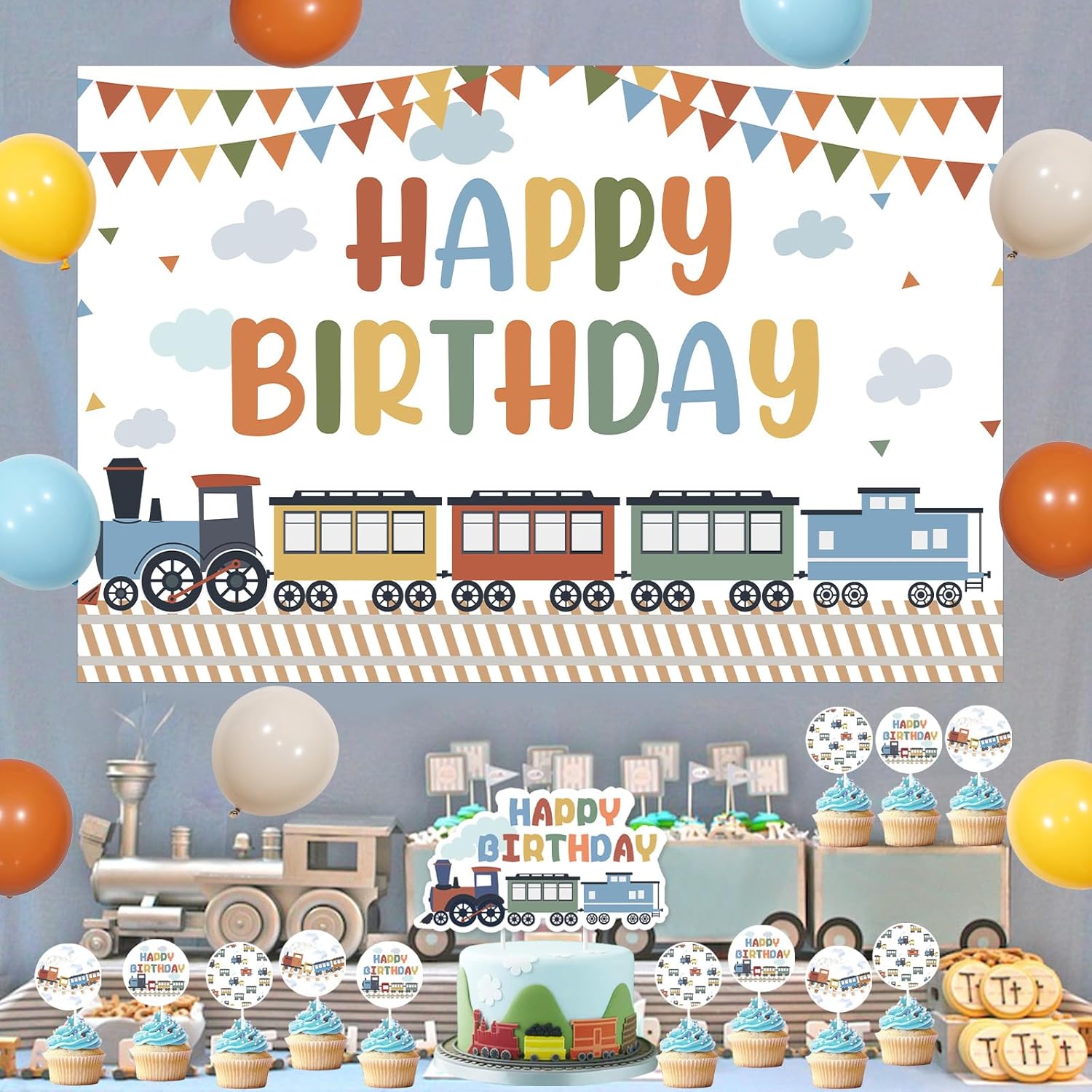 Il pacchetto include: Questo pacchetto include 1 fondale con treno di buon compleanno da 9,1 x 1,5 m, 1 striscione di buon compleanno, 1 topper per torta di compleanno con treno a vapore, 12 topper per cupcake con treno di compleanno, palloncini in lattice da 40,6 x 30,5 cm, 1 punto adesivo, 2 nastri bianchi di lunghezza totale x 20 m. Facile da usare: abbiamo già assemblato lo striscione di buon compleanno, i toppers per torte e cupcake, puoi usarli direttamente. Puoi utilizzare i punti adesivi per attaccare lo sfondo del treno a vapore ovunque o appenderlo su supporti per utilizzarlo. I palloncini in lattice possono essere gonfiati con elio o aria. Se gonfiati con elio, possono galleggiare nell'aria. Migliora l'atmosfera della tua festa: questo set di decorazioni per il compleanno del treno è molto adatto per feste di compleanno a tema compleanno, trasporti, passaggi a livello, traffico, veicoli, migliorando l'atmosfera attraente della tua festa. Design colorato e retrò: abbiamo progettato molti tipi di treni a vapore colorati vecchio stile per questo set di decorazioni per il compleanno del treno, corrono sui binari ed emettono nuvole di vapore, molto colorati e pieni di stile retrò. Usi multipli: puoi attaccare o appendere lo sfondo e lo striscione Happy Birthday su pareti, finestre, porte di garage, alberi o ovunque. Puoi inserire la decorazione della torta di compleanno e dei cupcake su torte, dolci, pane, vasi o ovunque. E puoi posizionare i palloncini sul pavimento, sul prato, sul tavolo oppure puoi anche legarli a un albero, a un palo o ovunque, usali liberamente come preferisci.