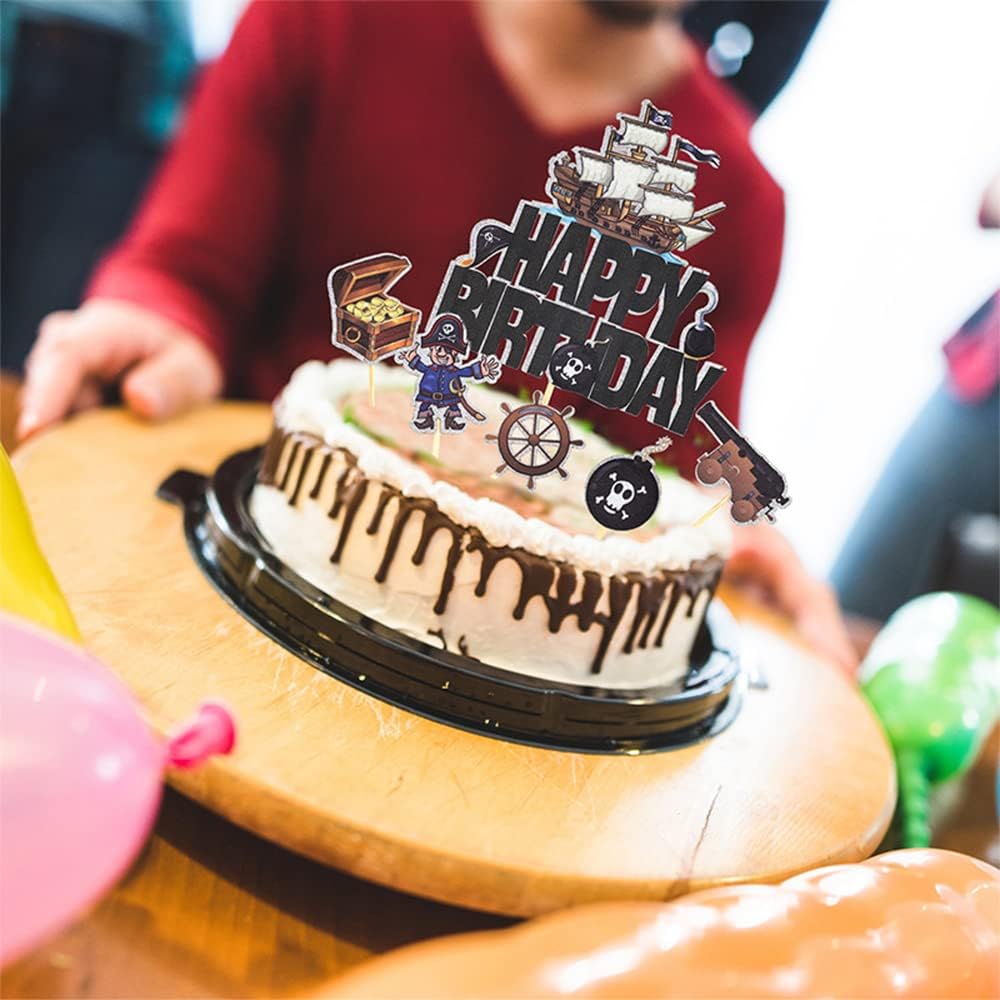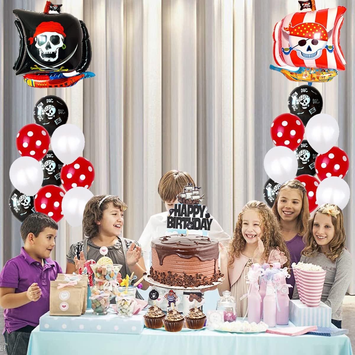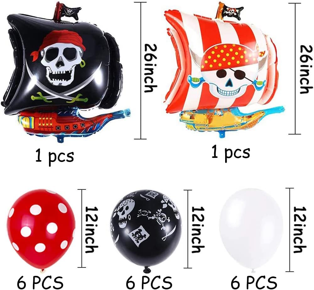 🎈【Set da cinque pezzi】18 palloncini in lattice, 2 palloncini con nave pirata, 12 toppers per cupcake, 1 topper per torta. Il pacchetto completo di decorazioni per feste può essere decorato in modo particolarmente bello ed elegante, regalando ai vostri bambini una meravigliosa esperienza di compleanno e sorrisi felici. 🎈【Alta qualità】Il palloncino è realizzato in lattice, resistente e durevole e supporta il riempimento di elio, che può far volare il palloncino. Il cake topper e lo striscione sono realizzati in robusto cartone rivestito, che può durare un'intera giornata o anche di più, molto adatto per la decorazione delle feste. 🎈【Facile da usare】Prenditi un momento per stringere le decorazioni pendenti e gonfiare i palloncini per decorare la tua festa. Leggero e facile da appendere al muro, sopra il tavolo, nel corridoio, sull'albero, ecc. 🎈【Versatilità】Il nostro set di forniture per feste è perfetto per feste di compleanno per bambini, feste a tema pirati, feste di carnevale, Natale, feste e altre celebrazioni o festività speciali. 🎈【Design raffinato】Pirati dei Caraibi dovrebbe accontentare tutti. La bellissima nave pirata è meravigliosa per decorare le feste di compleanno. Rendilo un momento memorabile per i tuoi figli, te stesso, la tua famiglia e i tuoi amici. Divertitevi e godetevi l'esperienza.