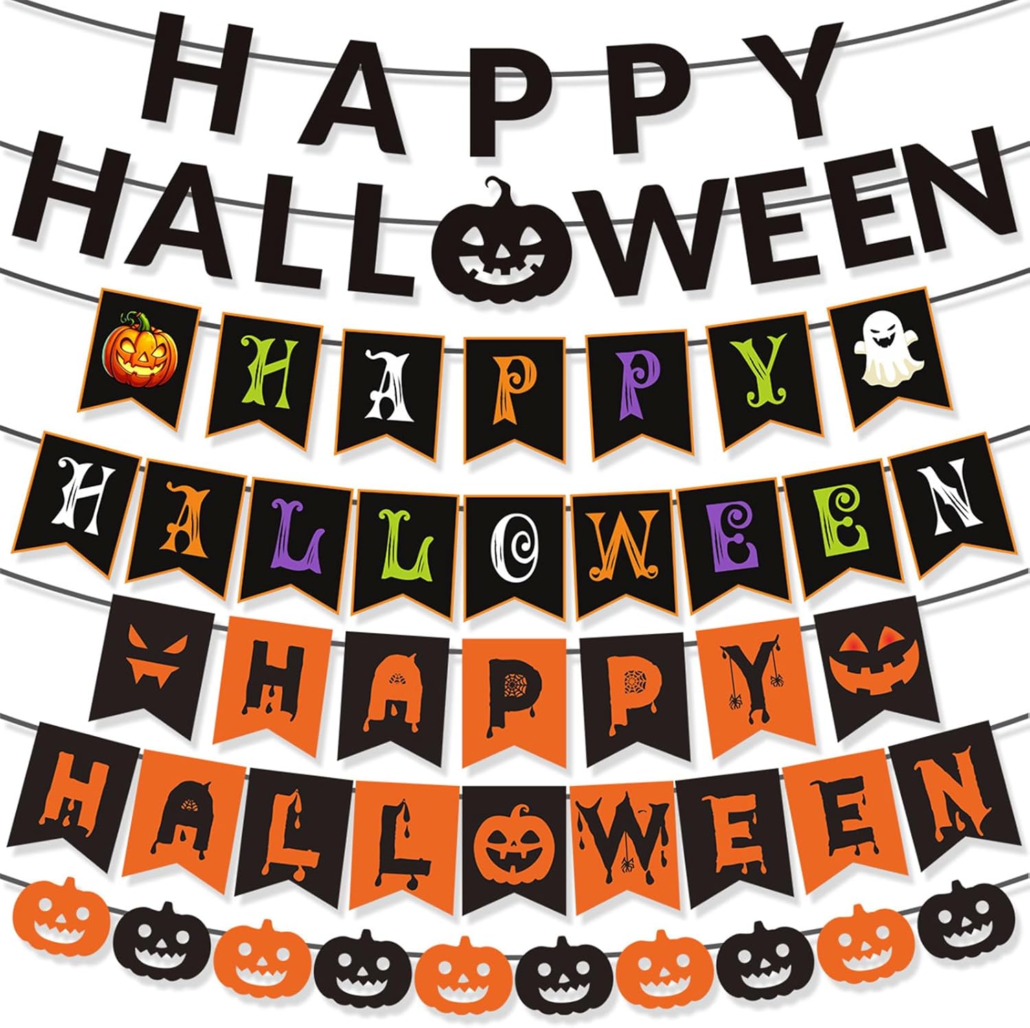 Materiali: ghirlanda di Halloween realizzata in carta, leggera e facile da usare. Naturalmente, la ghirlanda di Halloween è anche un ottimo sfondo fotografico per scattare foto memorabili con la tua adorabile famiglia e i tuoi amici. Multifunzione: gli striscioni di Halloween possono essere appesi al muro, alla finestra, alla porta in classe, in ufficio o a casa e ovunque tu voglia. Ottimi accessori decorativi per feste a tema Halloween Set di striscioni di Halloween: questi striscioni Happy Halloween sono stampati con lettere, ottimi per aggiungere una forte atmosfera di festa, fantastici ornamenti per feste a tema Halloween Facile da usare, viene fornito con gli striscioni Happy e un infila corda, che ti aiuta ad assemblare gli striscioni rapidamente, è molto facile da finire. Ampi usi: gli striscioni per feste di Halloween sono una decorazione per le feste di Halloween, puoi appendere gli striscioni al soffitto, al muro, alla finestra, ai caminetti, ai rami degli alberi, in soggiorno, in giardino, ecc.