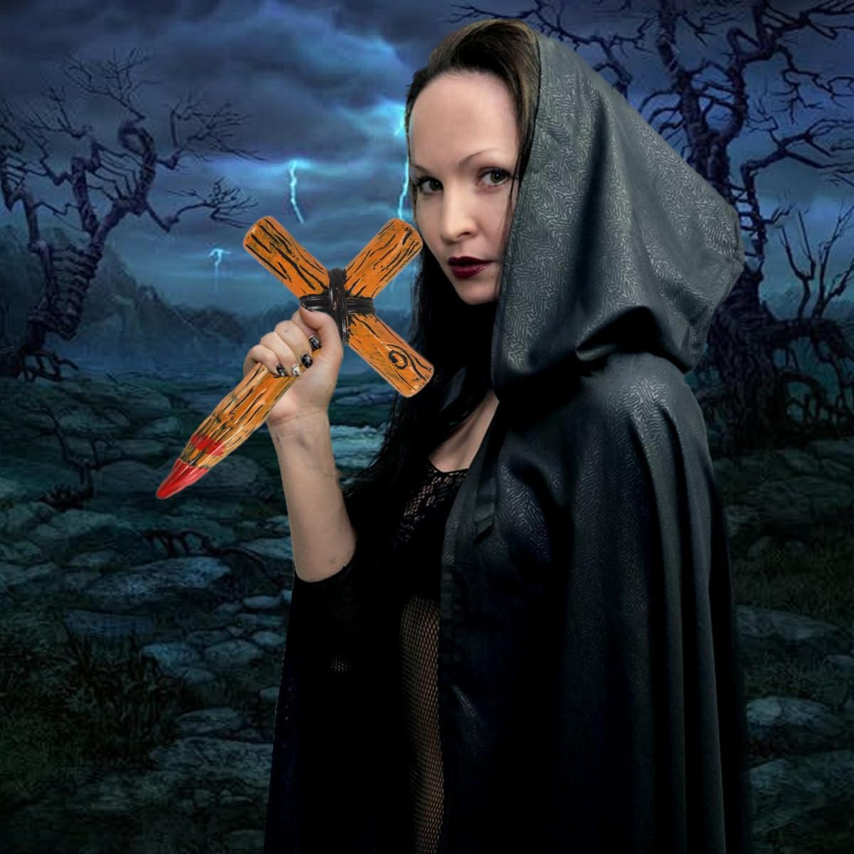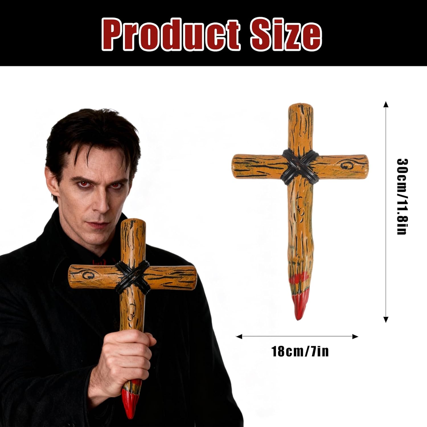 Palo a Croce Macchiato di Sangue: Riceverai un palo a croce macchiato di sangue, l'accessorio perfetto per terrificanti costumi di Halloween Design Raffinato: Realizzato in stile vintage con macchie di sangue, questo palo a croce emana un'aura distintamente sanguinaria e sinistra, rendendolo ideale per qualsiasi costume di Halloween Qualità Superiore: Realizzata in plastica di alta qualità, questa croce è robusta, atossica e ha una superficie liscia per un uso prolungato e ripetuto Decorazione Horror: Oltre a fungere da arma di Halloween, la croce insanguinata può essere utilizzata anche come decorazione da parete o da tavolo, valorizzando le tue decorazioni festive Accessori Ideali: Questi pali sono ottimi accessori di costume per feste a tema Halloween, perfetti per interpretare cacciatori di vampiri, esorcisti o eretici, aggiungendo un tocco di divertimento ai tuoi festeggiamenti