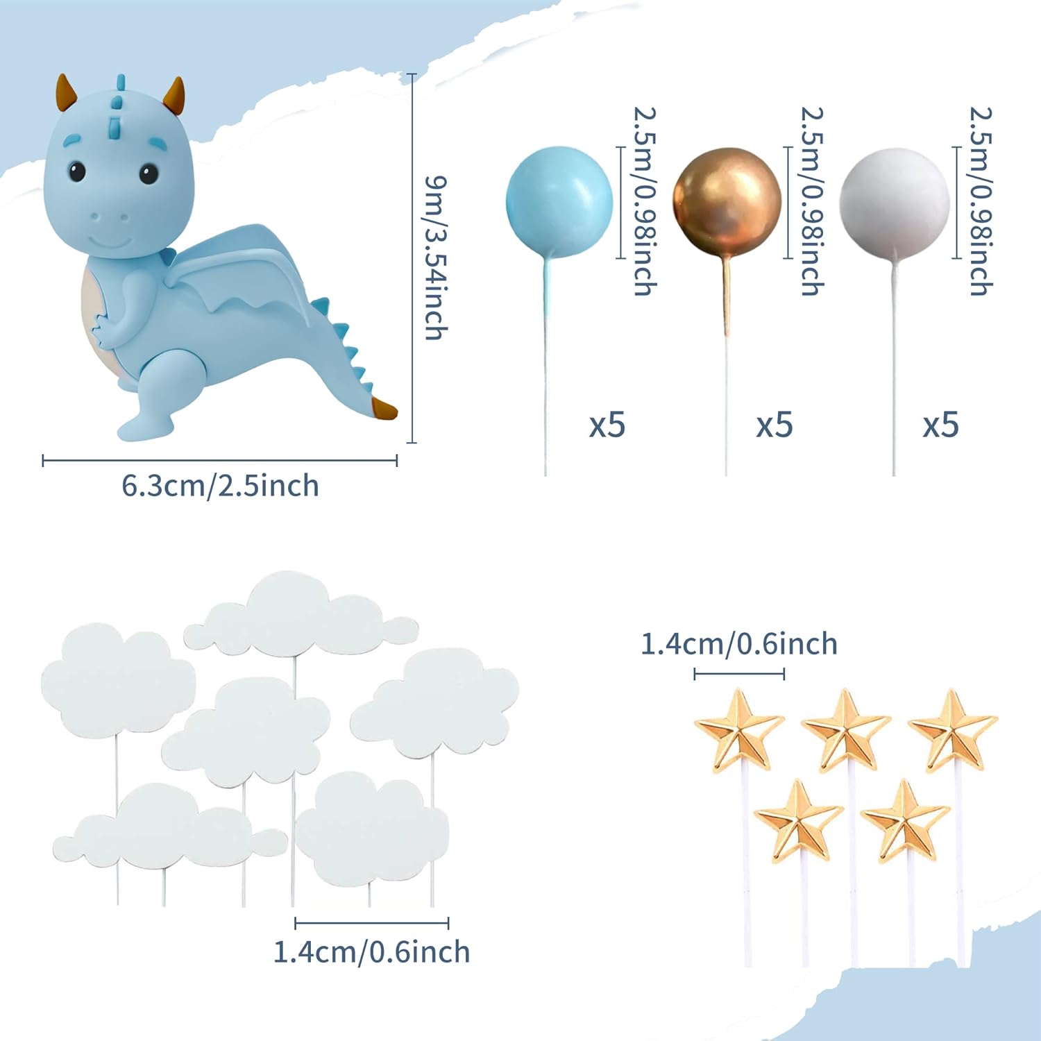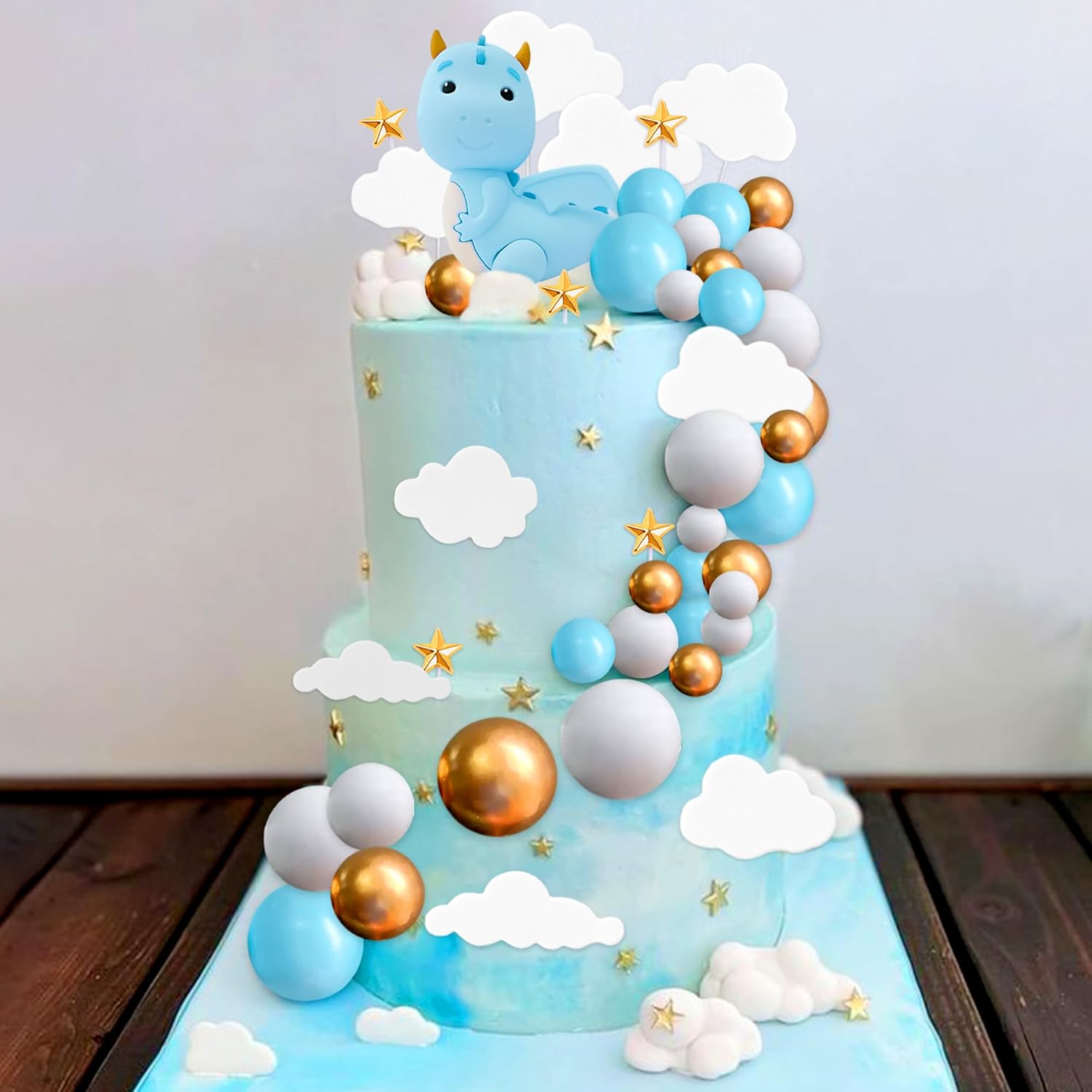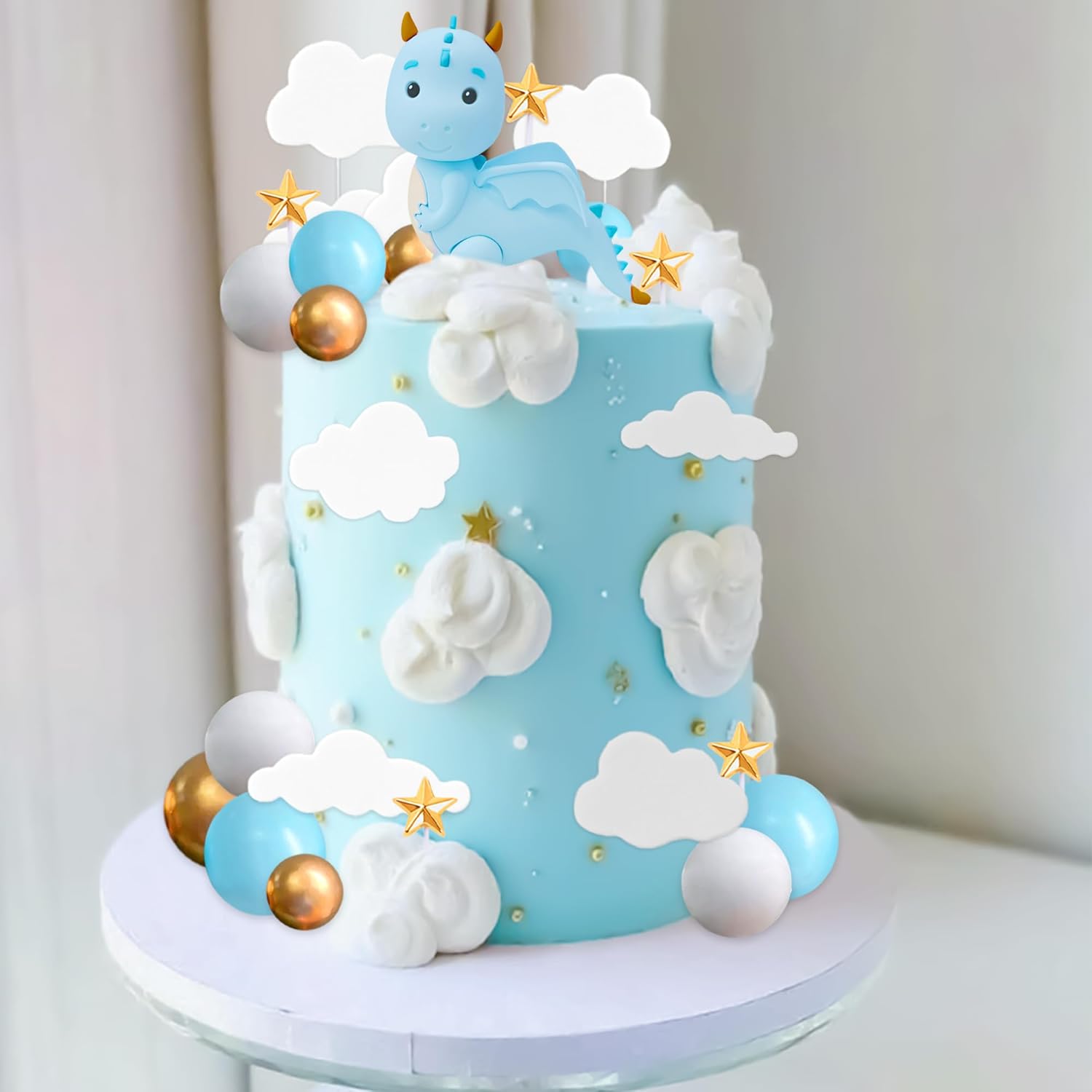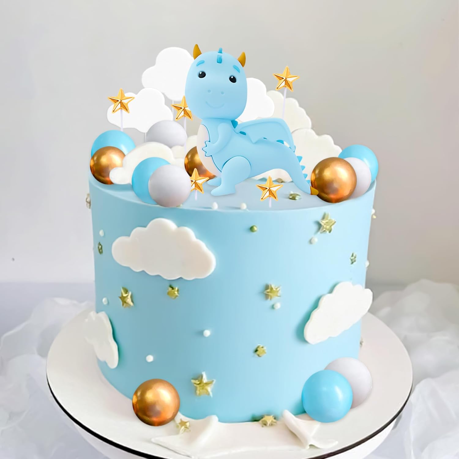 Ricevi: 1 X Blauer Drache Kuchendekoration, 15 X Kugeln, 6 X Wolken, 5 gamma di colori vivaci per stimolare l'immaginazione e la creatività dei bambini introducendoli nel mondo dei draghi
