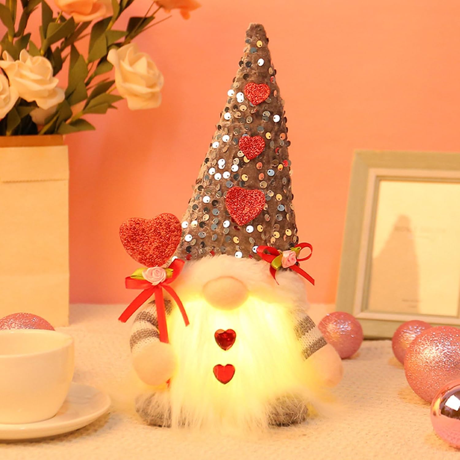 Rendi indimenticabili le tue celebrazioni di San Valentino con questa bambola. I suoi design unici e il suo effetto scintillante gli permettono di distinguersi dalla persona amata. Questa bambola per San Valentino è pensata per creare atmosfere calde. Posizionalo sulla scrivania o sul comodino per aggiungere fascino e calore al tuo spazio. Rendi memorabile il tuo San Valentino con questa bambola dell'amore. La sua luce soffusa lo rende un'aggiunta a qualsiasi celebrazione. Crea un'atmosfera calda con questa bambola di San Valentino. Le luci a LED integrate emettono una luce morbida e calda, aggiungendo romanticismo al tuo momento speciale. Realizzato con materiali, garantisce un uso duraturo. Festeggia San Valentino con questo ciondolo per bambola di San Valentino. Sia come decorazione da tavolo, aggiunge un tocco affascinante a qualsiasi ambiente