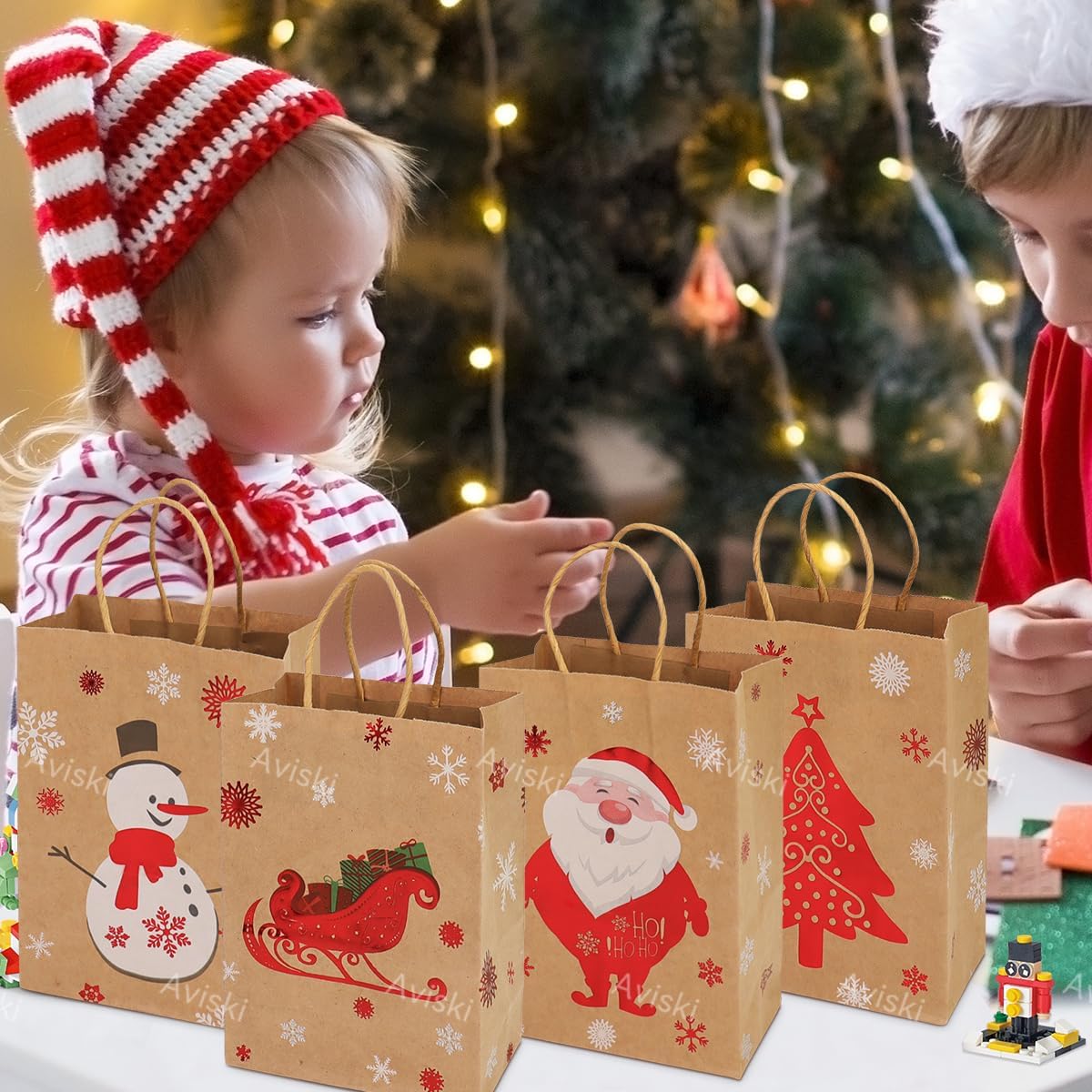 SACCHETTI REGALO KRAFT DI NATALE REALIZZATI CON MATERIALE DI QUALITÀ ADEGUATO - Realizzati in carta kraft di alta qualità, il manico è fissato con colla di alta qualità. I sacchetti di carta natalizi sono abbastanza robusti e durevoli e possono essere utilizzati per trasportare regali per ridurre il rischio di strappi. 100% riciclabili, riutilizzabili ed ecologici, puoi sostituire i tuoi sacchetti di plastica puzzolenti con questi sacchetti di carta kraft natalizi super ecologici. DIMENSIONI E CONTENUTO DELLA CONFEZIONE PERFETTE - Ogni sacchetto regalo di Natale in carta kraft misura 21 x 15 x 8 cm e ha un manico di 7-8 cm. Sono di medie dimensioni e possono contenere oggetti di medie dimensioni, come caramelle, biscotti, cioccolatini, cartoline, giocattoli, ecc. Molto adatti per confezioni regalo di Natale. Questo set contiene 24 sacchetti regalo in carta kraft, 6 diversi design classici natalizi e ogni design è composto da 2 pezzi. VARI MODELLI ACCATTIVANTI - I sacchetti per le feste di Natale, i colori vivaci e i motivi natalizi li rendono accattivanti, molto adatti per confezioni regalo e contenitori di caramelle, abbastanza squisiti per creare scatole regalo che piacciono a bambine e bambini, o bellissime decorazioni per feste a tema natalizio in vacanza. IDEALI PER CONFEZIONARE REGALO DURANTE LE VACANZE DI NATALE - Queste borse da festa sono adatte per la maggior parte delle confezioni regalo. Puoi contenere qualsiasi regalo per Natale o per i bambini. Leggero, facile da trasportare, la struttura robusta può sopportare carichi pesanti, non facile da rompere, durevole. OTTIMO SERVIZIO CLIENTI - Le nostre borse da festa sono adatte ad adulti, ragazze e ragazzi. In caso di problemi, contattaci liberamente. Faremo del nostro meglio per renderti soddisfatto.