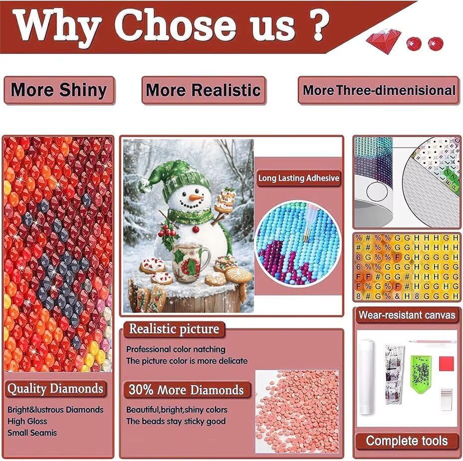 Decorazioni Natalizie Diamond Painting Kit Completo tazze, Diamond Painting Adulti Umano della neve, Inverno DIY Diamantini Crystal Art Bambini, Pittura Diamante Passatempo Per Adulti 30x40cm u-18