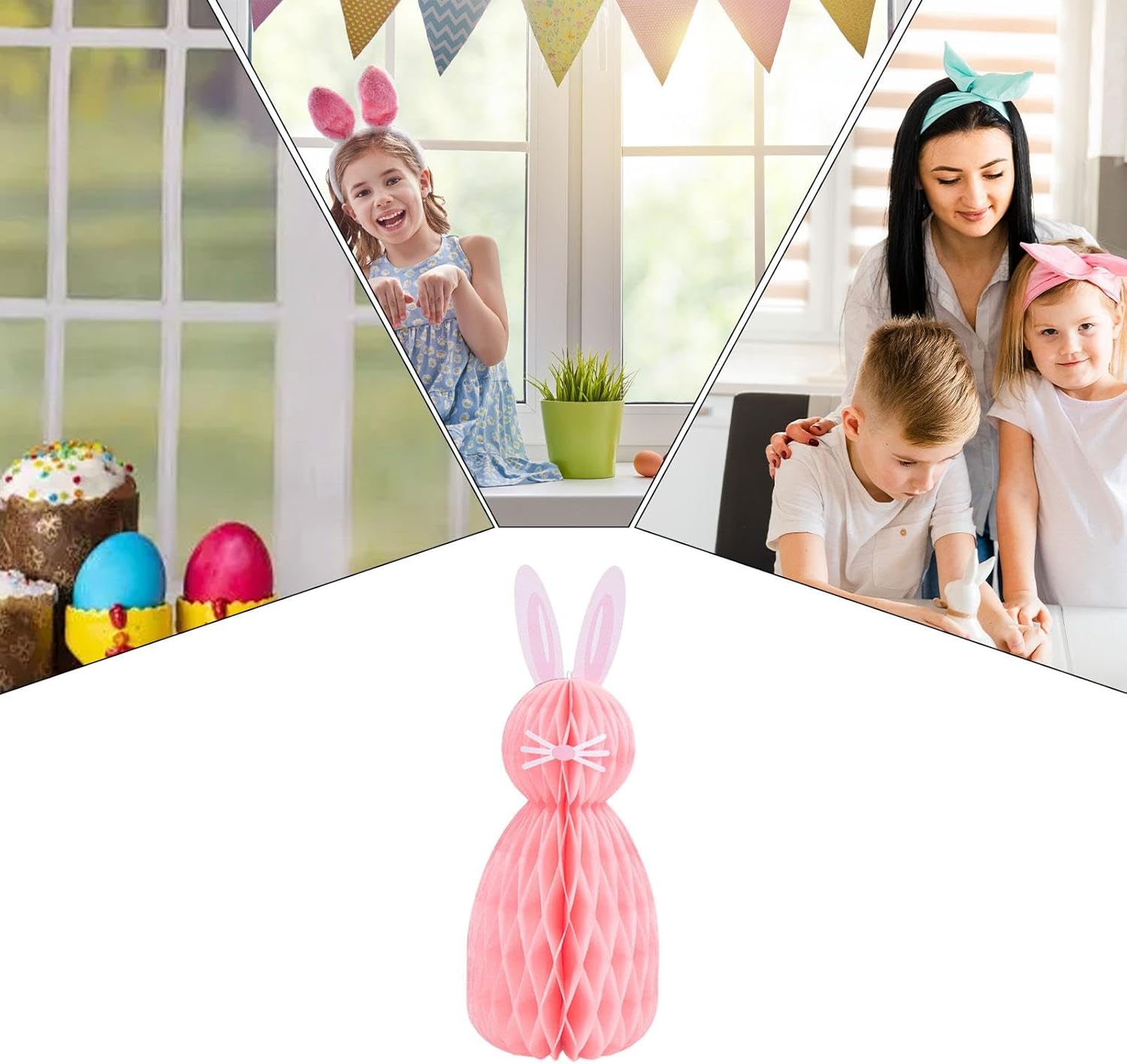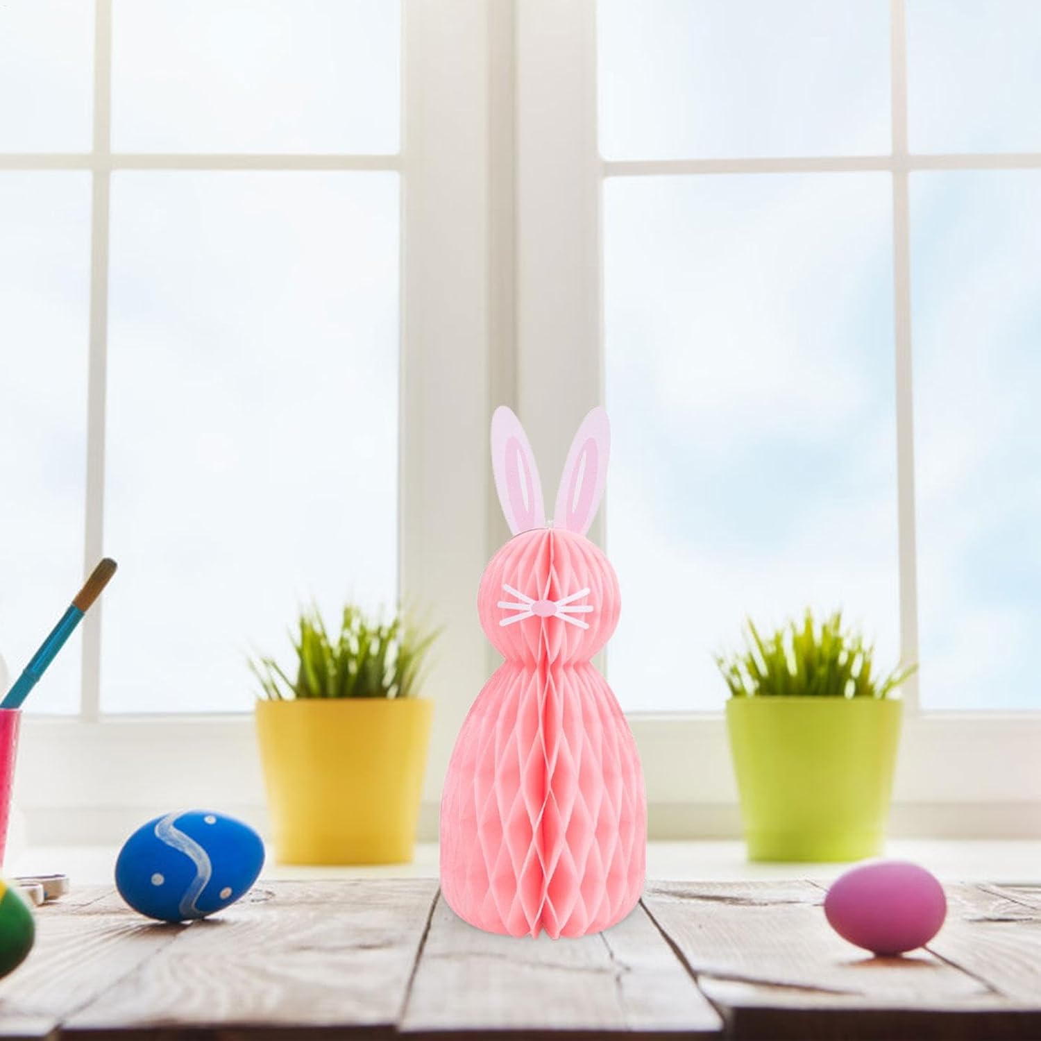 Forma di coniglietto: le nostre decorazioni pasquali a pettine di carta emanano un fascino vivace e aggiungono un'atmosfera sontuosa e festosa alle tue feste. La sua forma bella e raffinata e la simpatica immagine del coniglietto, appesa al muro o posizionata sulla scrivania, aggiungono un tocco di fascino e diventano il momento clou di ogni celebrazione pasquale. Ben fatto: goditi attività sicure e adatte alla famiglia con le nostre decorazioni pasquali con pettine di carta. Sapientemente realizzati con materiali cartacei, crea momenti indimenticabili durante le festività natalizie Crea l'allegria pasquale: con il loro design colorato a forma di sfera a pettine, queste decorazioni pasquali a pettine di carta si abbinano perfettamente al tema pasquale e sono una decorazione essenziale per le celebrazioni pasquali. Evidenzia il tema ed eleva le tue festività con questa aggiunta festiva. Design versatile: mantieni vivo lo spirito della celebrazione con le decorazioni pasquali a pettine di carta. Con le loro opzioni di posizionamento flessibili e il design versatile, queste decorazioni multifunzionali non solo possono ravvivare le tue feste di Pasqua, ma anche decorare case, studi o scuole con colori vivaci e un'atmosfera allegra tutto l'anno. Facile da installare: le nostre decorazioni pasquali a pettine di carta presentano un design leggero e facile da installare che è facile da organizzare. Le sue dimensioni compatte consentono di riporlo facilmente dopo l'uso, rendendolo perfetto per ogni occasione