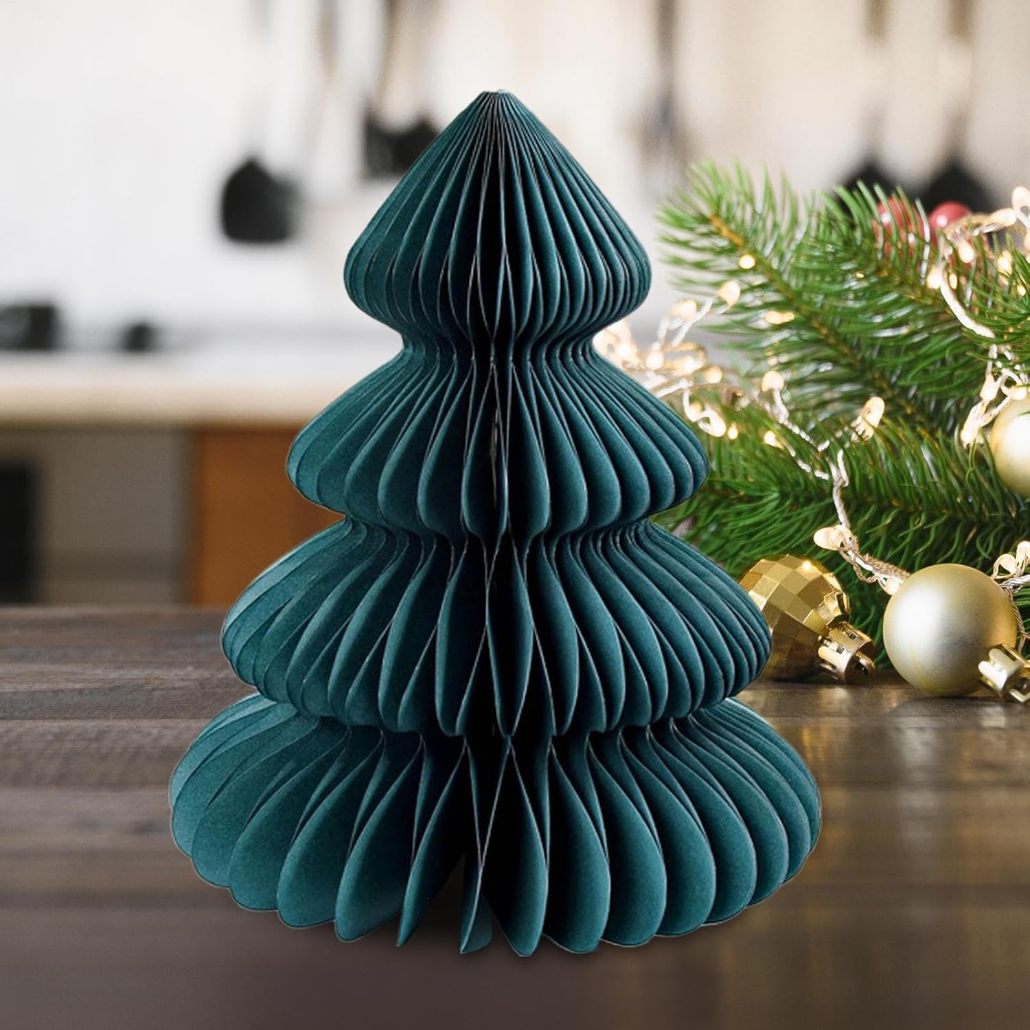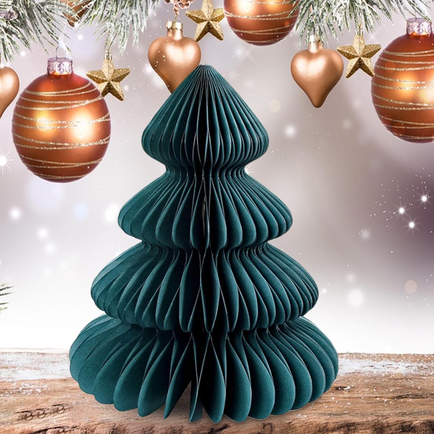 Design accattivante: i suoi colori vivaci catturano facilmente l'attenzione, infondendo all'ambiente circostante un'energia deliziosa che esalta lo spirito stagionale con un fascino decorativo giocoso ed elegante Decorazione festiva durevole: realizzata in carta di alta qualità, morbida al tatto ma resistente alla rottura, garantendo anni di divertimento come parte della decorazione natalizia Installazione rapida: questo albero di Natale in carta a nido d'ape richiede solo pochi secondi per essere completato, con facile rotazione e incollaggio, garantendo un facile utilizzo per tutti gli utenti Decorazione domestica versatile: con dimensioni adeguate, questo albero di Natale a nido d'ape in carta può essere posizionato su tavoli da pranzo o controsoffitti, si fonde perfettamente con l'arredamento esistente per un ambiente di vacanza coerente e affascinante. Utilizzo versatile: ideale per soggiorno, camera da letto, tavolo da pranzo, bancone e libreria, questo albero di Natale a nido d'ape garantisce un ampio utilizzo completando l'arredamento della tua casa con il suo fascino elegante e stagionale.