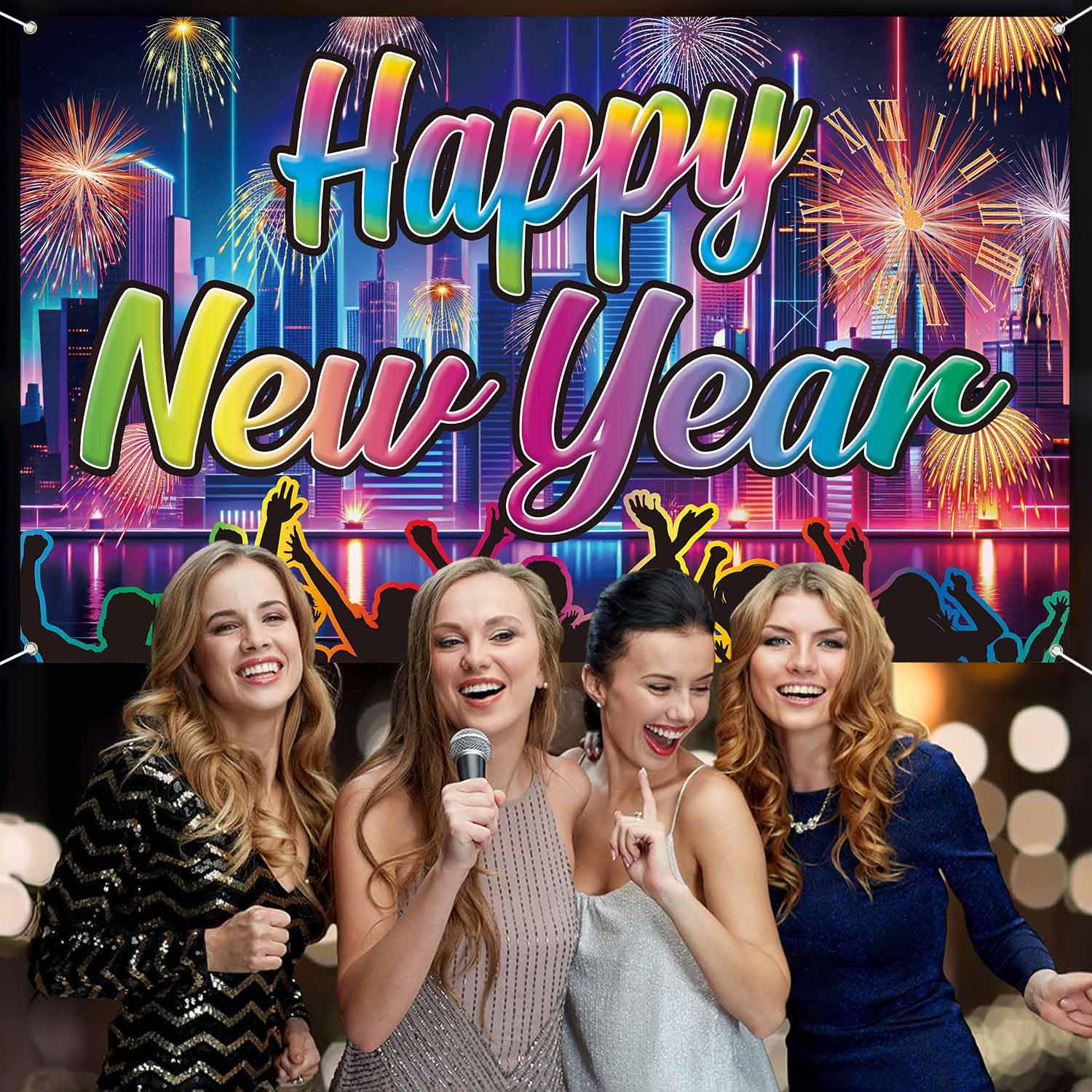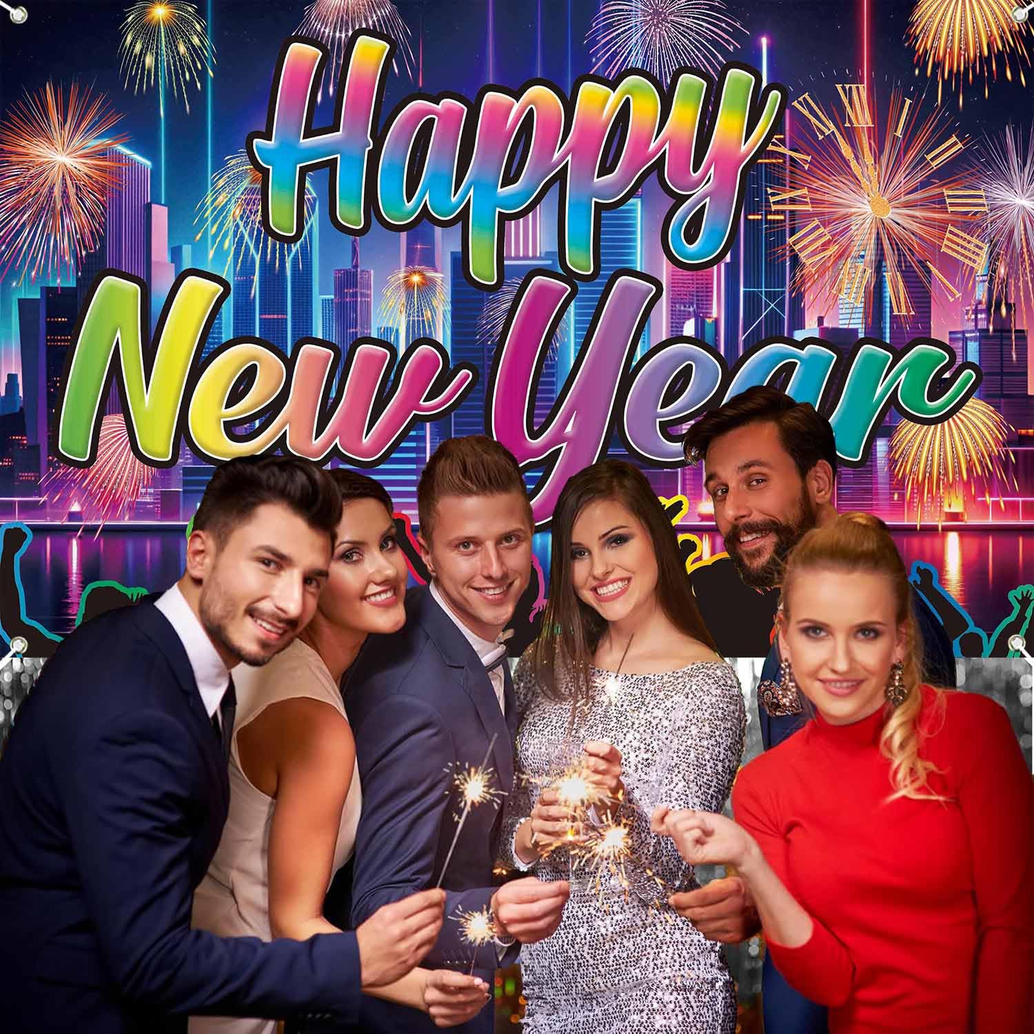 Decorazioni per capodanno 2025, striscione neon felice anno nuovo, decorazione felice anno nuovo 2025, decorazioni per Capodanno 2025 colorate (180 x 100 cm)