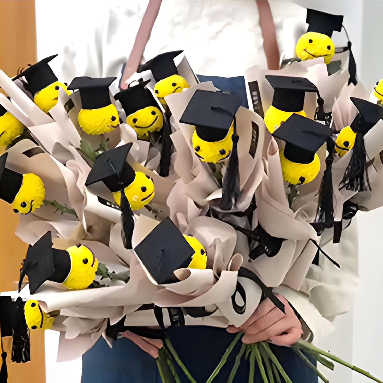 Materiale robusto: realizzato per consegnare una consistenza delicata e un tessuto comodo, la morbida costruzione di queste decorazioni assicura che rimangono piacevoli da indossare per qualsiasi celebrazione Presente consumato: esprime la riflessione tramite design a tema accademico, creando sorprese gioiose per la famiglia e gli amici agli eventi di laurea mentre celebra i risultati nel miglior modo Ampiamente all'applicazione: dall'asilo alle laurea universita Aggiornamento del tavolo festivo: le decorazioni per cappelli di laurea si abbinano perfettamente con giocattoli a tema e , migliorando le configurazioni di bottiglia e bouquet aggiungendo un tocco festivo a display da tavolo per celebrazioni memorabili Eleganti motivi accademici: presenta accenti di nappe ispirati a tappi di dottorato, unendo fascino stravagante e temi accademici in un design elegante che assicura un abbellimento di cappelli da laurea accattivante