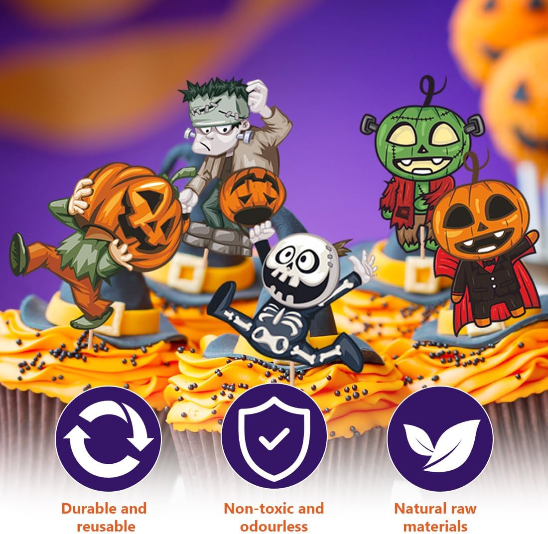Set completo e vario: la confezione comprende 40 cake toppers con 8 disegni diversi, come fantasmi, coltelli insanguinati, lapidi, pipistrelli, zucche e nuvole nere. Perfetto per una decorazione completa della torta di Halloween e per valorizzare muffin e cupcake. Materiali di qualità: gli involucri per cupcake di Halloween sono realizzati con materiali robusti e durevoli. Facili da usare, si applicano direttamente sulla torta. Adatto a cupcake di tutte le dimensioni per una presentazione elegante delle tue prelibatezze di Halloween Facile da usare: non sono necessari colla o nastro adesivo! Gli involucri per cupcake si montano in pochi secondi inserendo le linguette nelle fessure. Quindi decora i tuoi cupcake in modo rapido e semplice per la tua festa di Halloween. Design creativo: le decorazioni di Halloween incorporano elementi classici come zucche e pipistrelli per migliorare l'atmosfera festosa. Da notare che gli involucri sono aperti nella parte superiore e inferiore e non possono essere utilizzati nel forno. Versatilità d'uso: Ideale per decorare cupcake, muffin e altri dolci. Perfetto per feste a tema spettrali, feste in maschera, celebrazioni di fantasmi ed eventi di Halloween: un'aggiunta indispensabile per ogni occasione spettrale