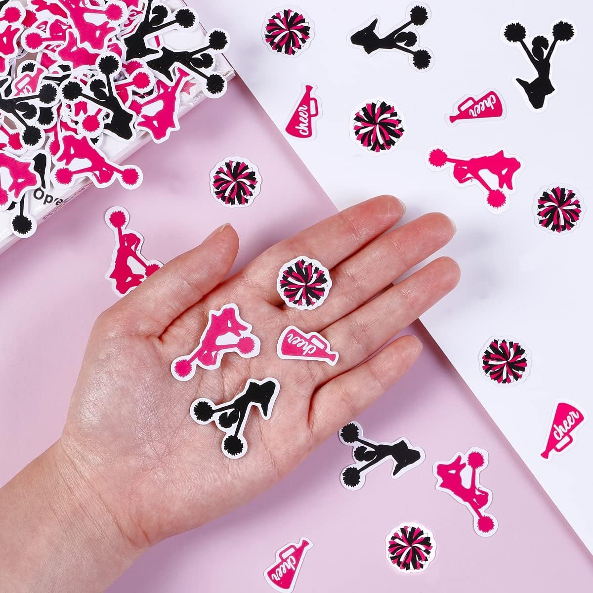 Riceverai: 1 x 200 coriandoli a tema cheerleader stampati fronte-retro; Con così tanti coriandoli in una confezione, è sufficiente per decorare la tua festa a tema cheerleader, festa di compleanno di cheerleader, attività da cheerleader, ecc. Stile alla moda: il nostro set di coriandoli da cheerleader è disponibile in una varietà di modelli, come tromba rosa rossa, cheerleader danzanti con rosa rossa, cheerleader danzanti nere, pon pon colorati da cheerleader...... Questo elegante e alla moda rende i nostri coriandoli da cheerleader più eccezionali. e impressionante. Decorazione fai da te: incoraggiamo la tua adorabile ragazza a fare fai da te con i suoi amici e compagni di classe. Cospargili sul pavimento o sul tavolo come decorazione, oppure attaccali al muro o in un altro luogo che desideri decorare, usali per decorare da soli o con altre decorazioni per la festa, quindi posizionali nella tua area espositiva preferita. Decorazioni uniche per le feste: le solite decorazioni per le feste sono colorate e vistose, mentre questi coriandoli sono molto carini e squisiti, che possono facilmente decorare la festa della tua ragazza e renderla più vibrante! Ogni ospite presente loderà il tuo ingegno e adorerà il design. Fotografia insolita: cospargi i coriandoli della cheerleader sul cielo, catturerai l'espressione più vivida di tua figlia, che immagine divertente! Vale la pena conservarlo per sempre perché hai registrato il suo momento più infantile e felice. Non vedo l'ora di comprarlo!