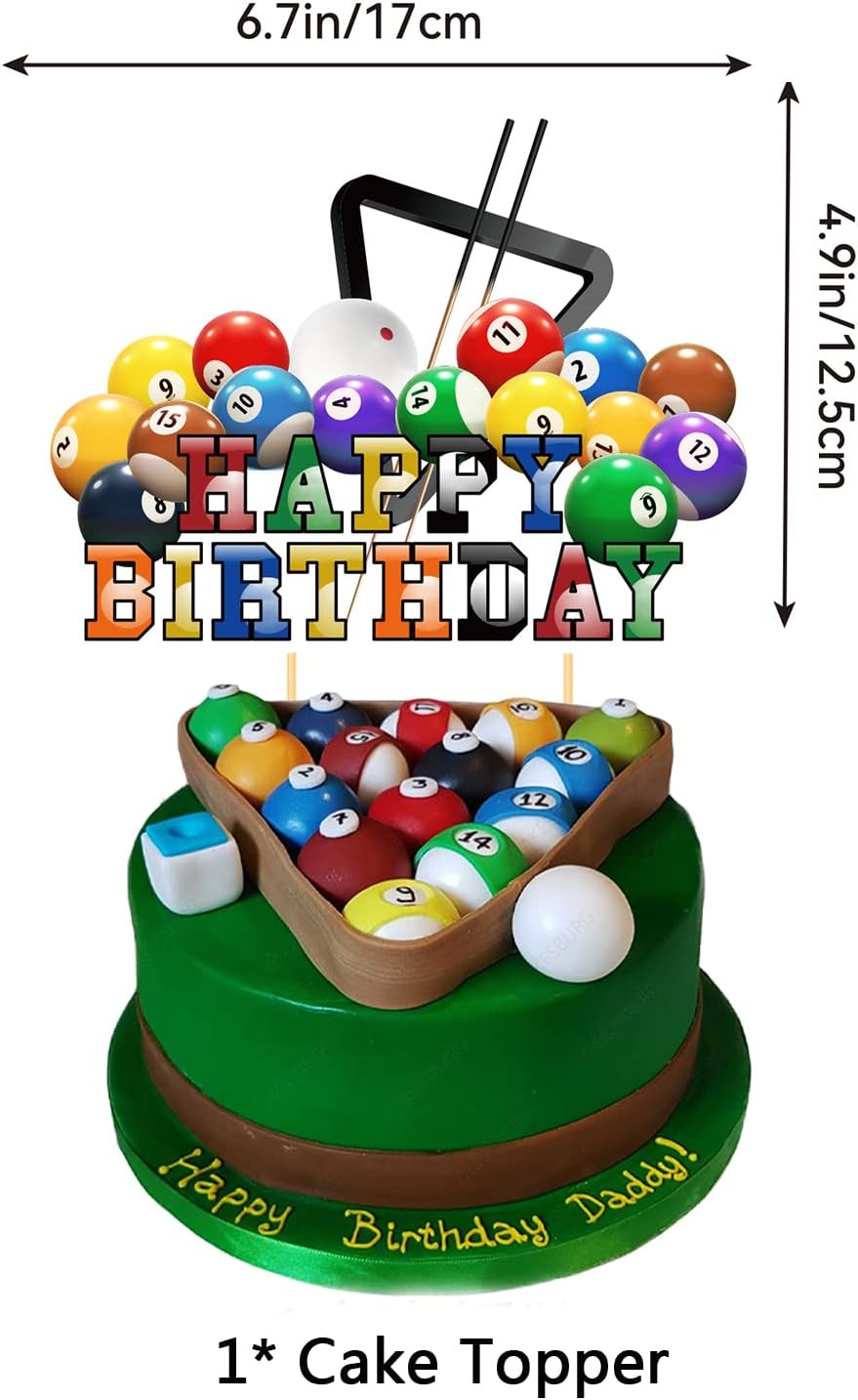 Decorazioni per feste da biliardo: il pacchetto include 1 striscione da biliardo Feppiy BiRTHDAY, 1 topper per torta da biliardo Feppiy BiRTHDAY, 12 decorazioni da biliardo, 18 palloncini da biliardo. Materiale: la bandiera di compleanno del biliardo e i toppers per torta sono realizzati in cartone resistente, i palloncini sono in lattice naturale. Poiché i palloncini sono di nuova produzione e hanno un odore di lattice unico, saranno molto migliori se posizionati in un luogo ventilato per 1-2 giorni. Design perfetto: l'intera festa è progettata con il tema del biliardo. Le forme del biliardo in diversi colori e forme rendono la tua festa più innovativa, attirando rapidamente l'attenzione e lasciando una bella impressione profonda sulla famiglia e sugli amici che partecipano alla festa. Facile da decorare: gli striscioni di compleanno del biliardo sono preassemblati, non richiedono più il tuo tempo. Basta estrarli dalla confezione e appenderli al soffitto, alle pareti, alle finestre, alle porte, ai rami e ad altri luoghi che desideri decorare. Gonfia poi i palloncini e decorali nella scena della festa, creando un'atmosfera allegra che piacerà a grandi e bambini. Occasioni: perfetto per forniture per feste da biliardo, decorazioni per feste di compleanno da biliardo, feste di compleanno da biliardo, feste sportive, feste di amici e altre feste della felicità