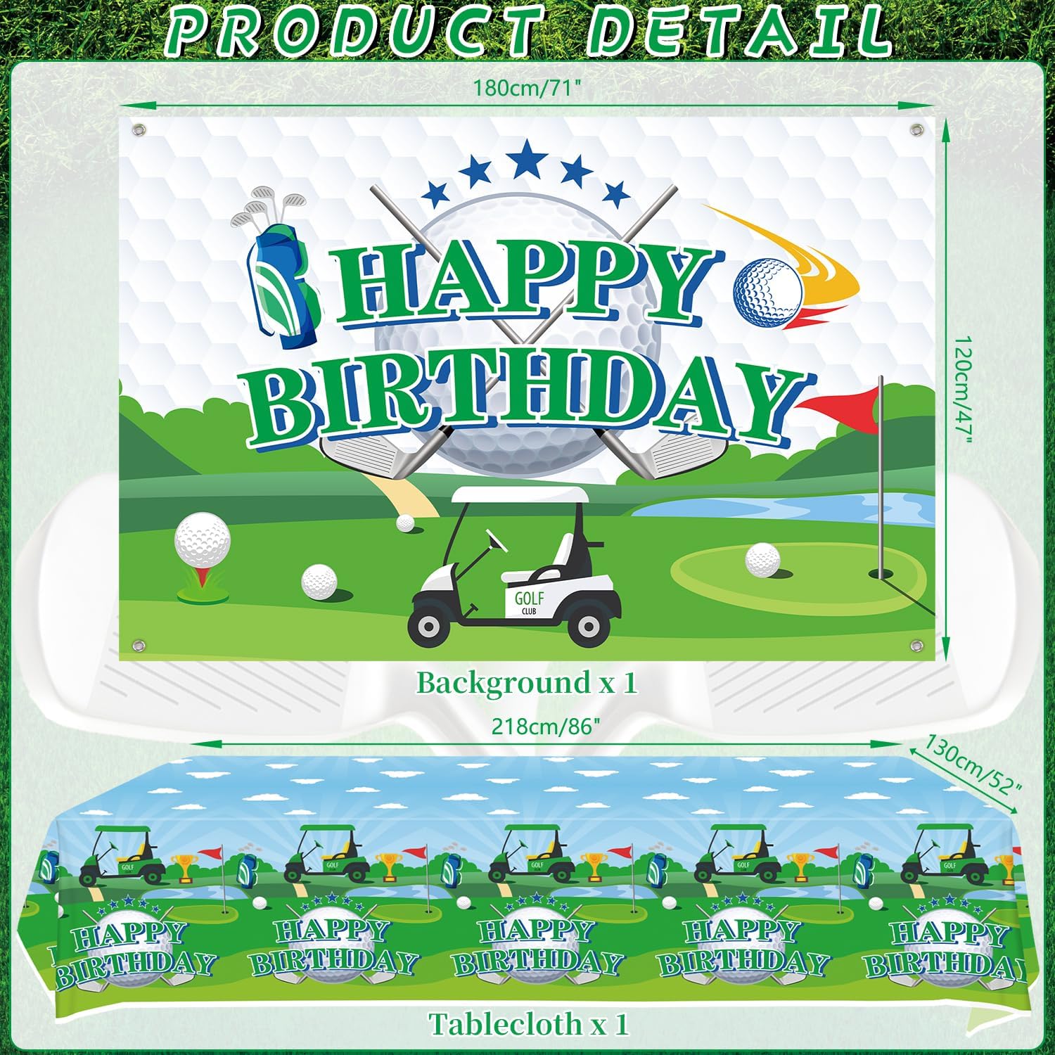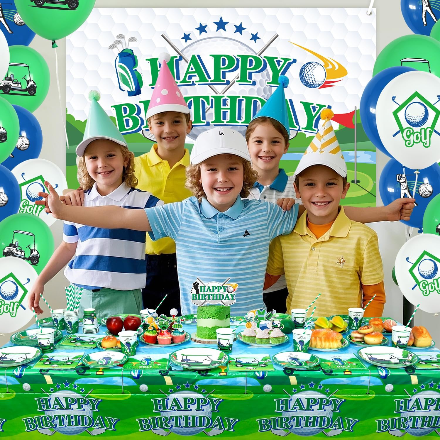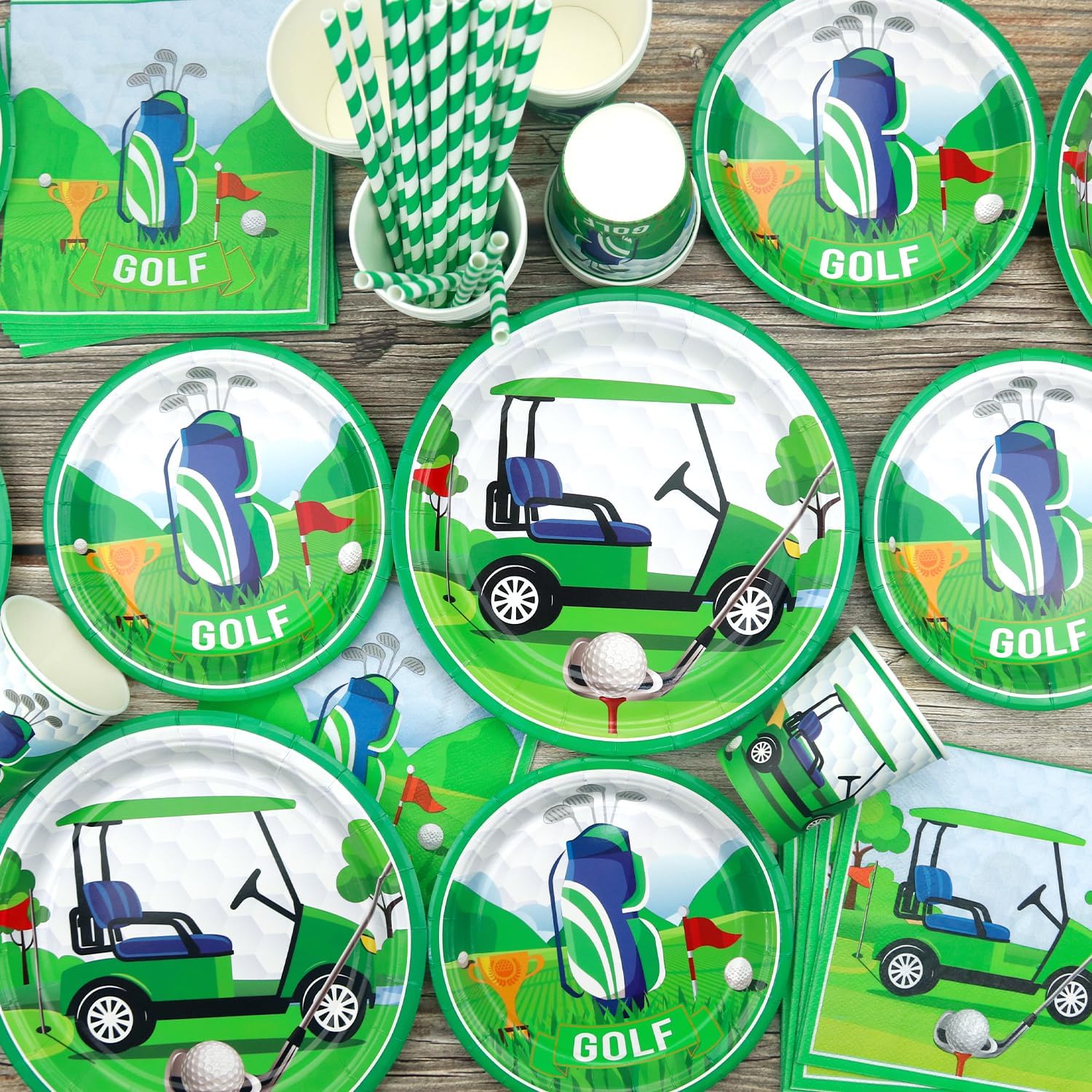 Set di forniture per feste da golf: riceverai 1 sfondo di buon compleanno, 1 grande decorazione per torte, 12 topper per cupcake, 18 palloncini stampati, 20 piatti da 22,9 cm, 20 piatti da 17,8 cm, 20 tazze, 20 tovaglioli, 20 cannucce, 1 tovaglia Design a tema golf: il design carino e unico dell'elemento da golf rende la tua festa più attraente, l'abbinamento dei colori vivaci può aggiungere atmosfera di festa e fare una profonda impressione! Alta qualità: lo sfondo a tema golf Happy Birthday è realizzato in tessuto, morbido, leggero e resistente, le stoviglie sono realizzate in cartone spesso riciclabile, non facile da piegare. Le tovaglie sono impermeabili e non facili da strappare, in modo che tu e la tua famiglia possiate godervi la festa con più tranquillità. Facile da usare: il set contiene tutti gli accessori necessari per la festa. Può aiutarti a organizzare facilmente la festa. Dopo che la festa è finita, è possibile utilizzare la tovaglia per imballarla e gettarla nel bidone della spazzatura, molto facile da pulire. Ampiamente usato: le decorazioni per feste di golf sono adatte per feste di compleanno di ragazzi e ragazze, baby shower, feste al parco, picnic, aziendali e così via.