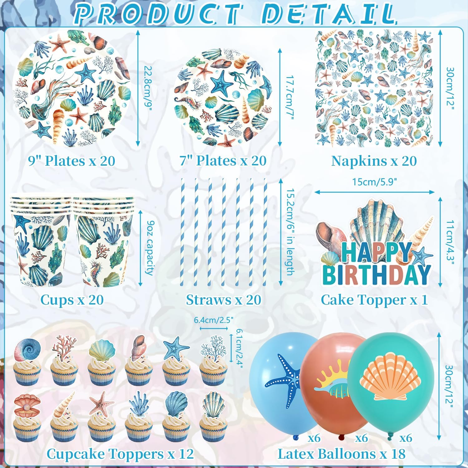 Set di forniture per feste con conchiglie: riceverai 1 sfondo di buon compleanno, 1 grande decorazione per torte, 12 topper per cupcake, 18 palloncini stampati, 20 piatti da 22,9 cm, 20 piatti da 17,8 cm, 20 tazze, 20 tovaglioli, 20 cannucce, 1 tovaglia. Design a tema conchiglie: il design carino e unico dell'elemento delle conchiglie rende la tua festa più attraente, l'abbinamento dei colori vivaci può aggiungere atmosfera di festa e fare una profonda impressione! Alta qualità: lo sfondo a tema conchiglie BUON COMPLEANNO è realizzato in tessuto, morbido, leggero e resistente, le stoviglie per piatti a conchiglia sono realizzate in cartone spesso riciclabile, non facile da piegare. Le tovaglie sono impermeabili e non facili da strappare, in modo che tu e la tua famiglia possiate godervi la festa con più tranquillità. Facile da usare: il set contiene tutti gli accessori necessari per la festa. Può aiutarti a organizzare facilmente la festa. Dopo che la festa è finita, è possibile utilizzare la tovaglia per imballarla e gettarla nel bidone della spazzatura, molto facile da pulire. Ampiamente usato: le decorazioni per feste di conchiglie sono adatte per feste di compleanno di ragazzi e ragazze, baby shower, feste al parco, picnic, aziendali e così via.