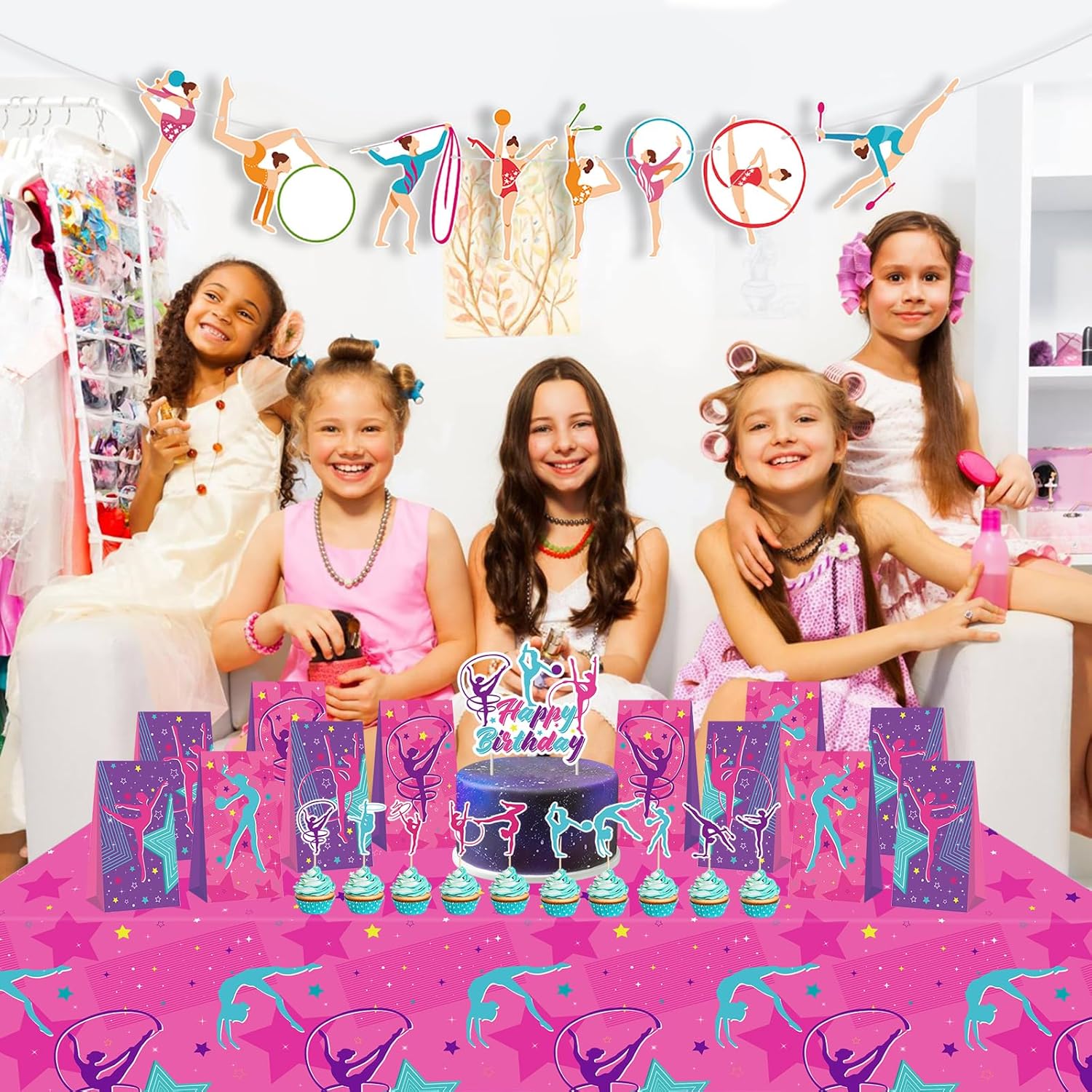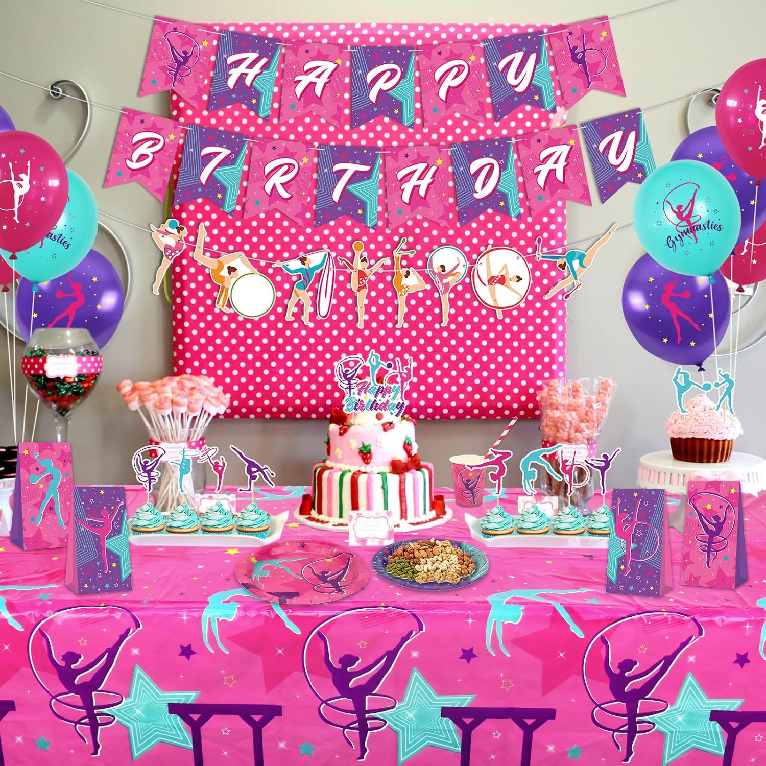 Decorazioni per feste di compleanno di ginnastica: organizza una festa a tema ginnastica divertente e vivace con le nostre forniture per feste di ginnastica che includono uno striscione di buon compleanno, toppers per torte e cupcake, sacchetti regalo, tovaglie e palloncini in 3 stili diversi. Sarà sorpresa e colpita dalla tua festa unica. Materiale: lo striscione da ginnastica, i sacchetti regalo, le decorazioni per torte e cupcake sono realizzati in carta di alta qualità e i palloncini sono in lattice, puoi stare certo che sono sicuri e affidabili per la tua festa. DESIGN ACCATTIVANTE: le decorazioni a tema ginnastica presentano design classici e colori vivaci, tra cui viola, rosa e rosso. crea un'atmosfera carina, sognante ed elegante per la tua festa tra ragazze. Occasioni applicabili: le forniture per feste di compleanno di ginnastica sono perfette per feste di compleanno a tema ginnastica, feste in campeggio estivo, baby shower, feste da ballo, concorsi, feste di cheerleader, attività di ginnastica e feste di rivelazione di genere. Possono essere utilizzati a casa, in cortile, in ufficio, in palestra, a scuola, in classe e altro ancora. Facile assemblaggio e risparmio di tempo: il nostro kit per feste è progettato per farti risparmiare tempo ed energia. Lo striscione compleanno Turner viene fornito preassemblato e i toppers cupcake e i palloncini possono essere facilmente posizionati dove vuoi. Risparmia tempo nella preparazione della festa di compleanno e goditi una festa gioiosa ed emozionante.
